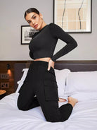 بلوزة قصيرة ضيقة ضيقة سادة
