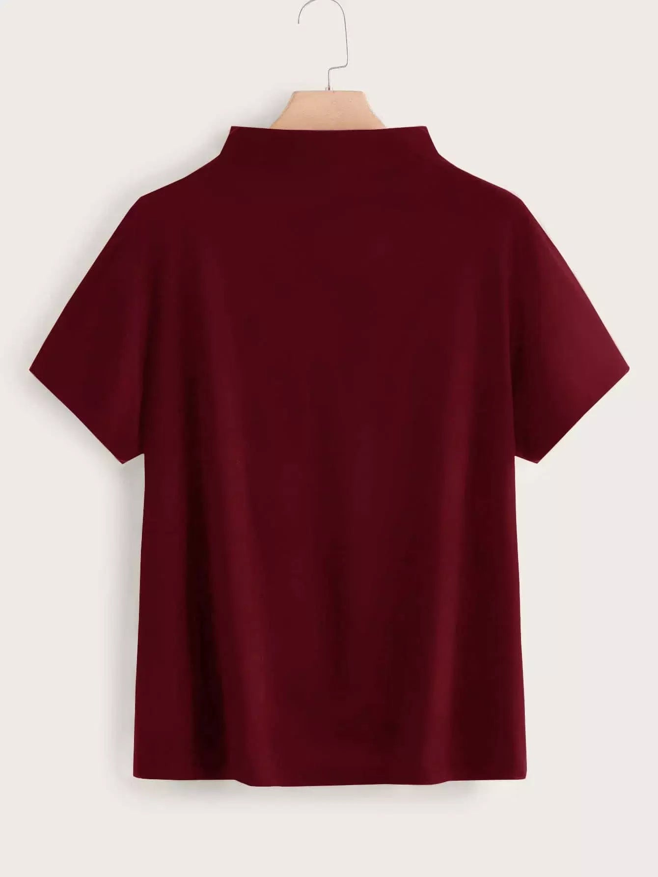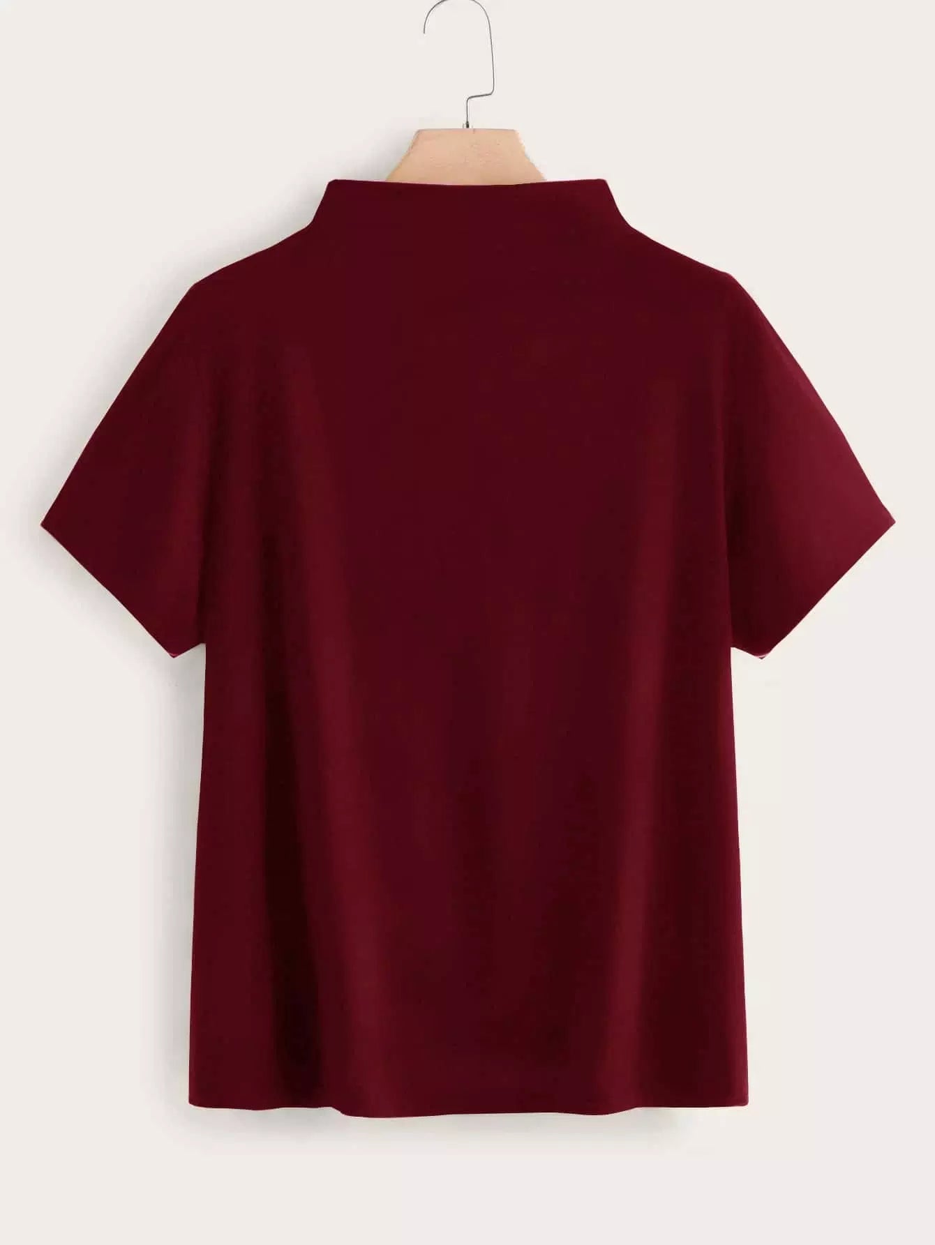 تي شيرت سادة برقبة قمعي بأكمام قصيرة