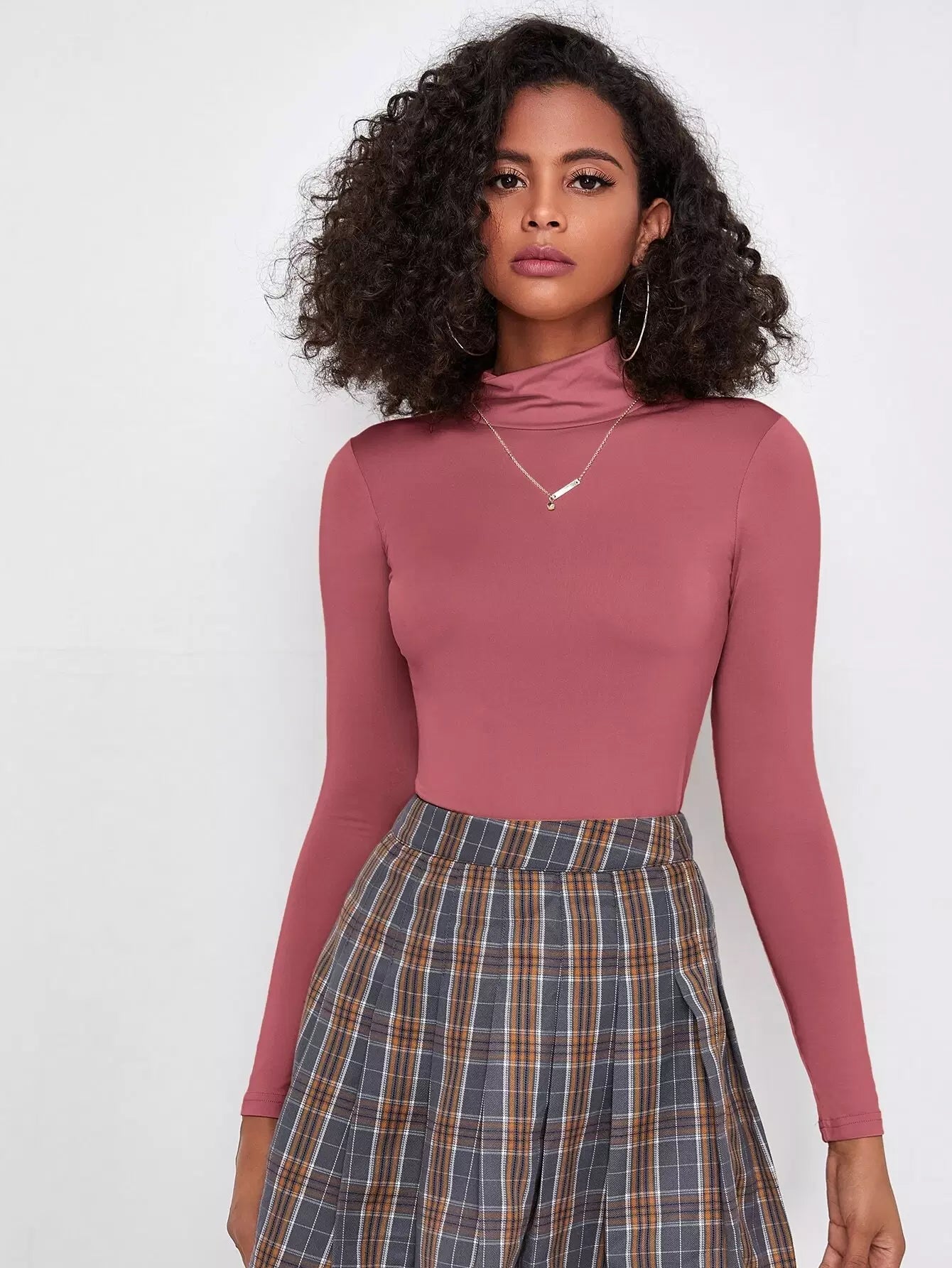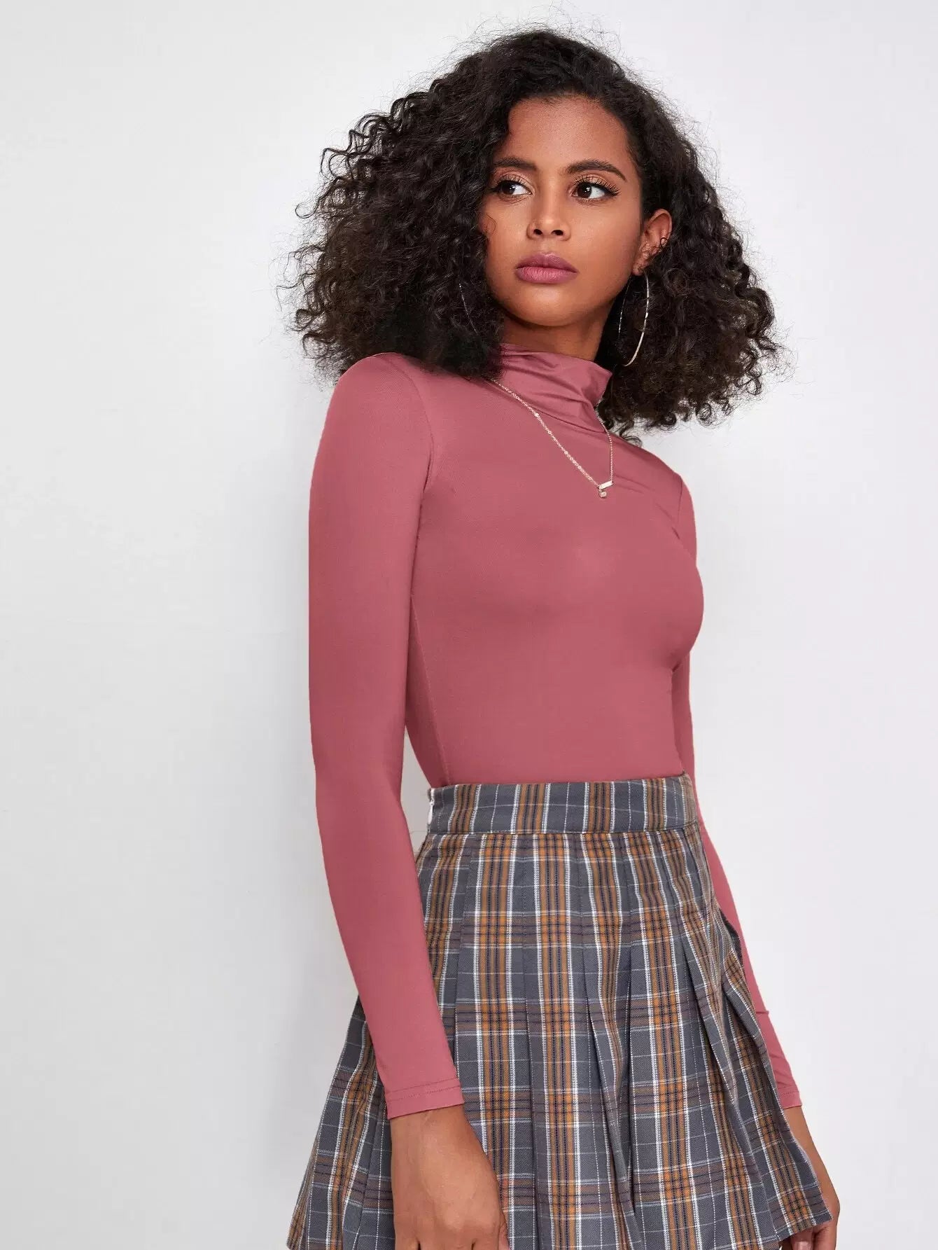 تي شيرت سادة برقبة عالية الرقبة عالية الشكل