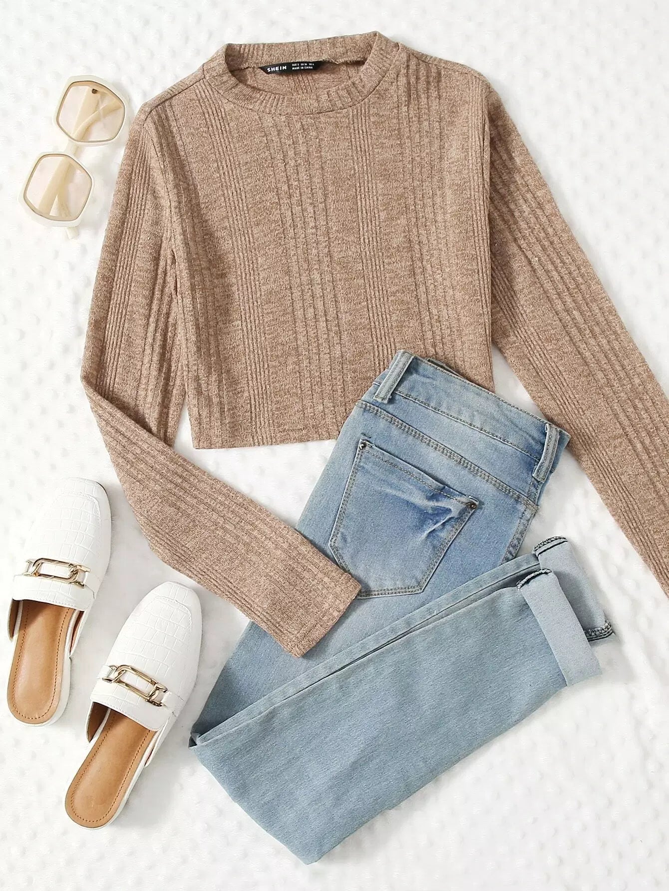 تي شيرت قصير من نسيج مضلع سادة