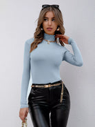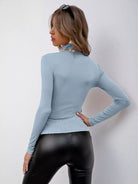 تي شيرت سادة بياقة عالية من نسيج مضلع