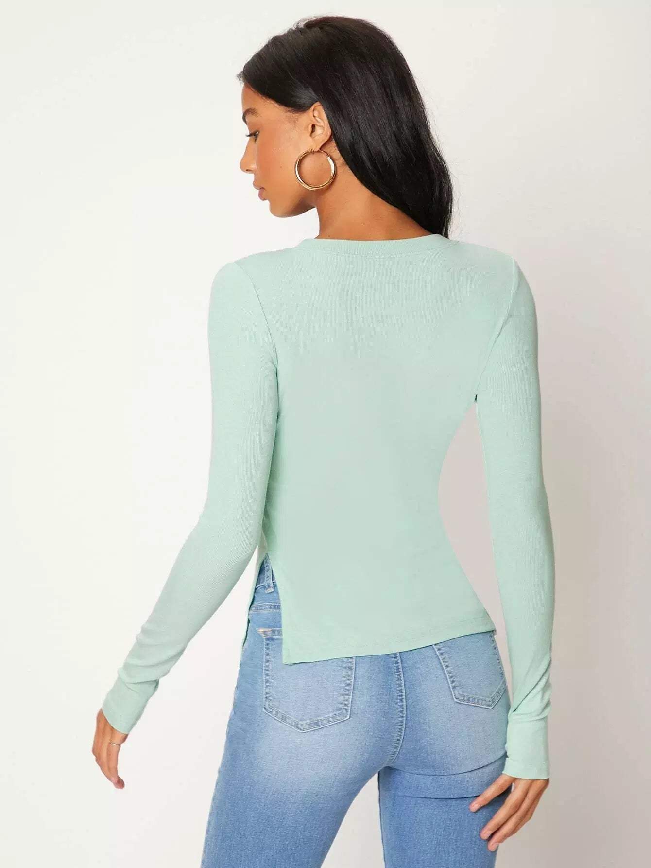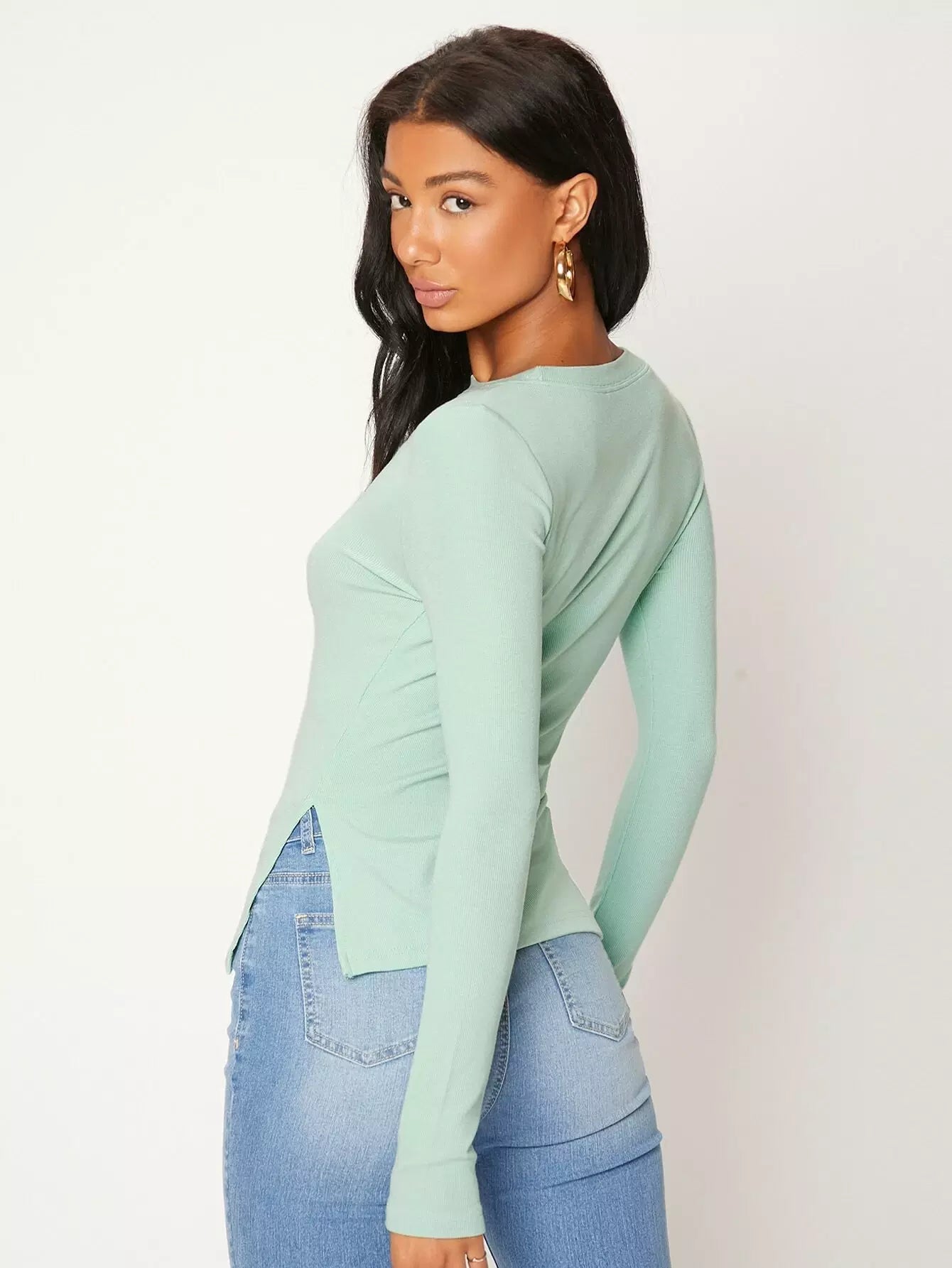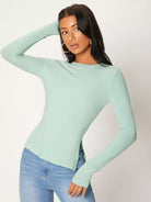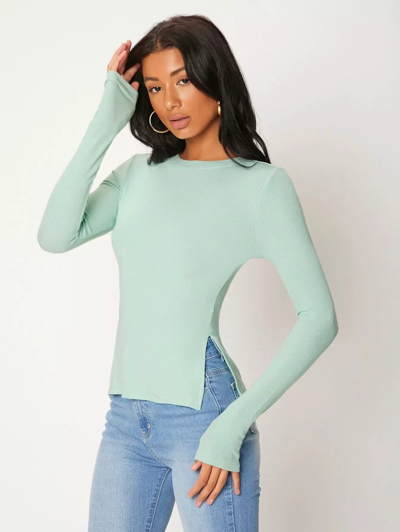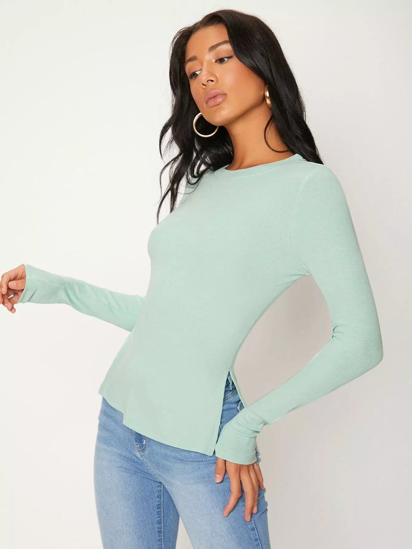 تي شيرت سادة بحياكة ضلعية ضيقة متماسكة
