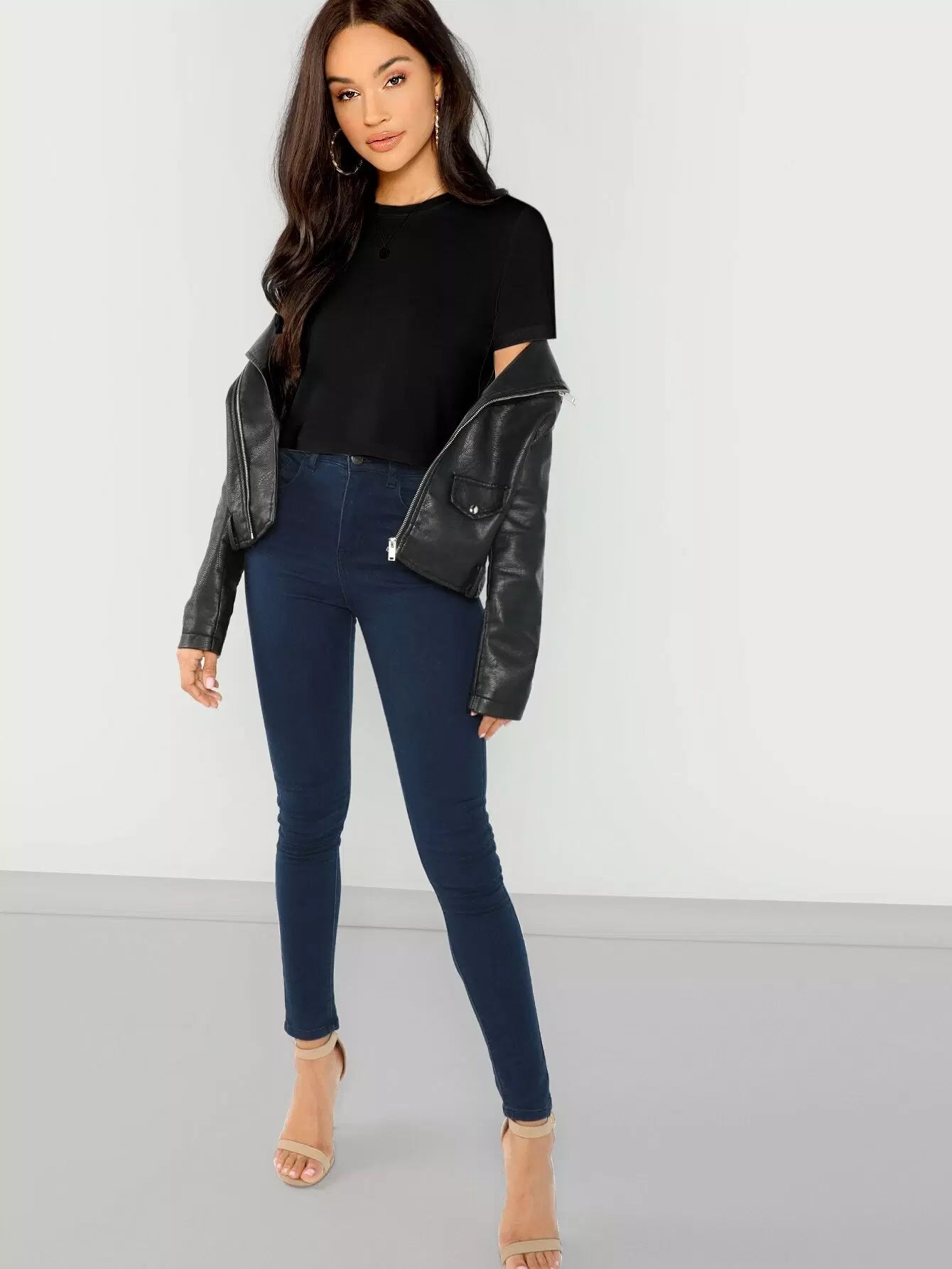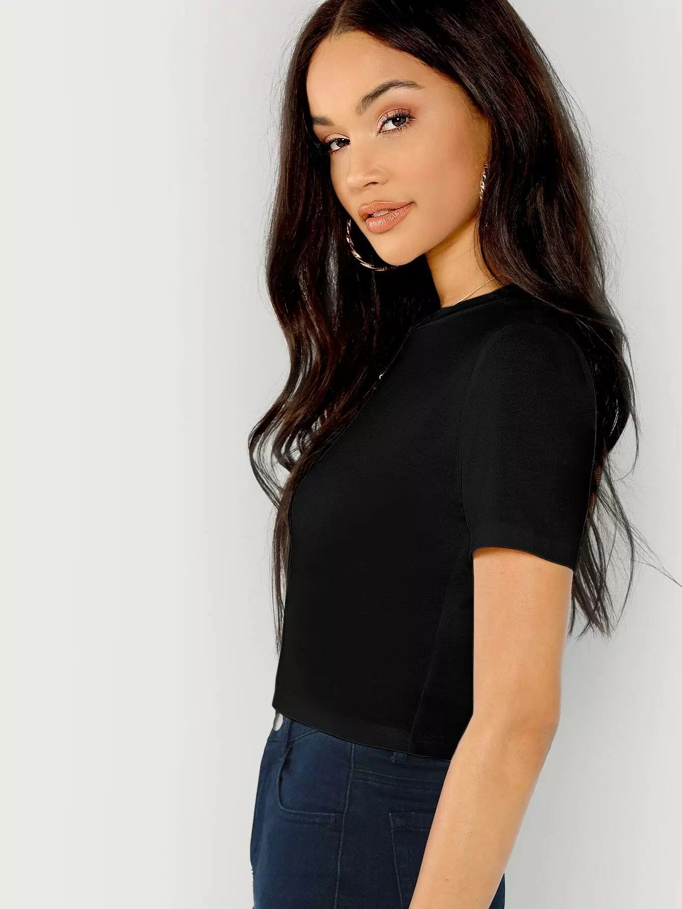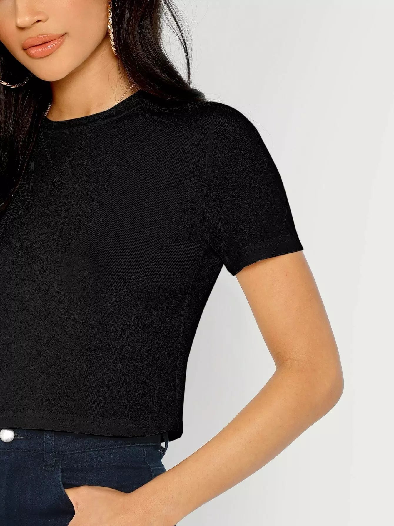 بلوزة قصيرة سادة برقبة دائرية
