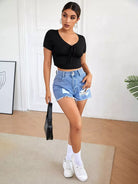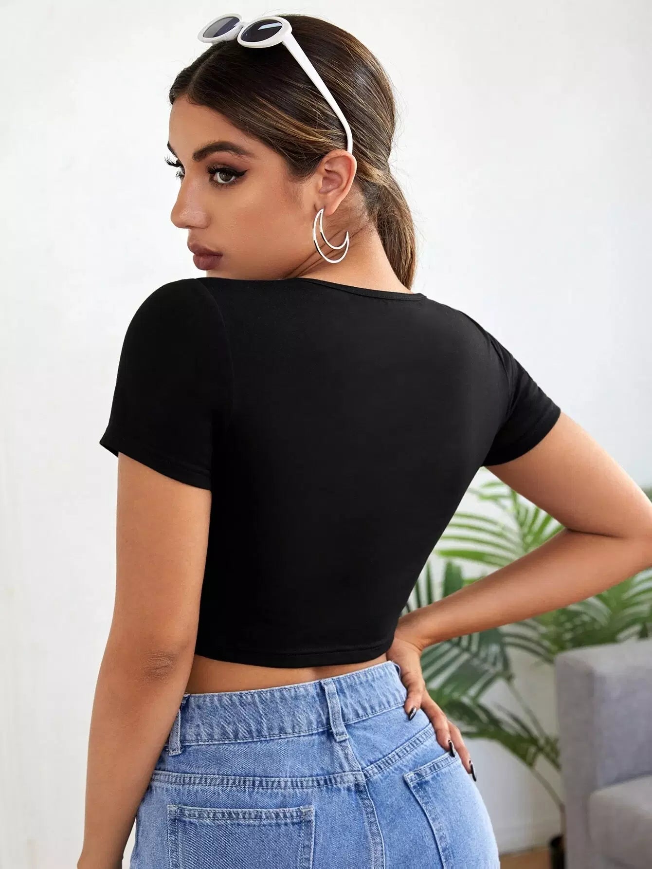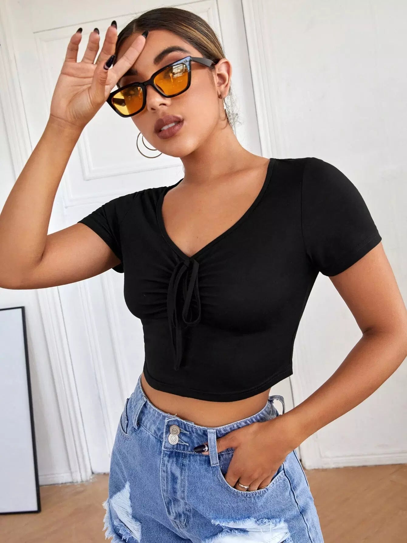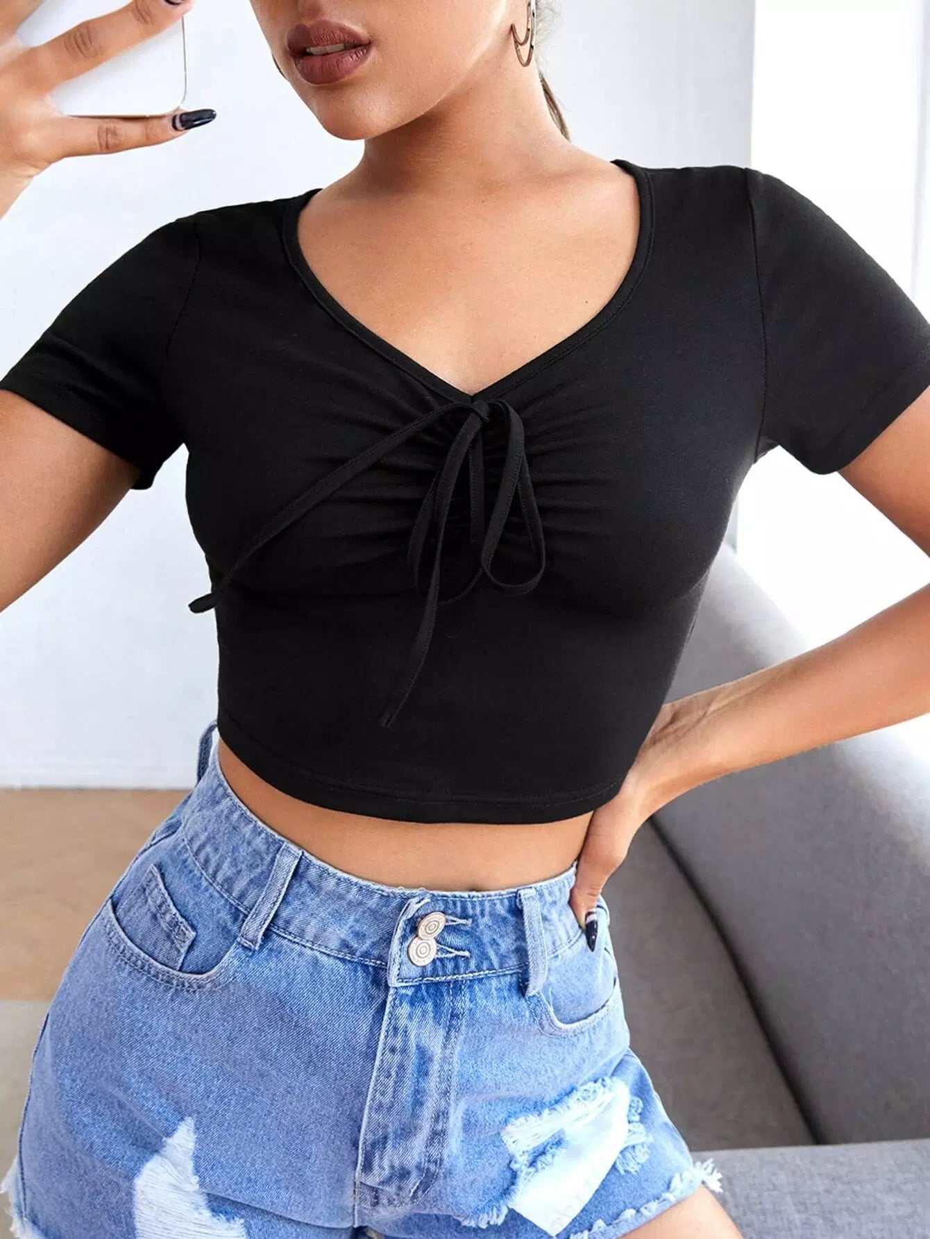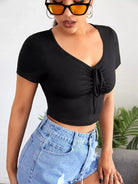 تي شيرت قصير قصير مكشكش الصدر سادة