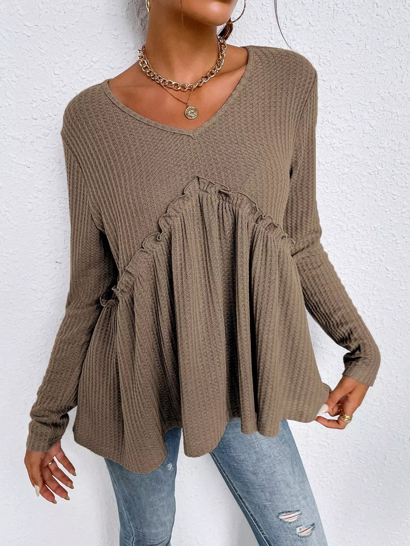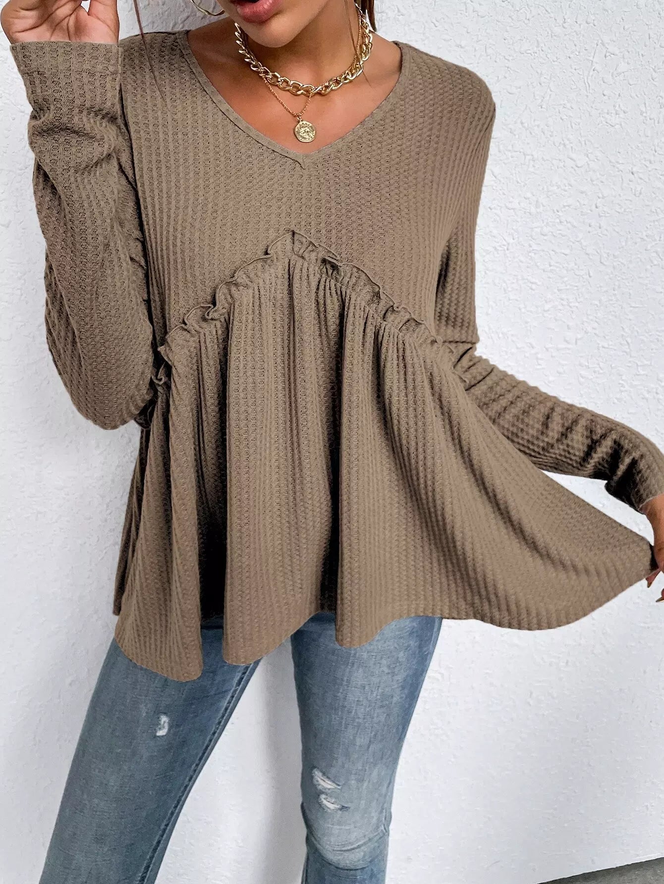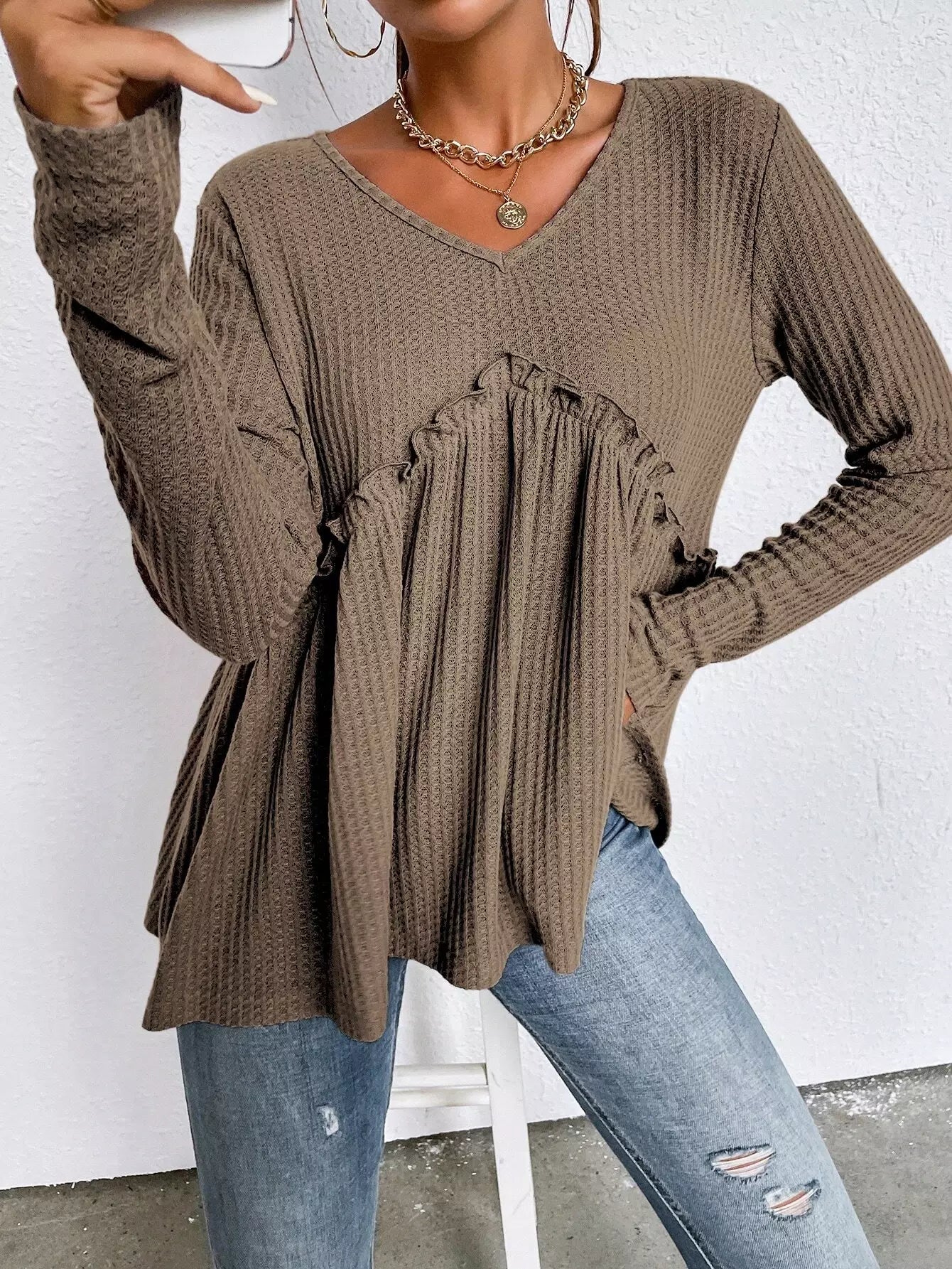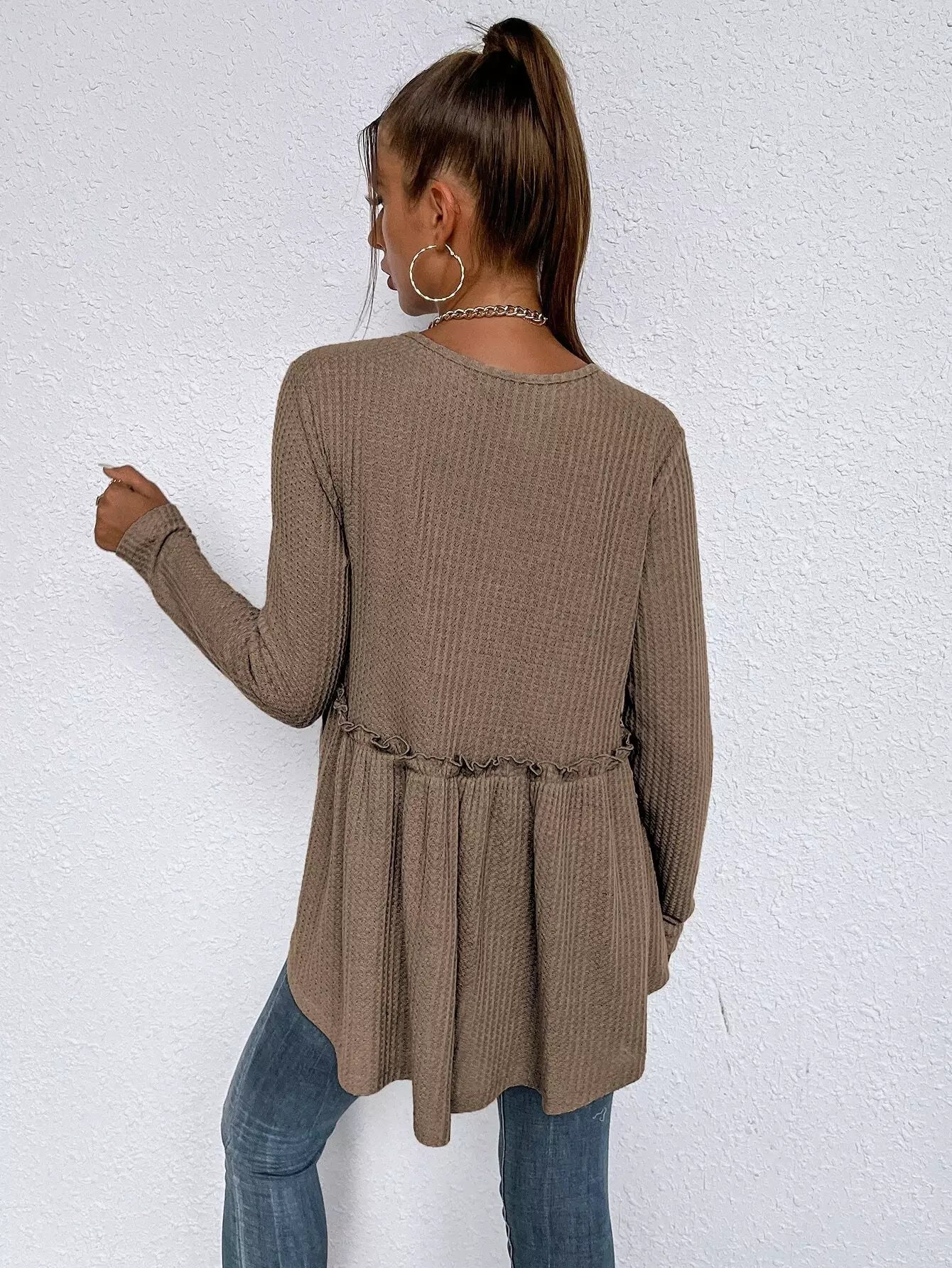تي شيرت بحواف مكشكشة سادة