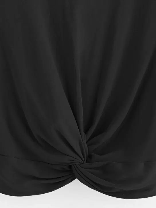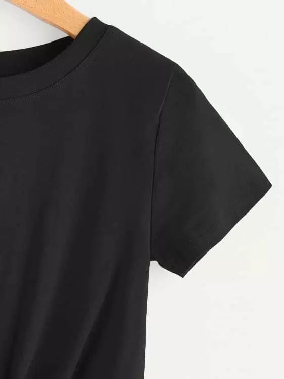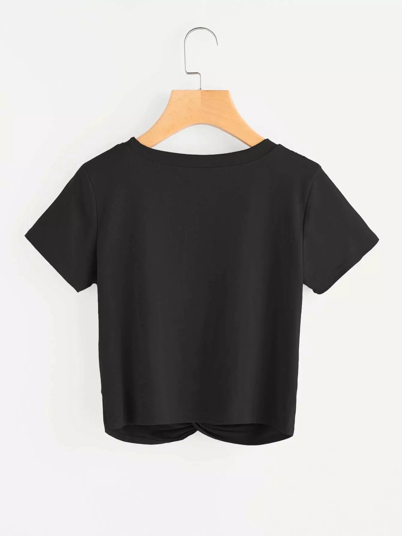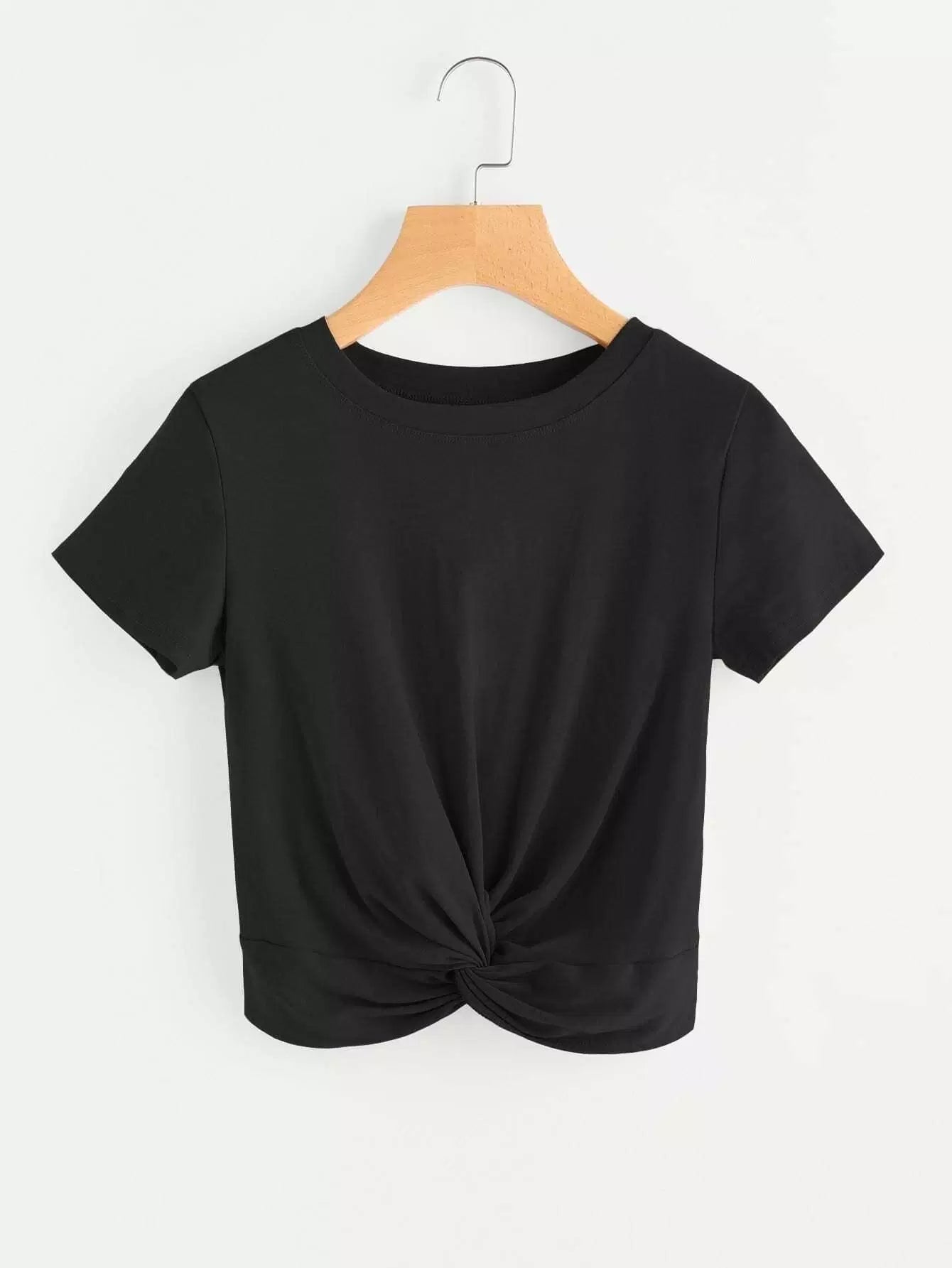 تي شيرت قصير بقصّة أمامية ملتوية سادة