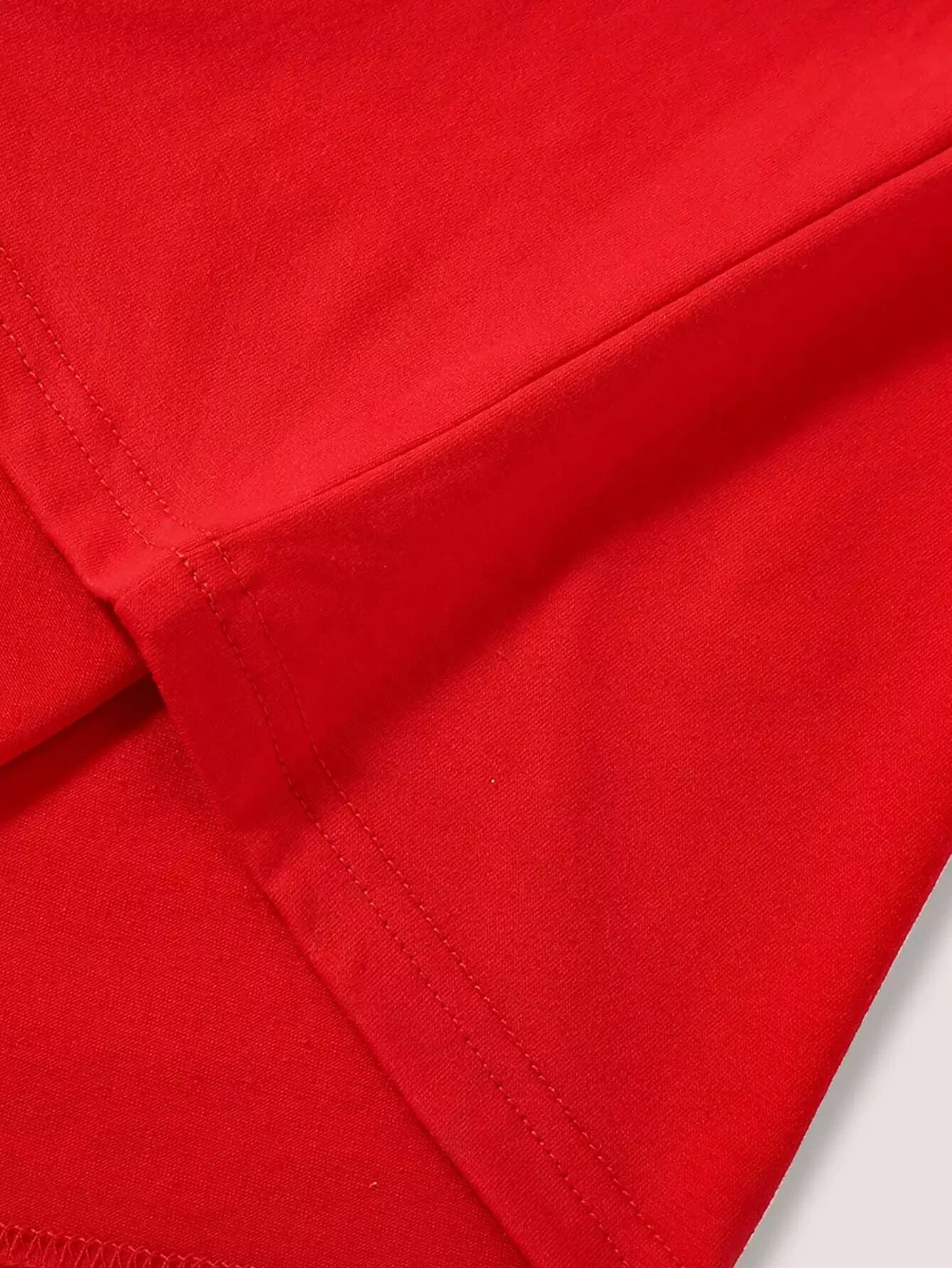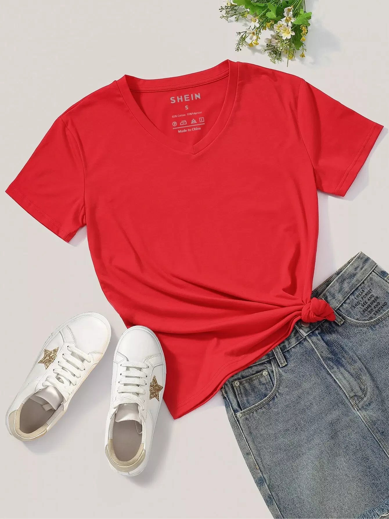 تي شيرت سادة برقبة على شكل حرف V بأكمام قصيرة