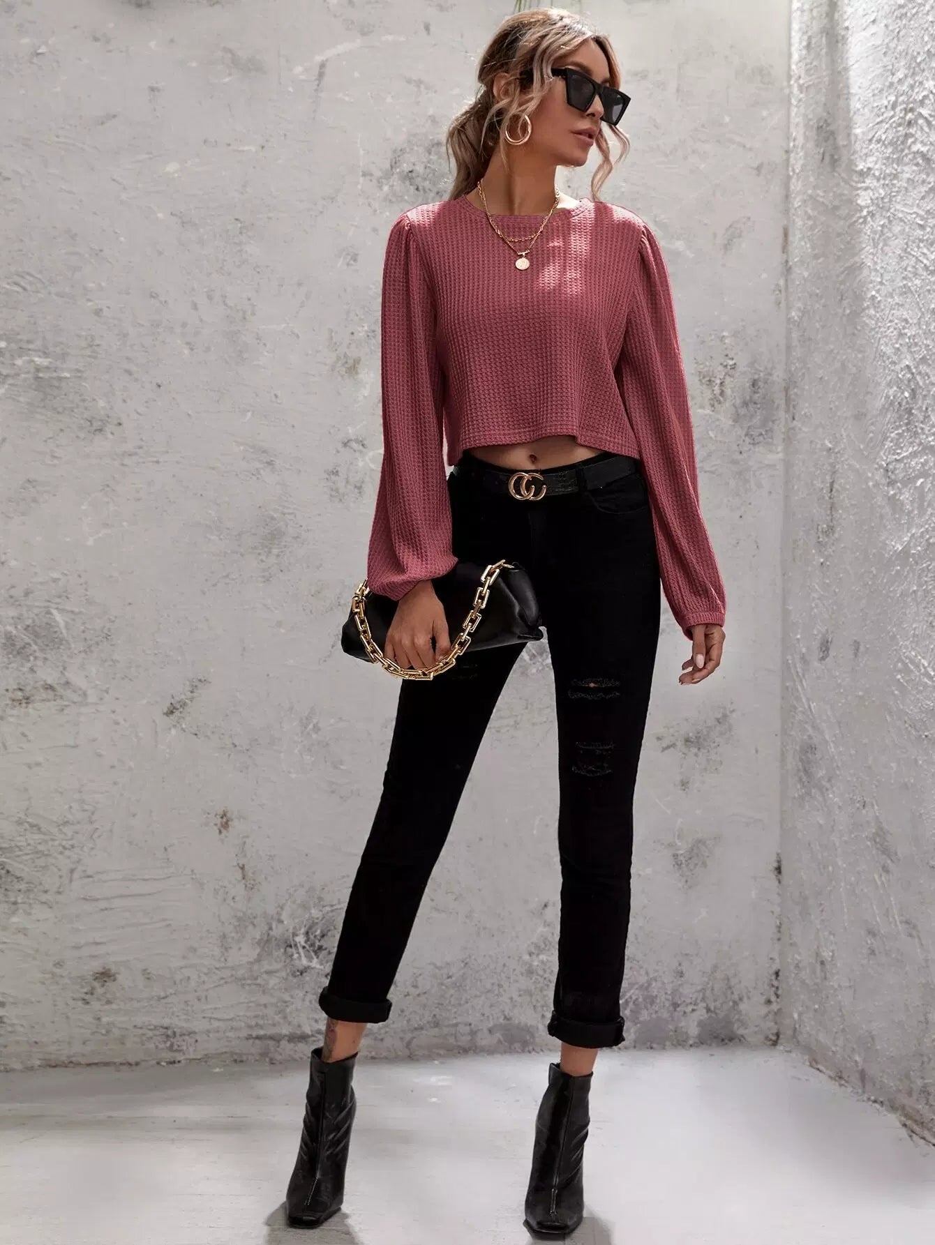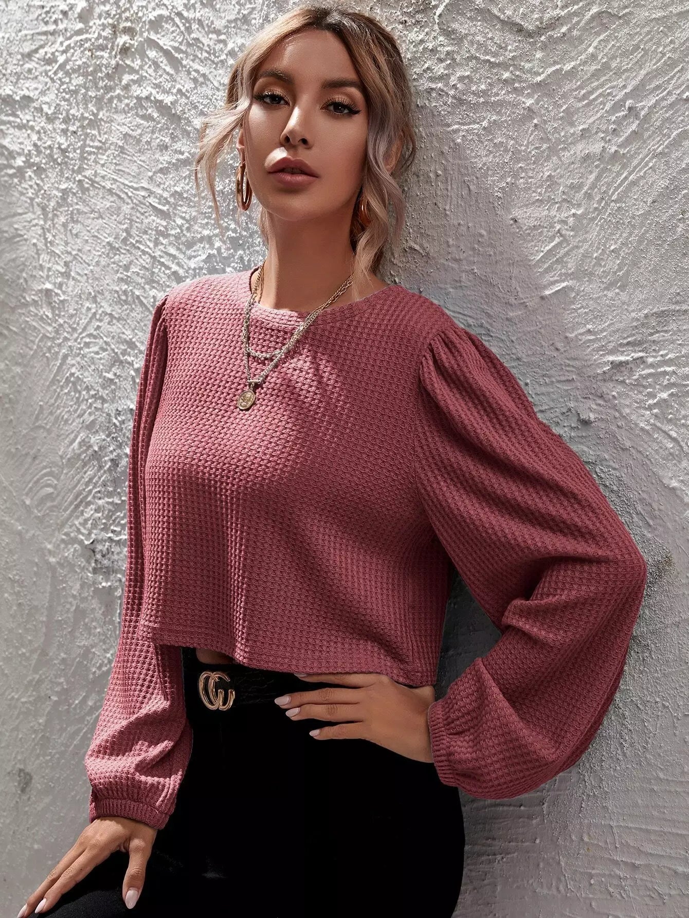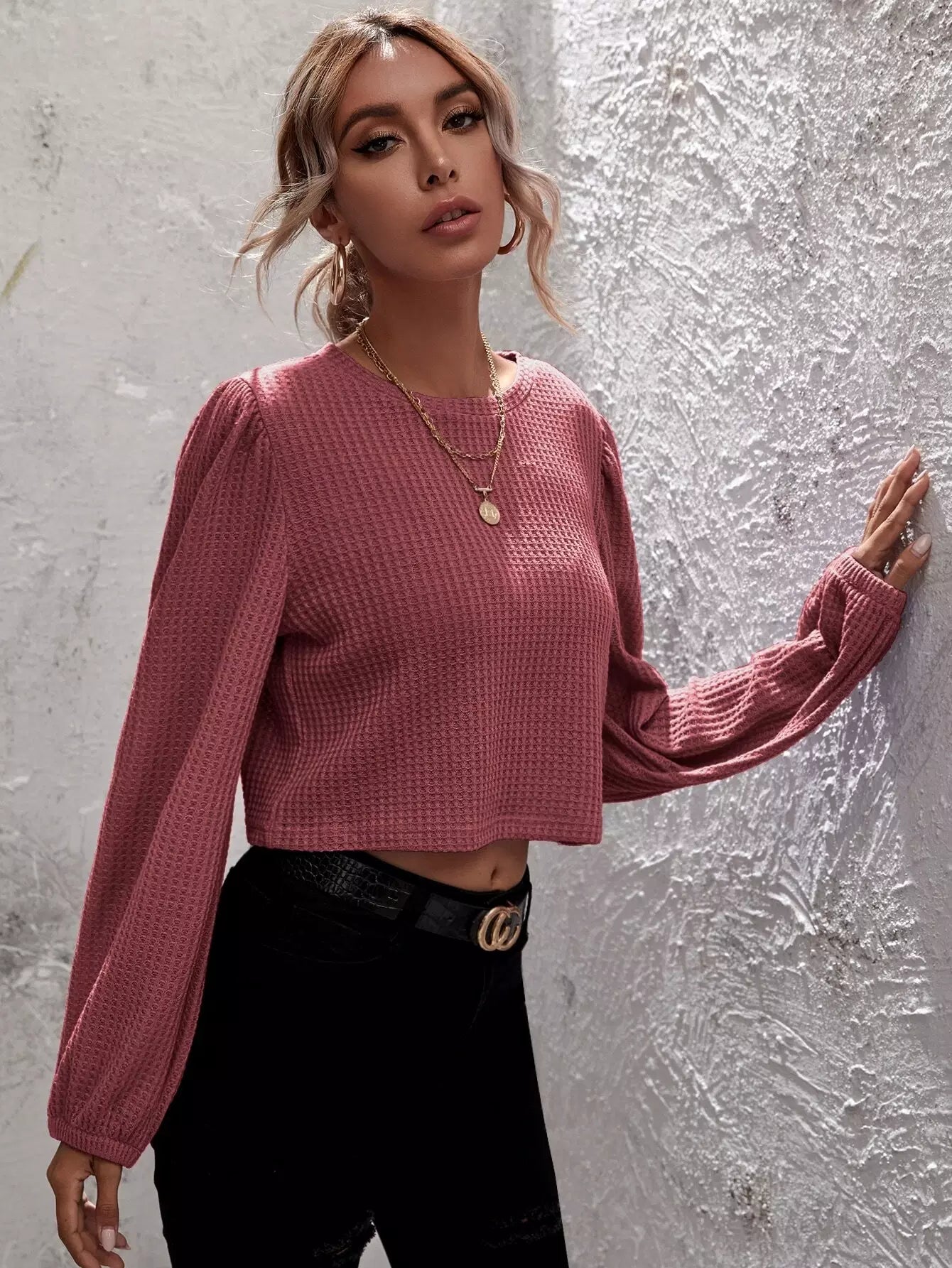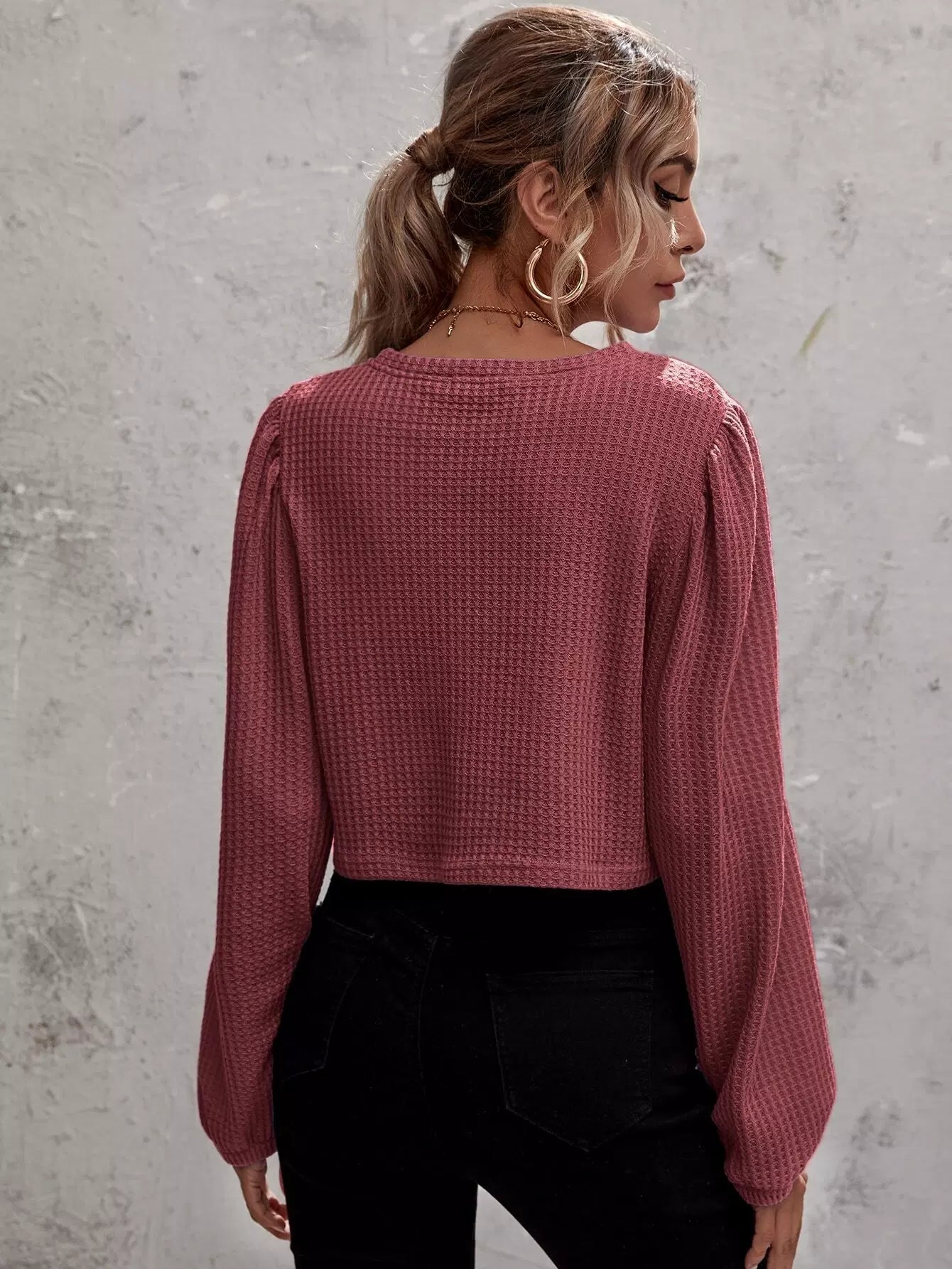 تي شيرت قصير من نسيج الوافل الصلب