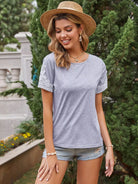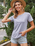 تي شيرت من الدانتيل المخرّم بصبغة فضائية بلون متباين