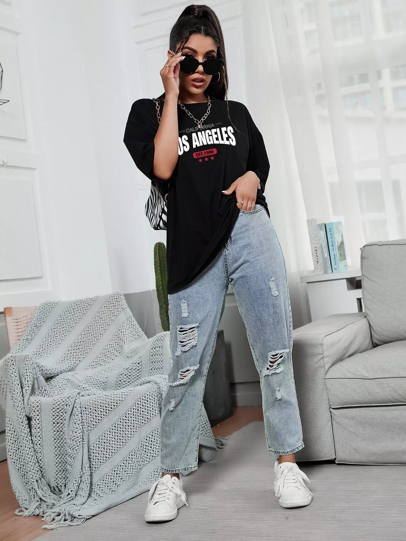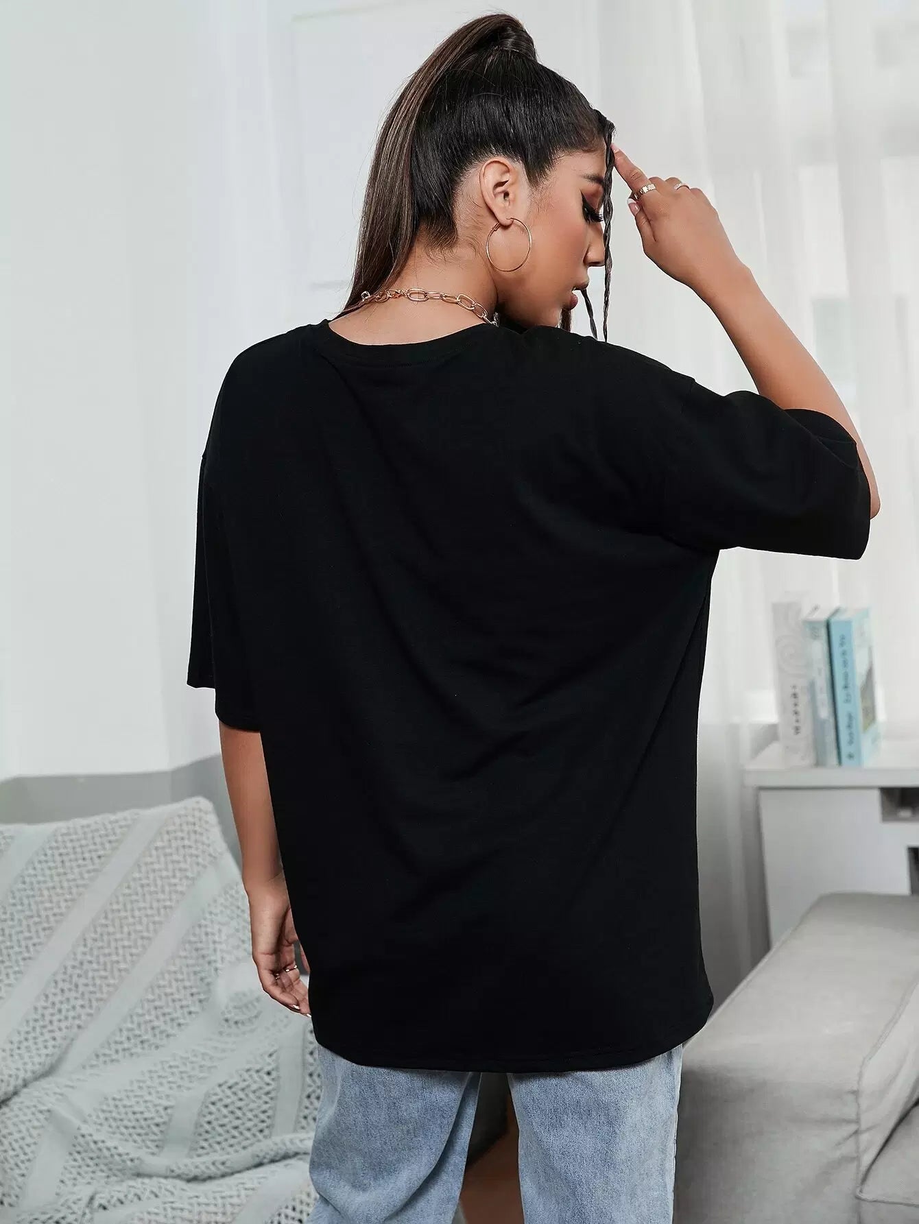تي شيرت بأكتاف منسدلة بنجمة ورسومات حروف