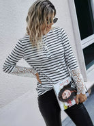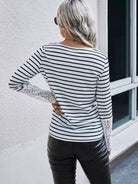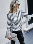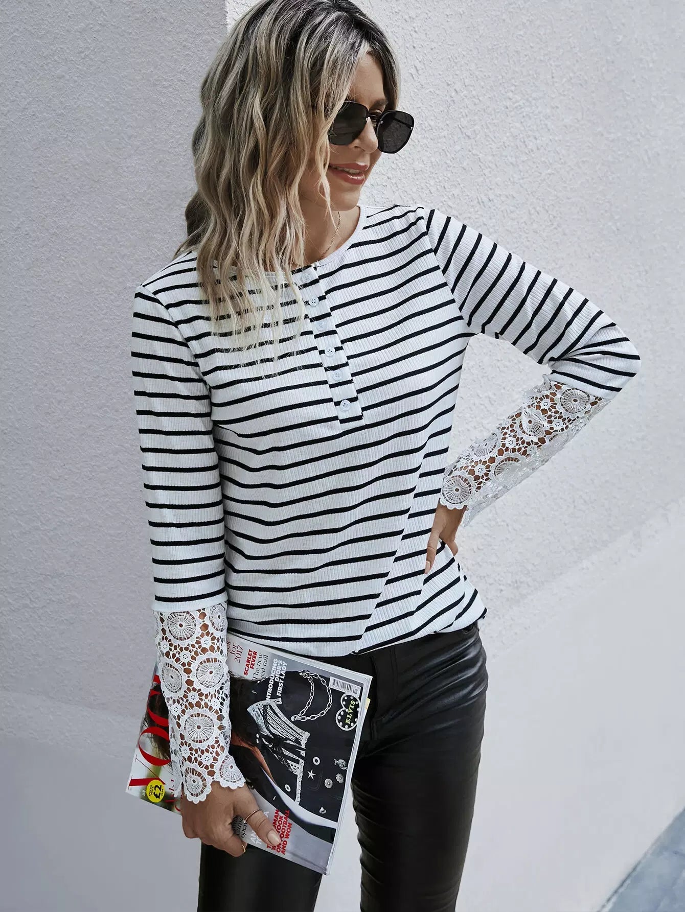 تي شيرت مخطط بنصف أزرار وجزء من الدانتيل