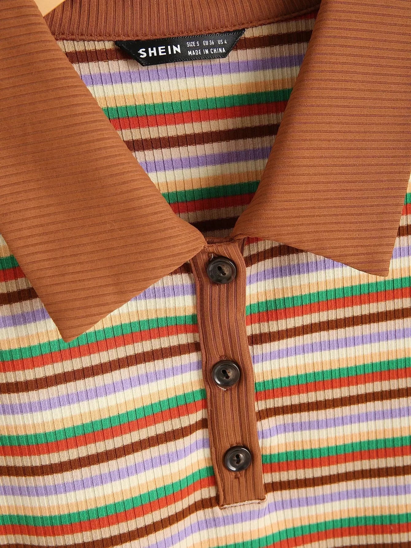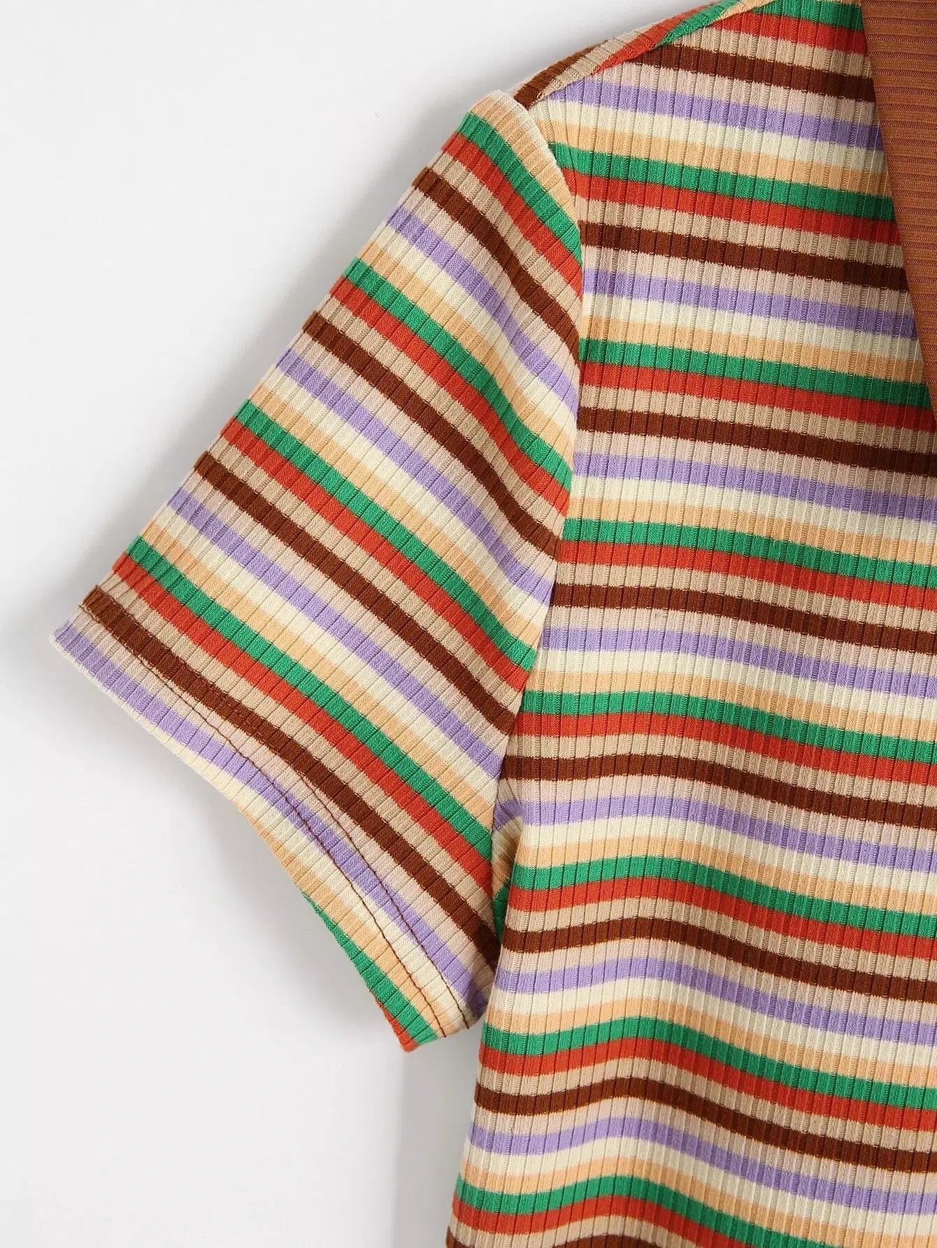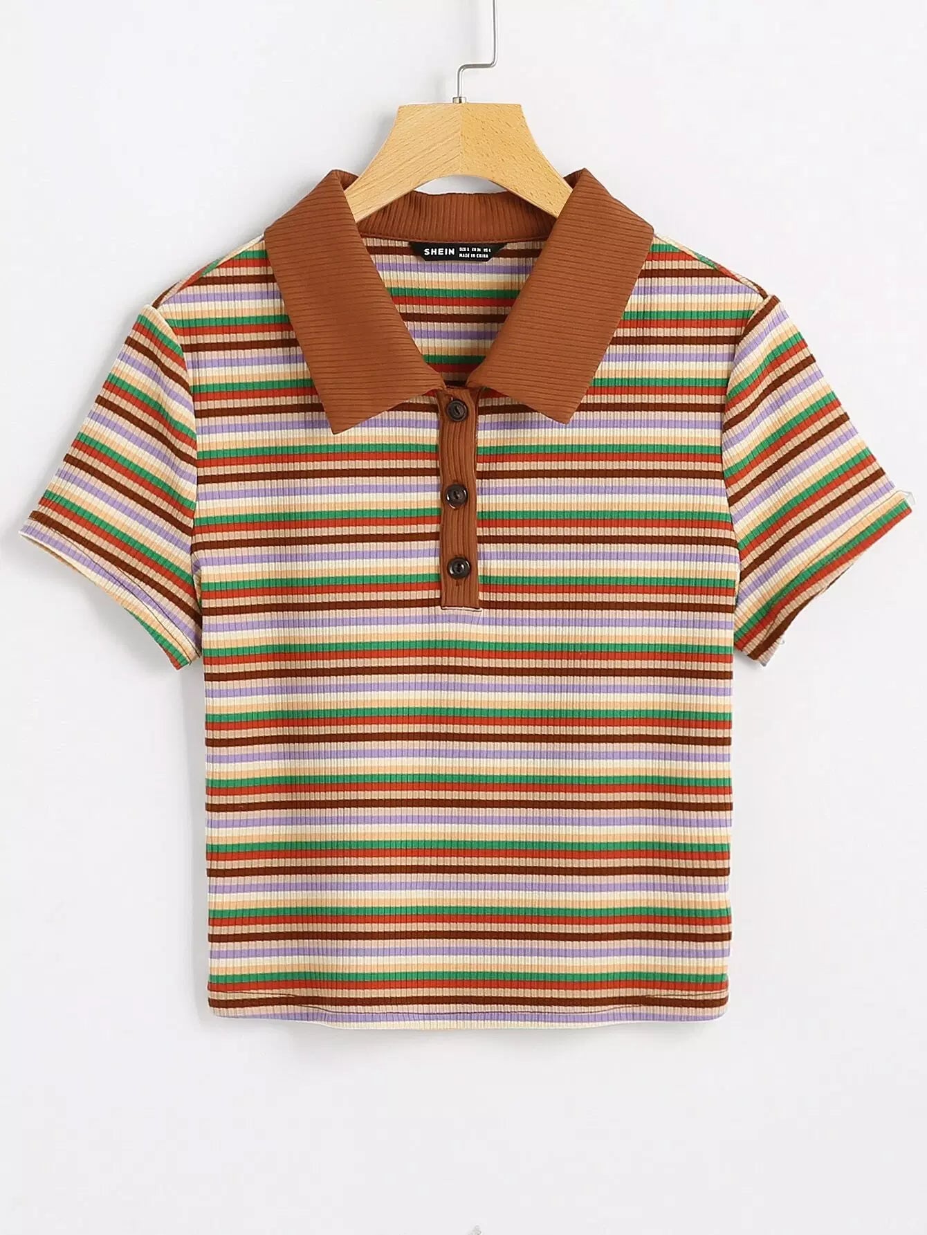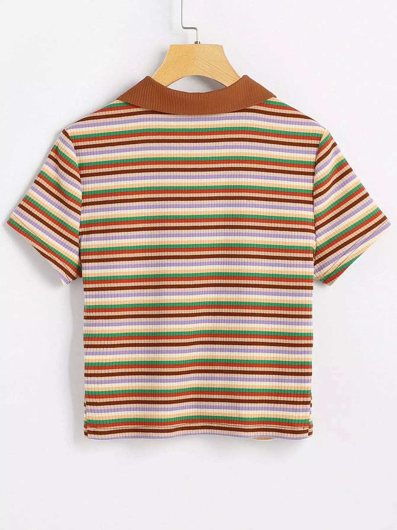 تي شيرت بأزرار متماسكة مخططة على شكل ضلع مخطط