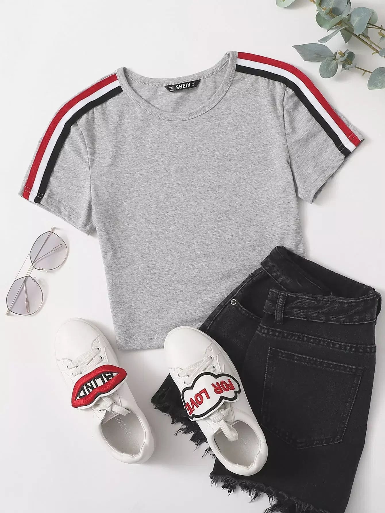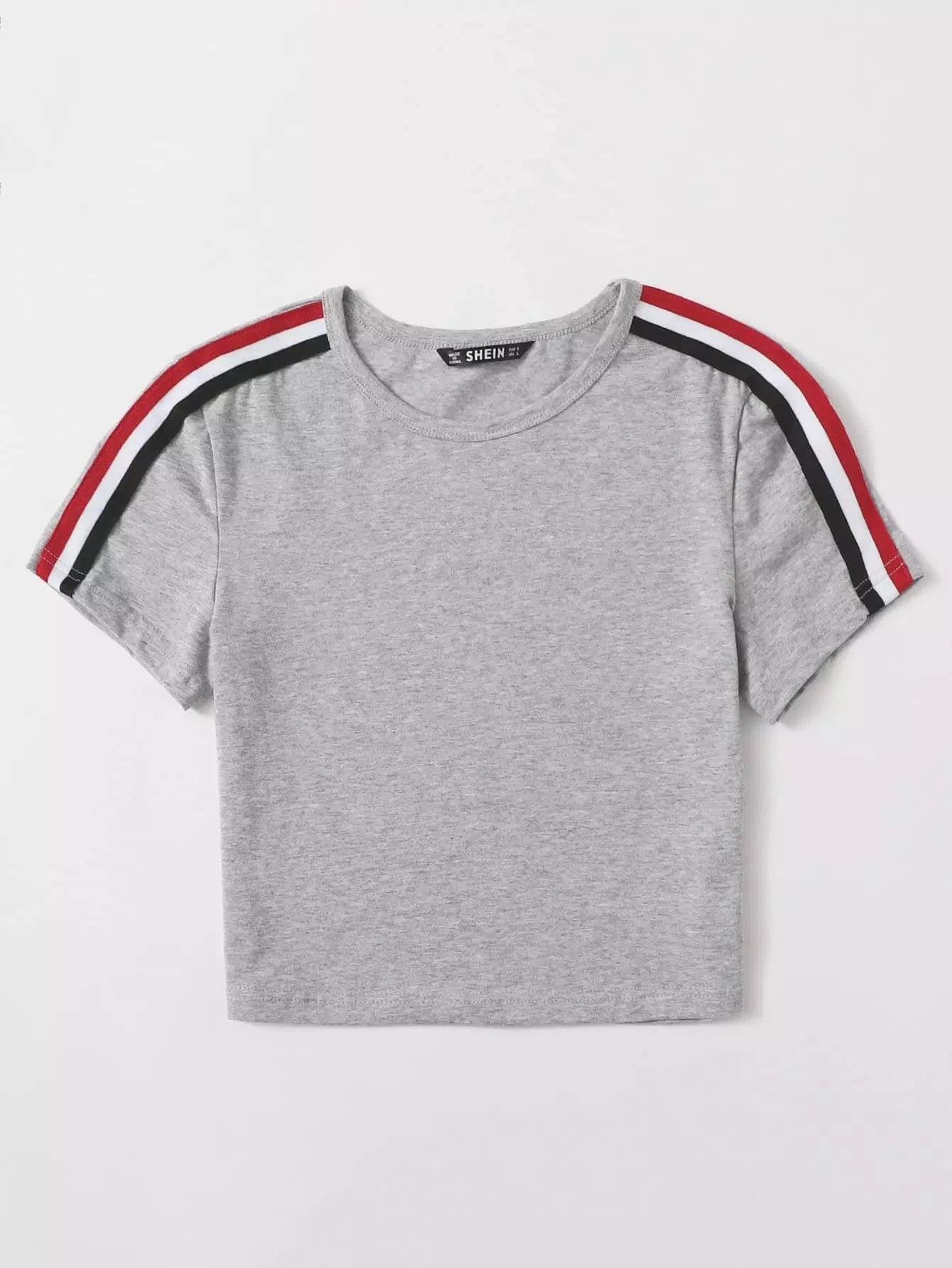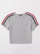 بلوزة قصيرة بتفاصيل شريط مخطط
