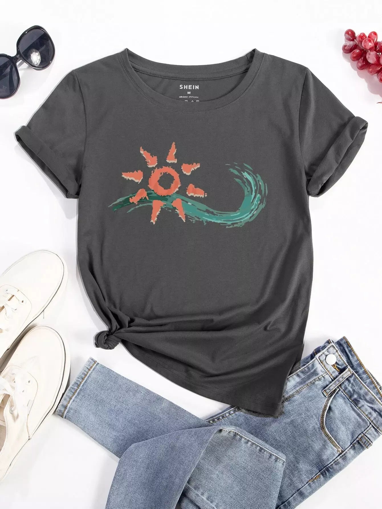 تي شيرت بطبعة شمس وبحر