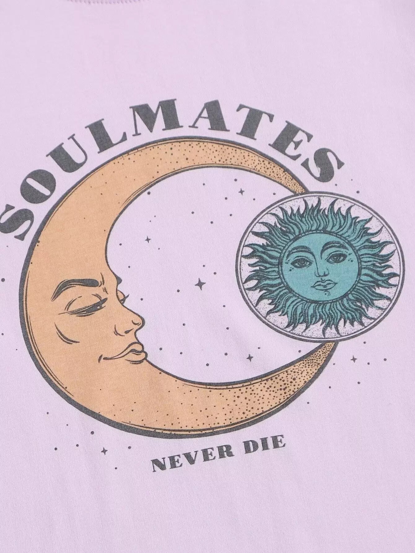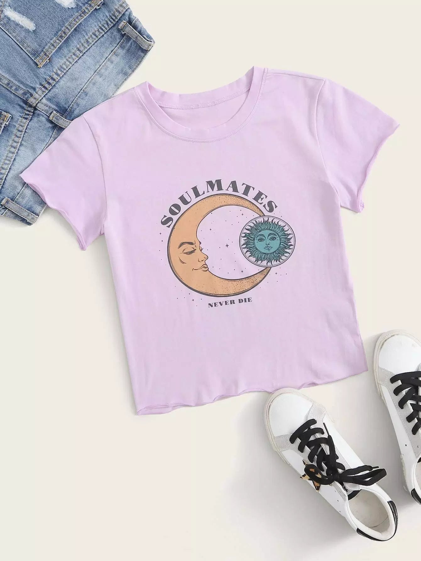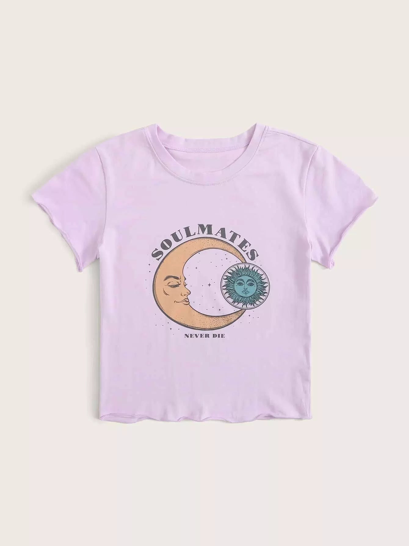 للنساء - تي شيرت برسومات الشمس والقمر والحروف