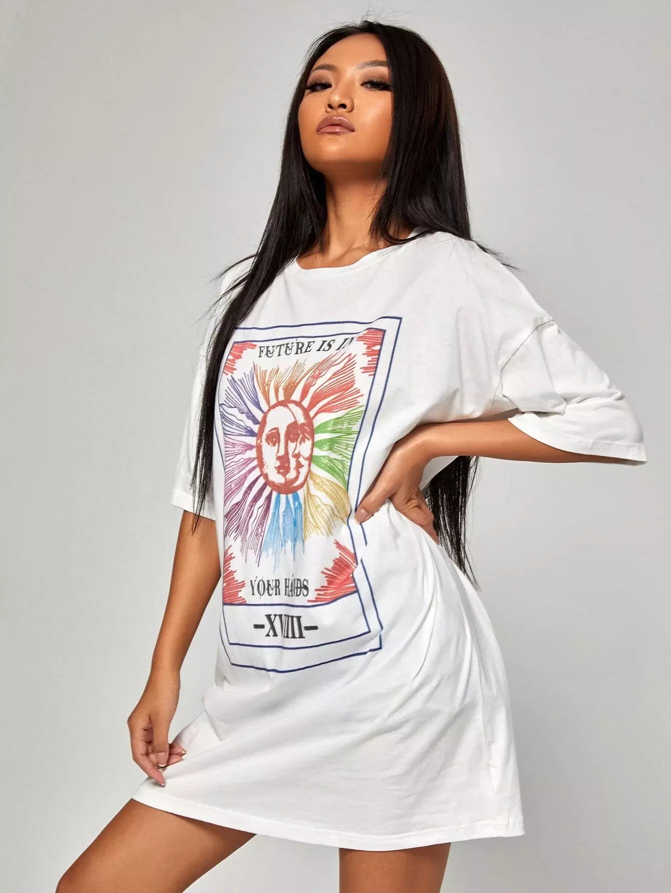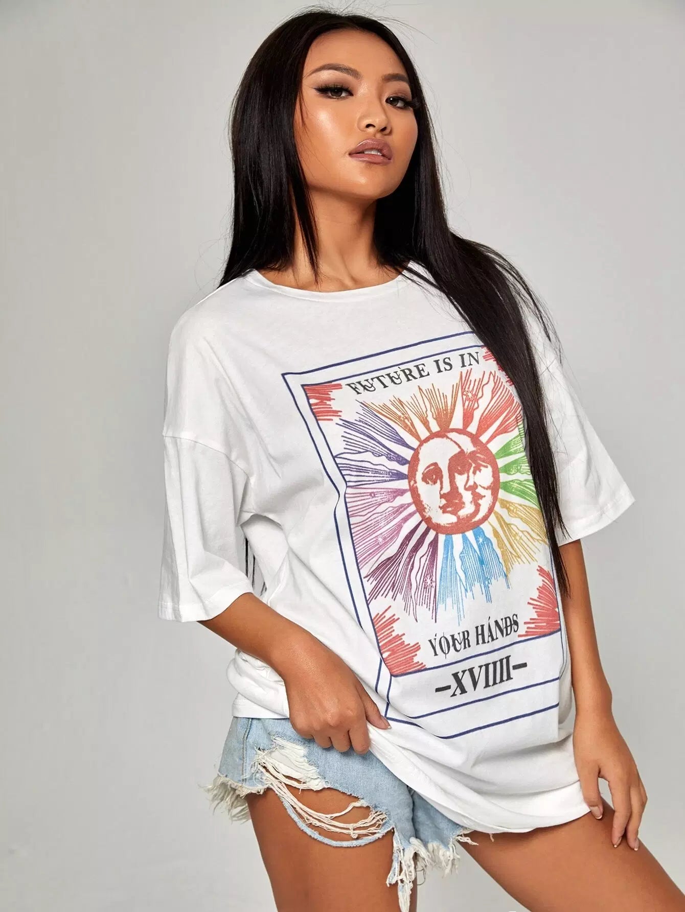 نسائي - تي شيرت سن آند سلوتج بحجم كبير