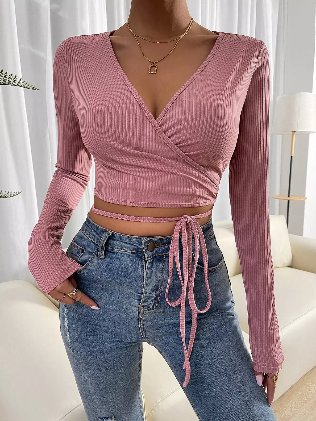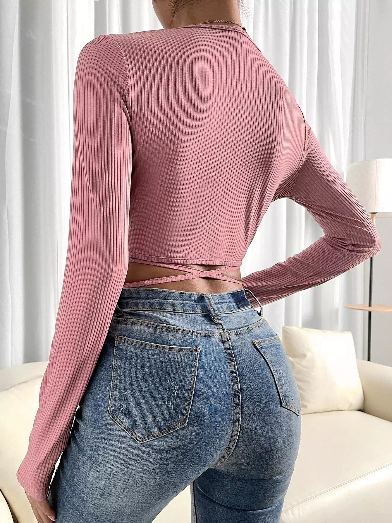 بلوزة قصيرة محبوكة من الأمام برباط حول الرقبة