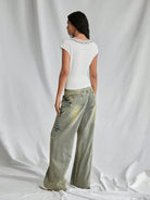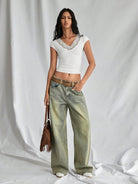 تي شيرت TRNVIE نسائي أبيض بأكمام قصيرة ورقبة على شكل حرف V وقصة ضيقة على طراز بوهو من قطعة واحدة