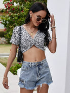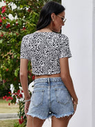 تي شيرت قصير بطبعة جلد النمر من الأمام