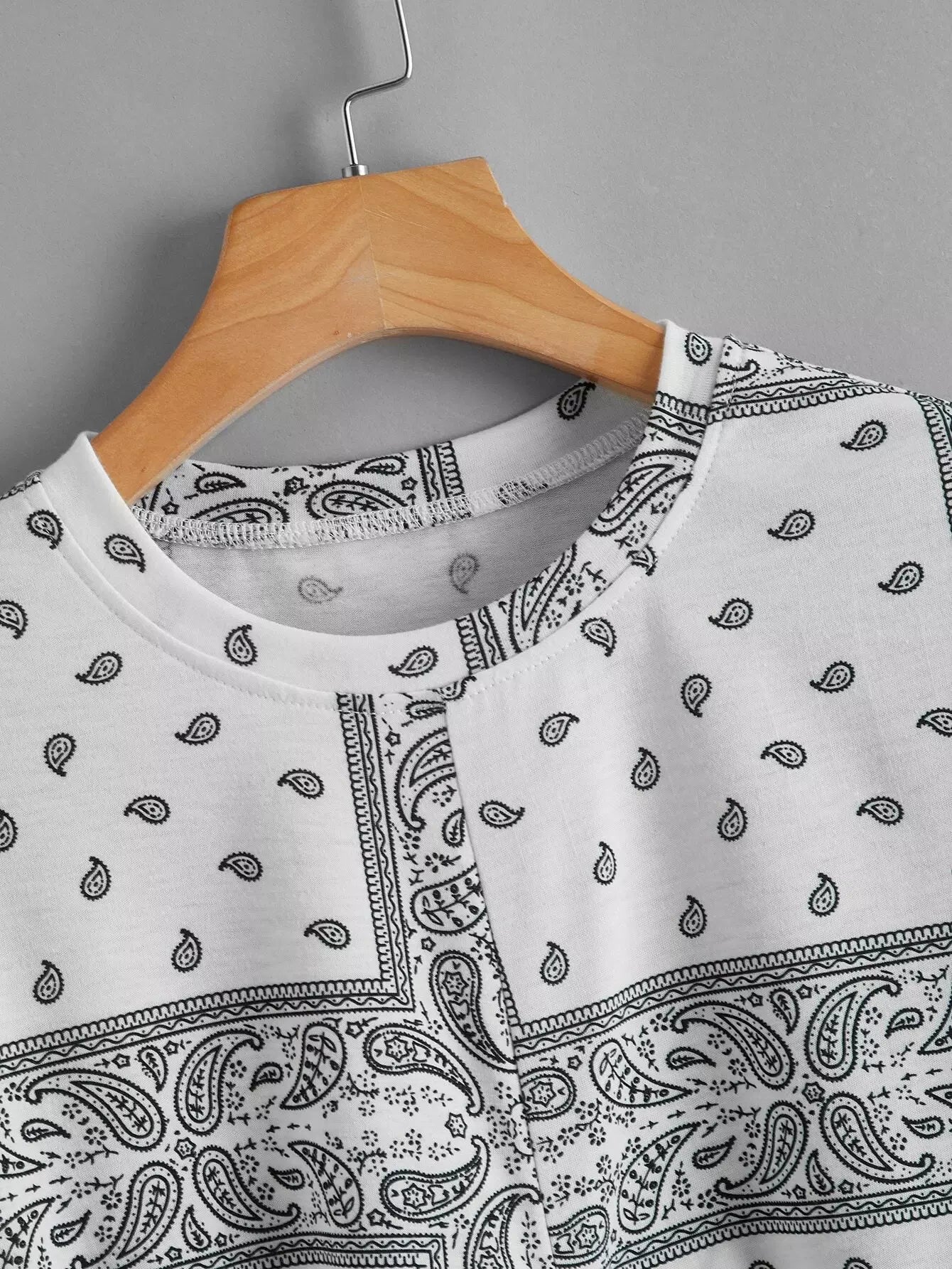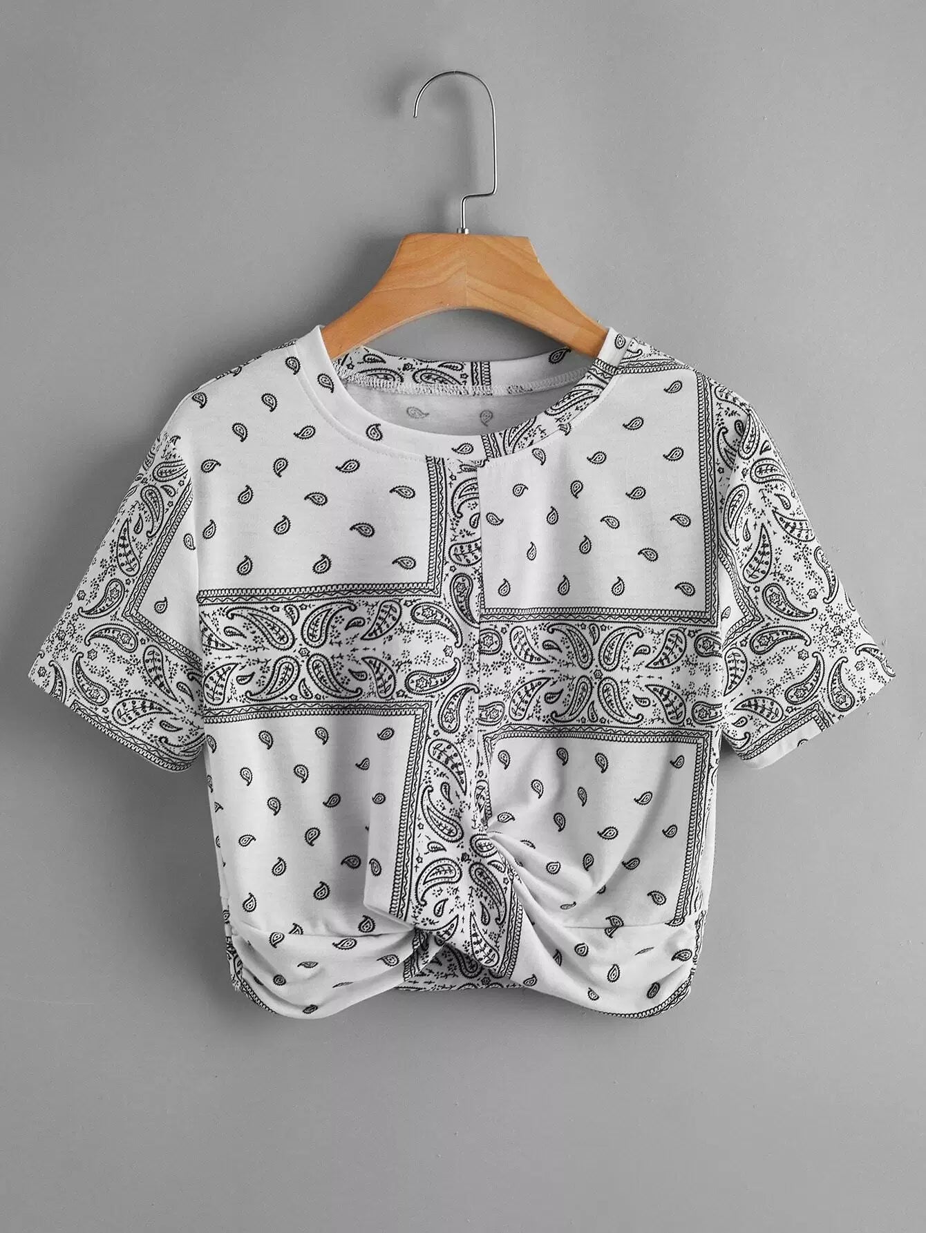 تي شيرت بطبعة بيزلي بحافة ملتوية