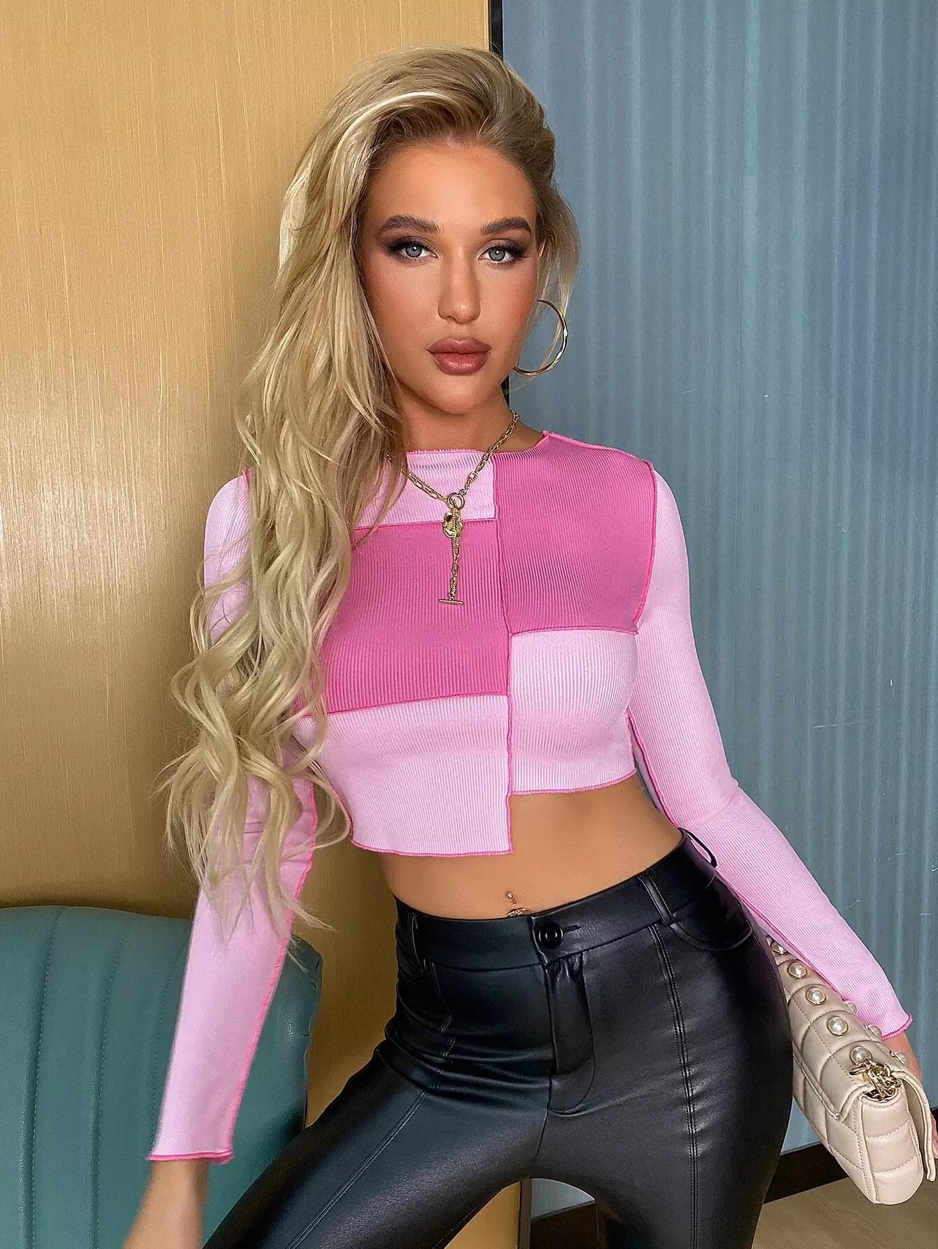 قميص تي شيرت بخياطة علوية ثنائية اللون وحاشية غير متماثلة