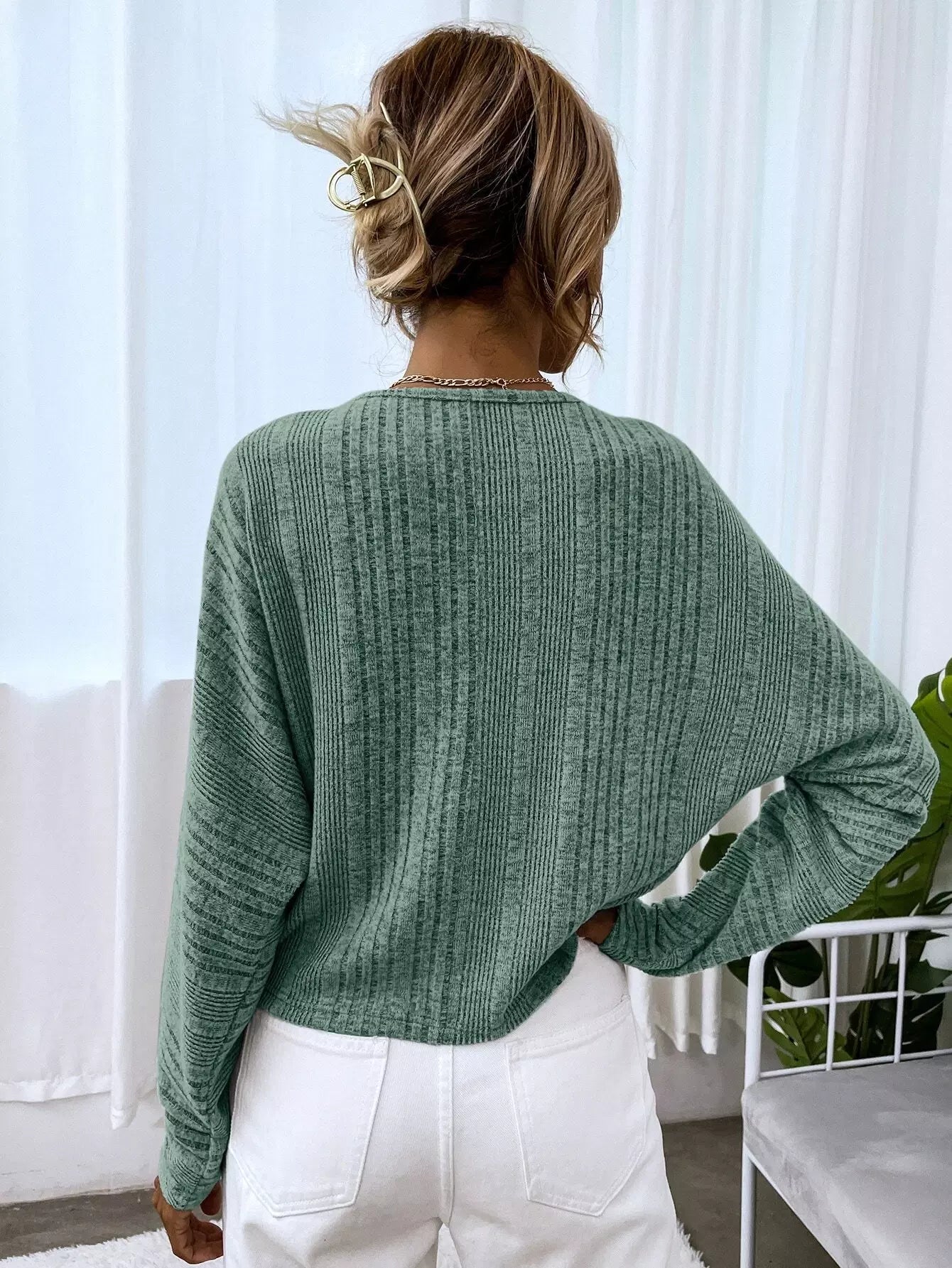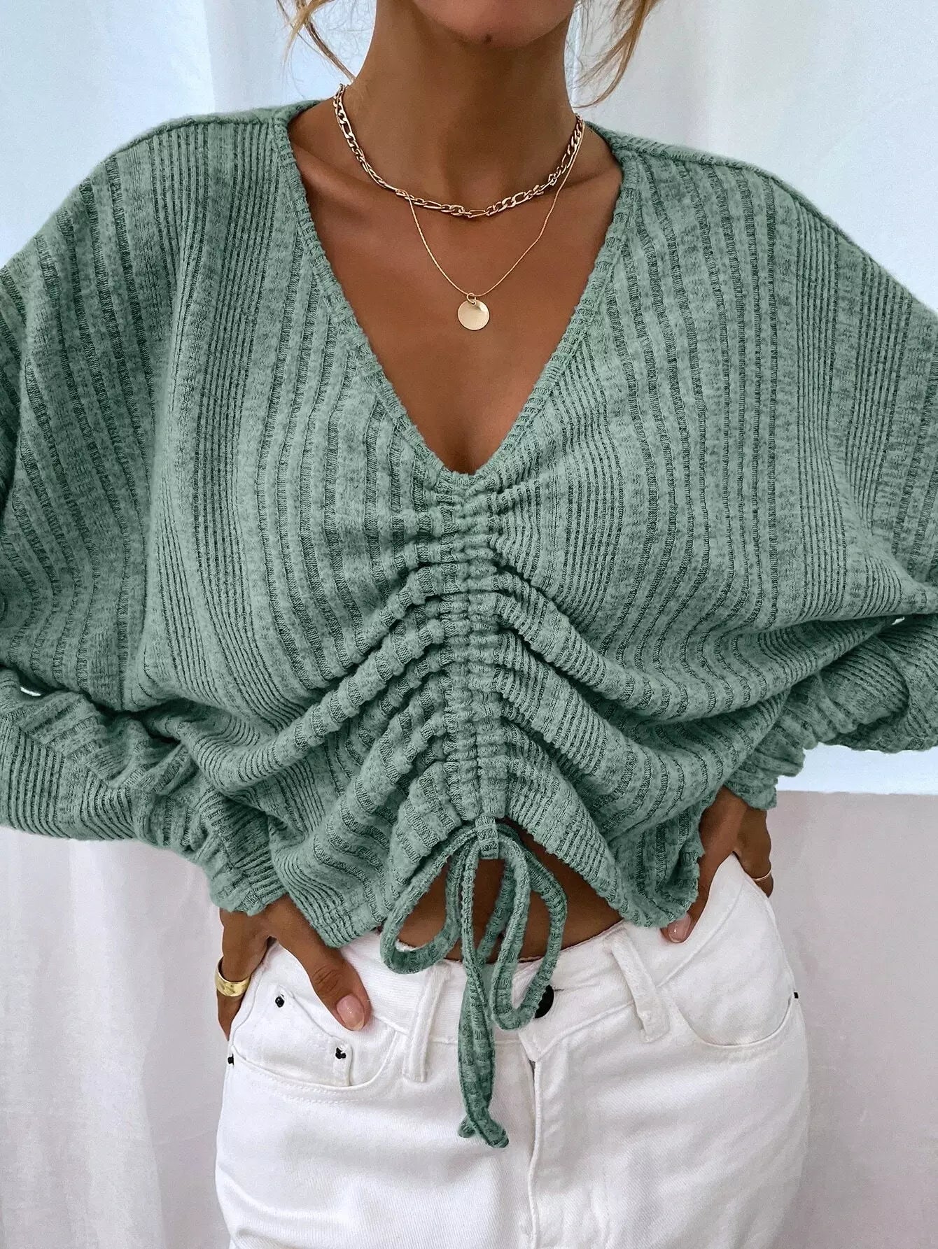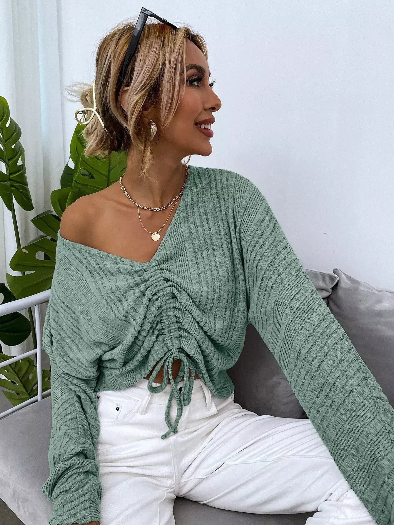 تي شيرت بأكمام على شكل V برقبة على شكل باتوينغ بأربطة