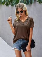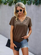 تي شيرت بياقة على شكل حرف V مزين بأزرار على شكل حرف V