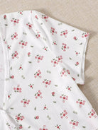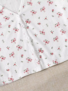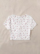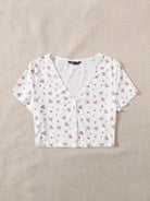 للنساء - تي شيرت قصير بأزرار أمامية على شكل حرف V ومزين بالزهور