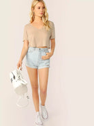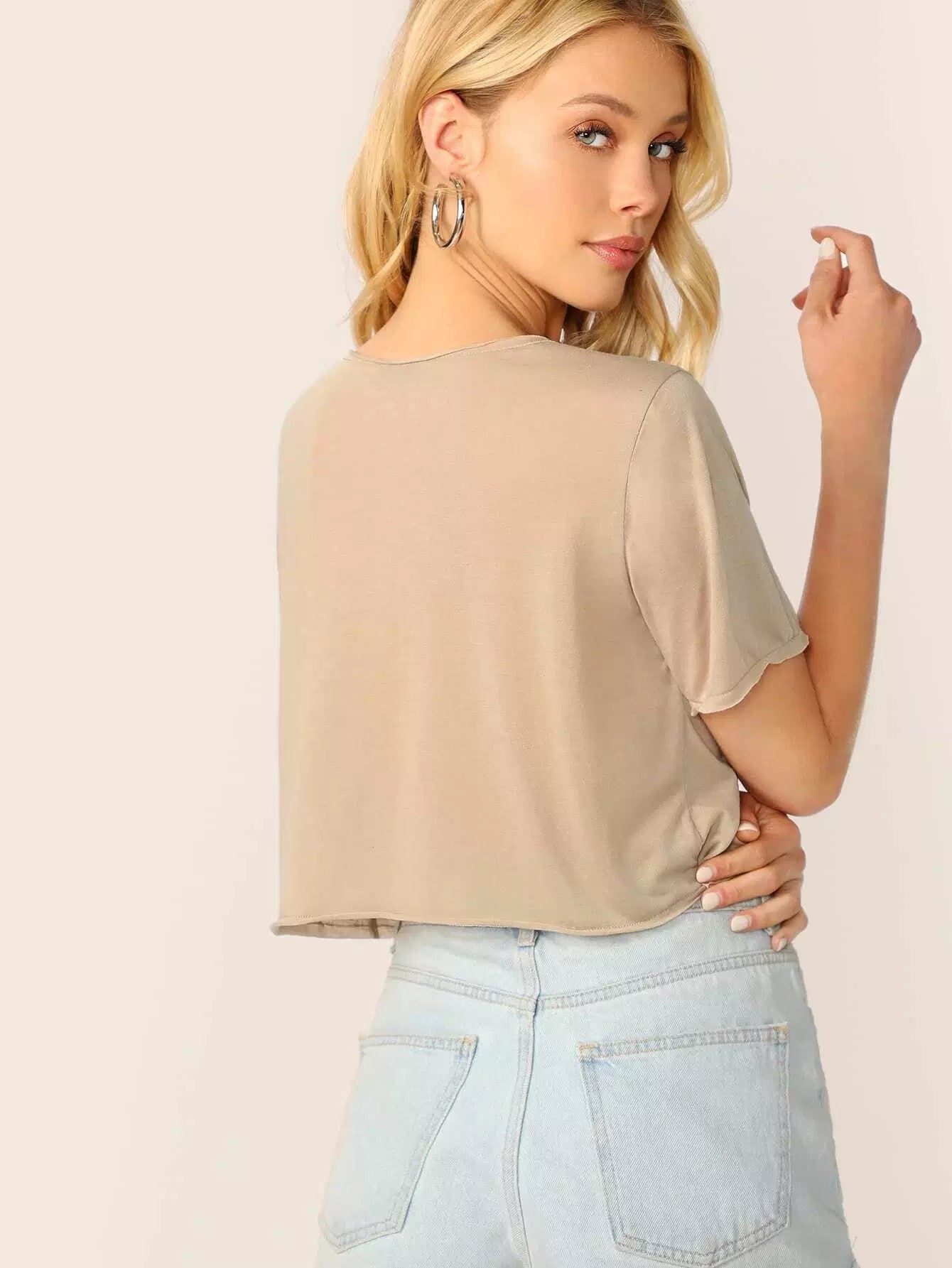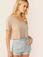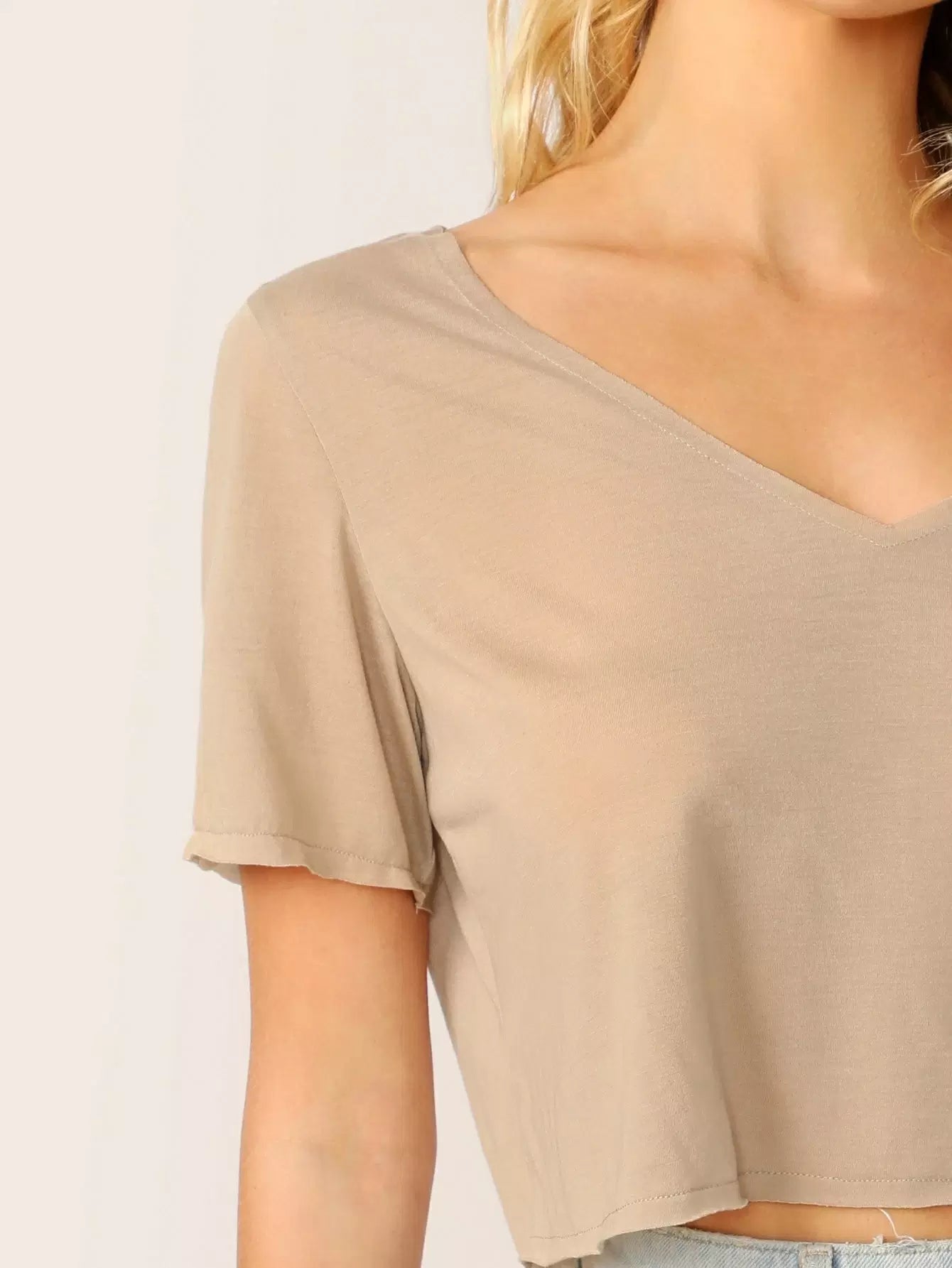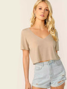 تي شيرت بياقة على شكل V برقبة على شكل V