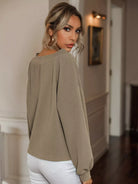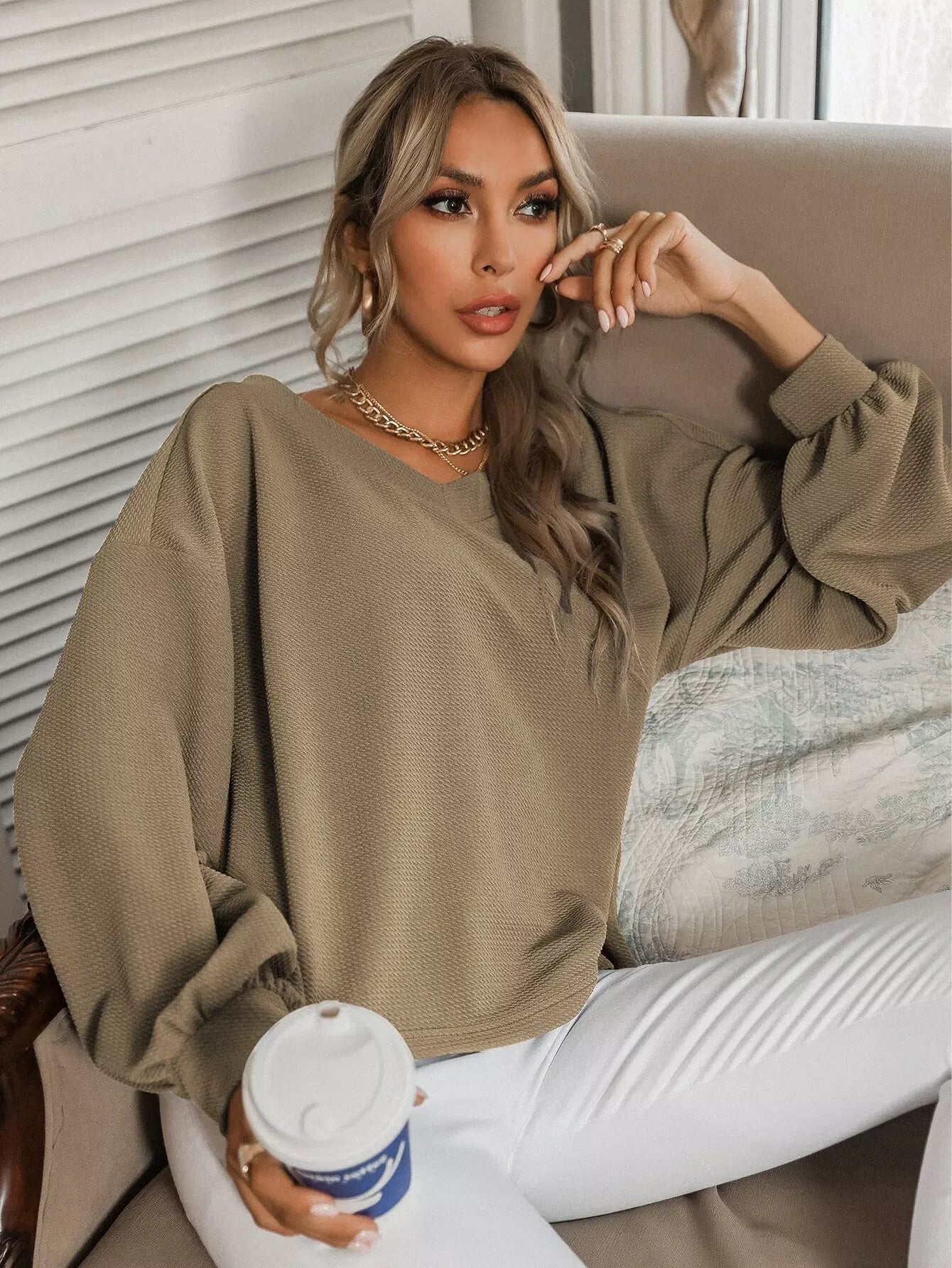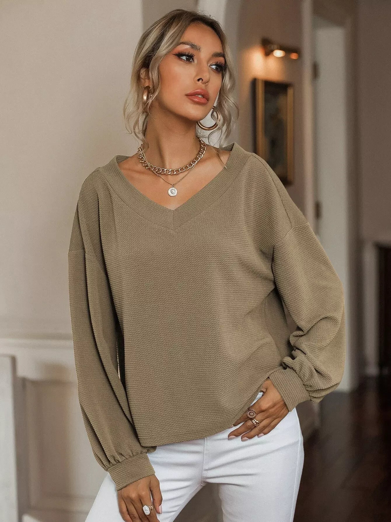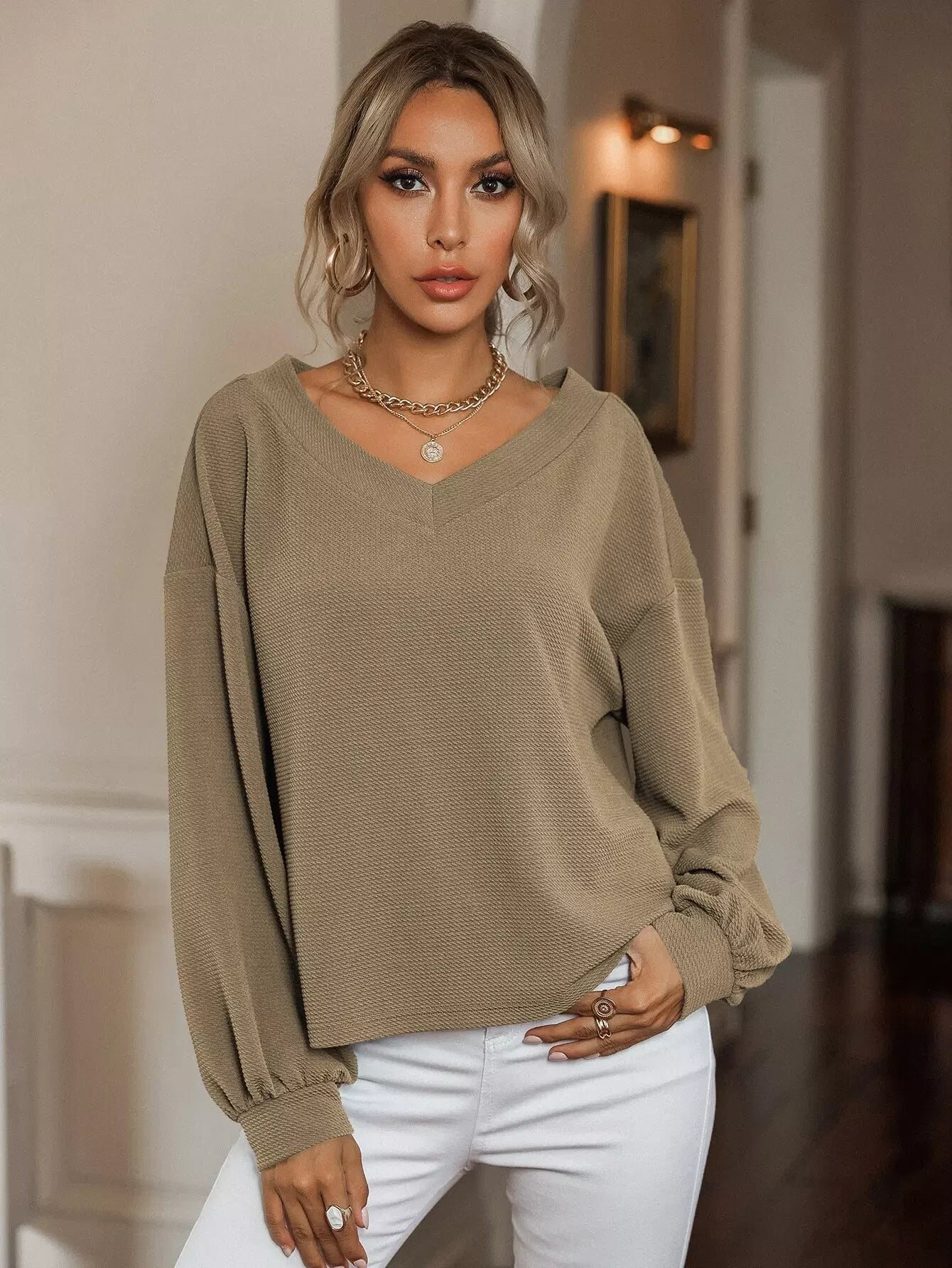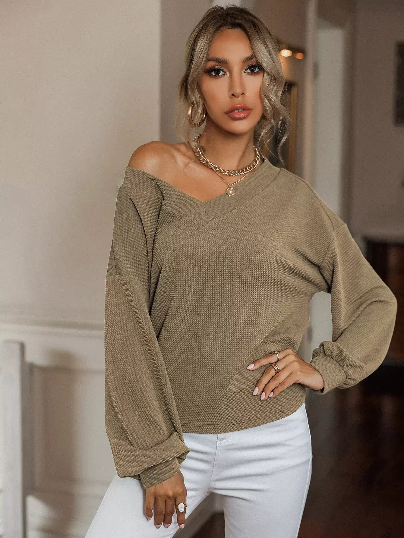 تي شيرت بأكمام منسدلة الكتفين على شكل حرف V بياقة على شكل حرف V