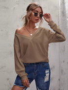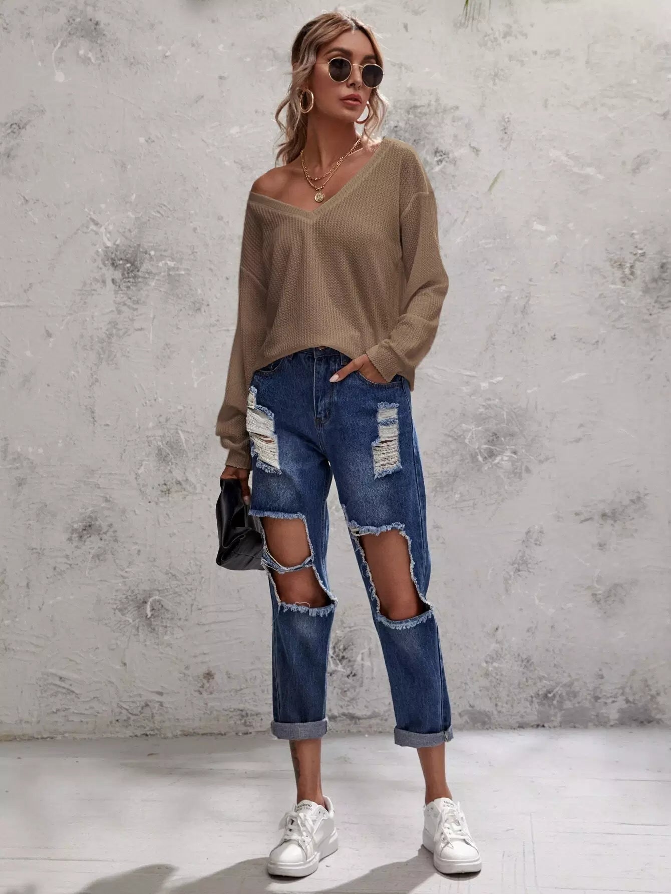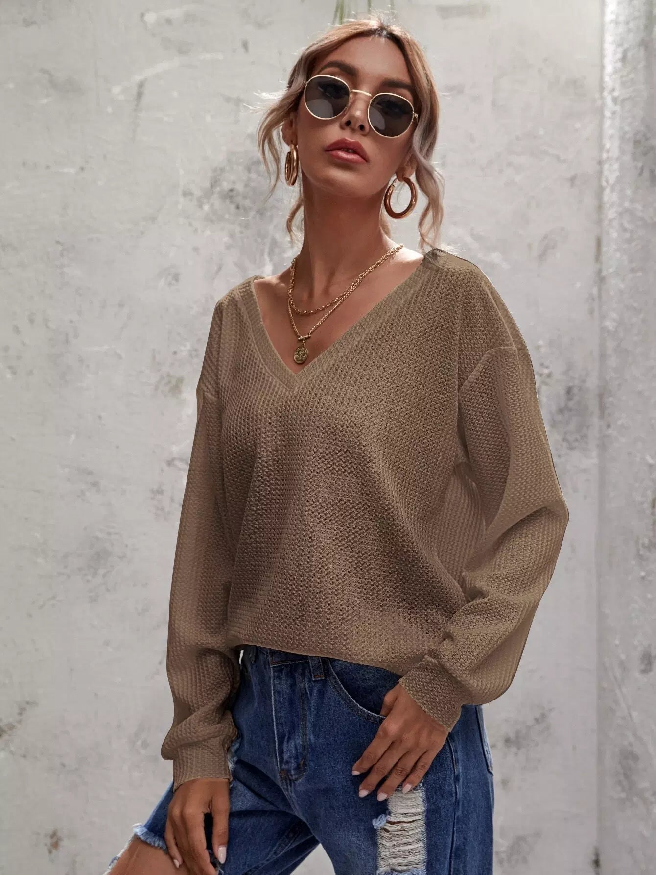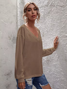 تي شيرت منسدل الكتفين برقبة على شكل V