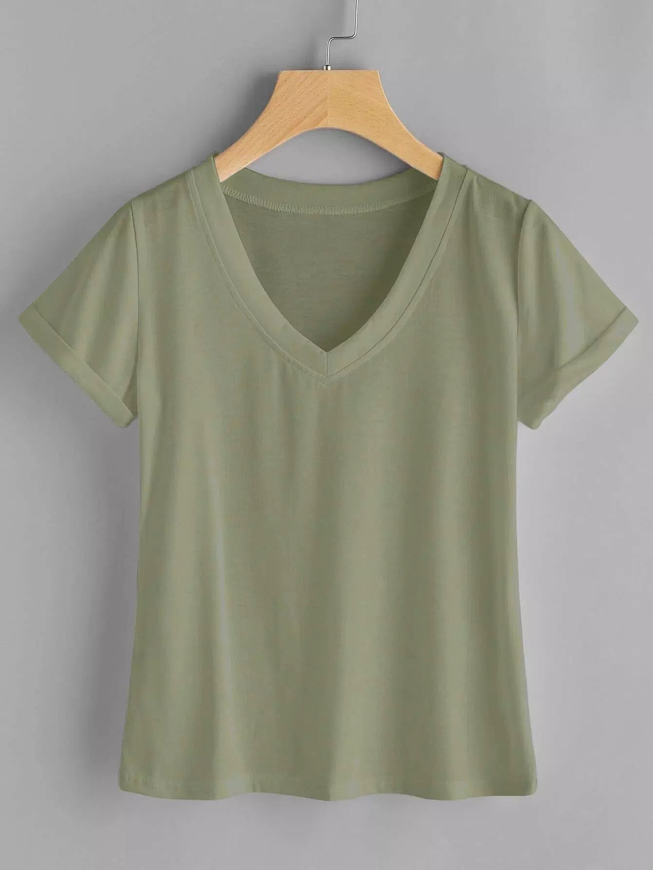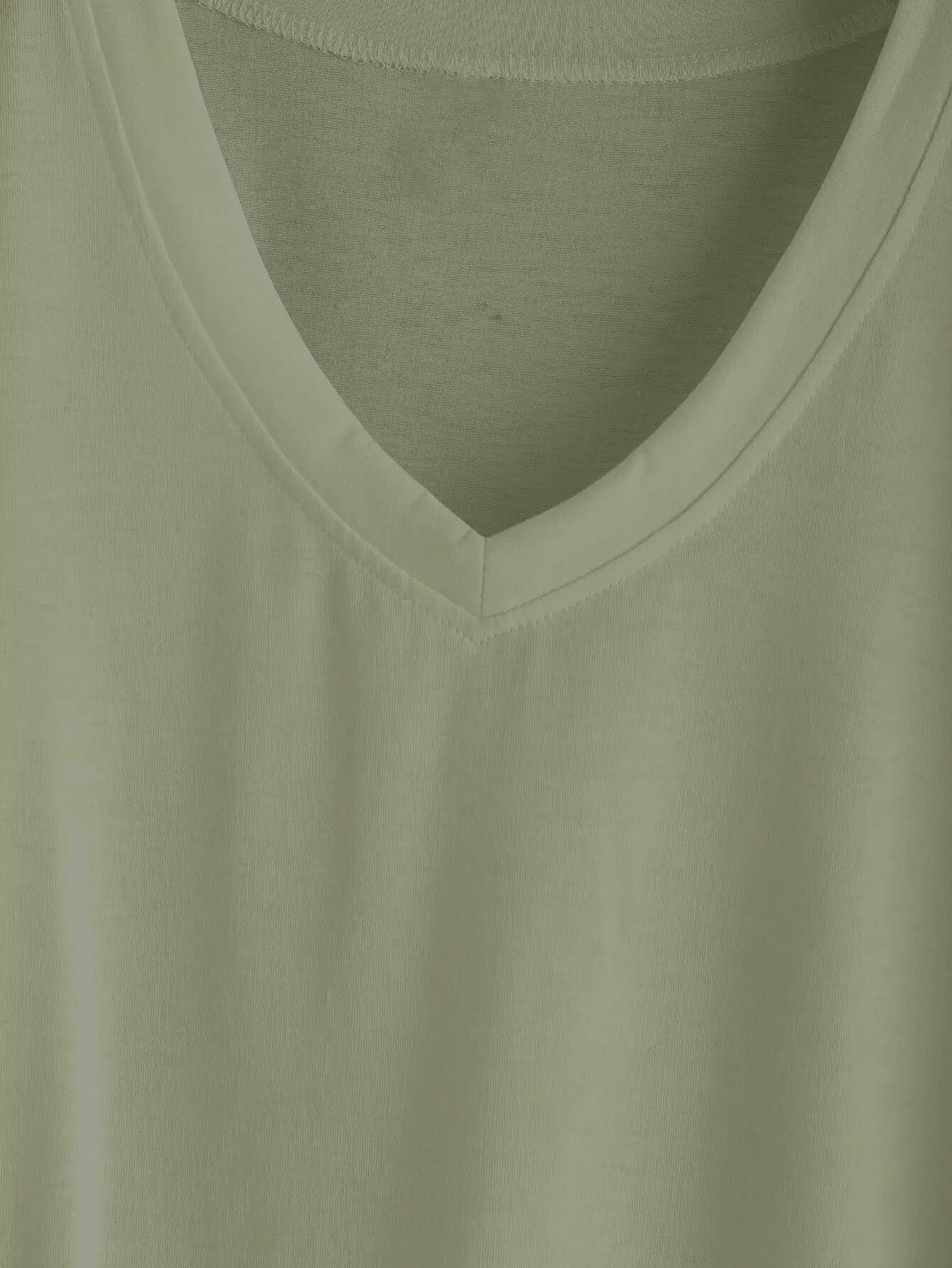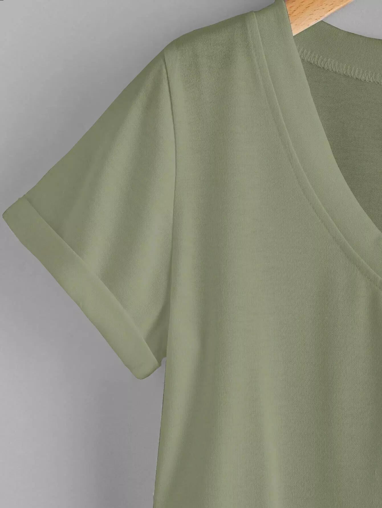 تي شيرت بياقة على شكل حرف V برقبة على شكل حرف V