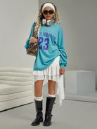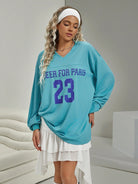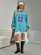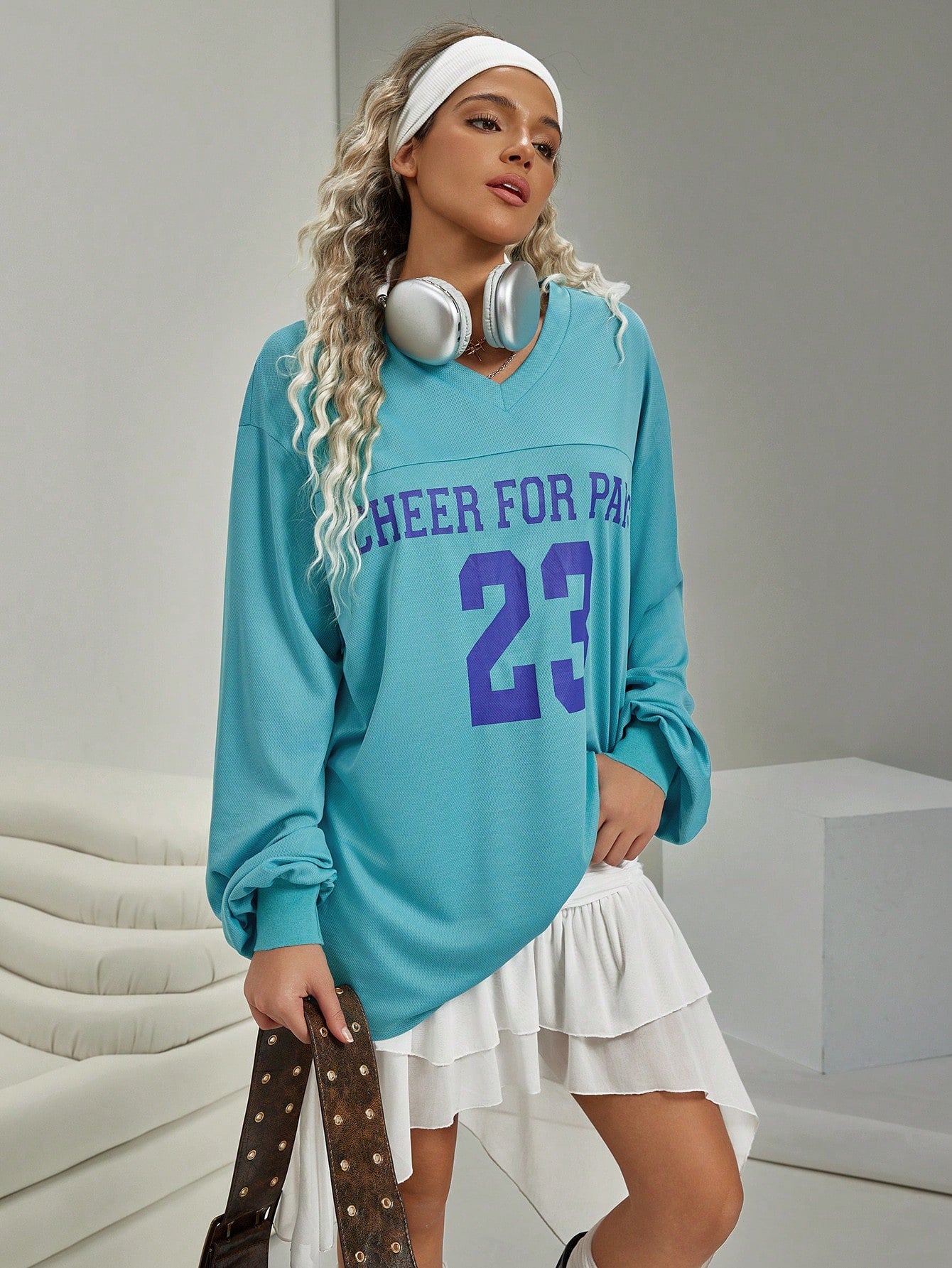 VARSITIE Retro Style Golf Blue Loose Casual Numbers And Letters Print Women Tees & Tanks