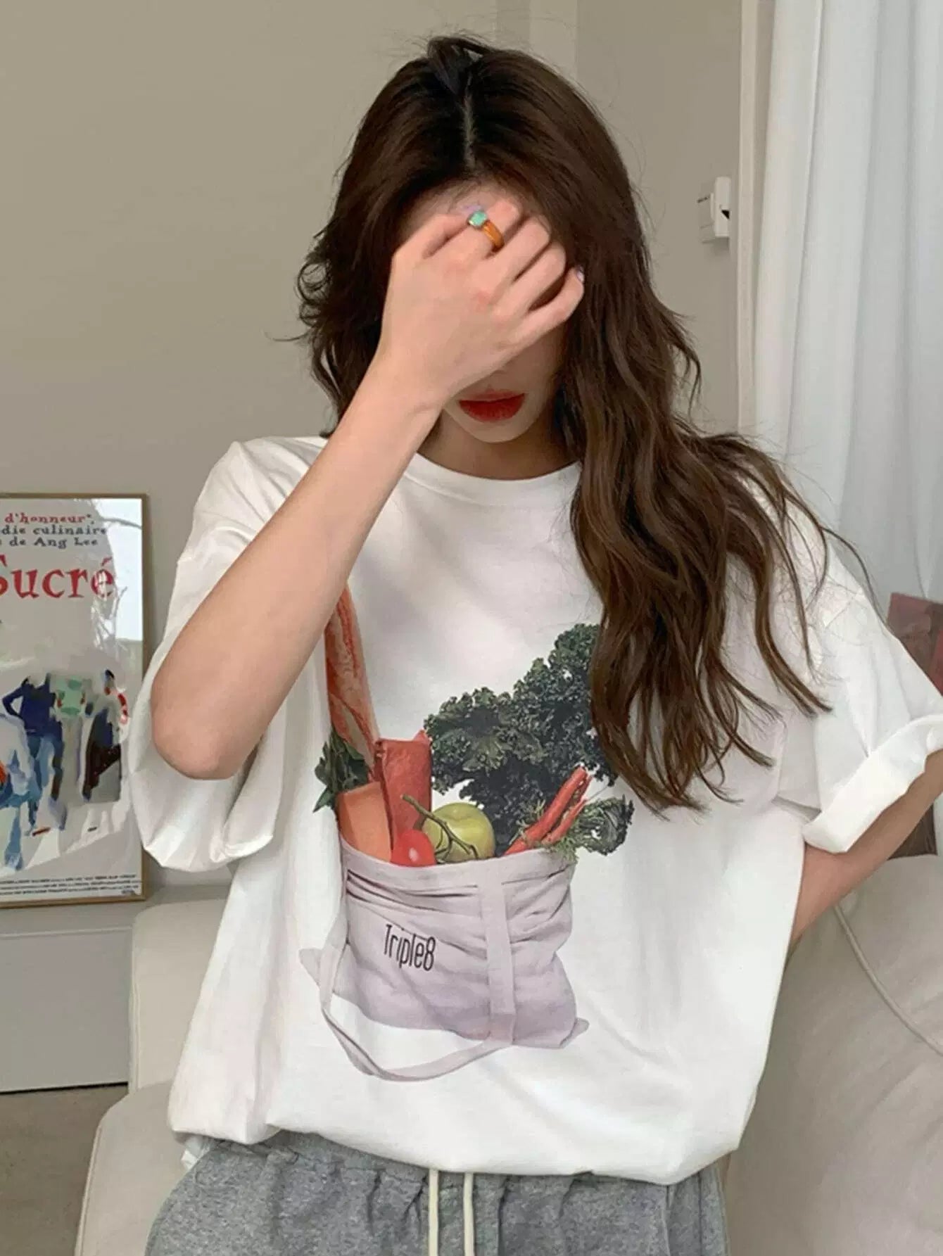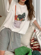 تي شيرت كبير الحجم بنمط نباتي وأكتاف منسدلة