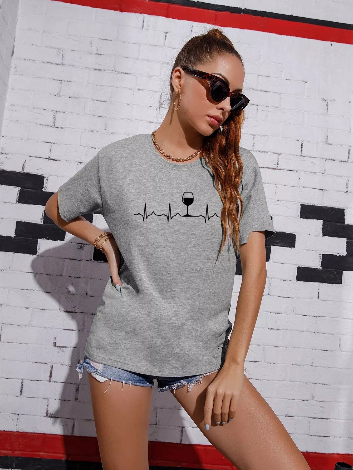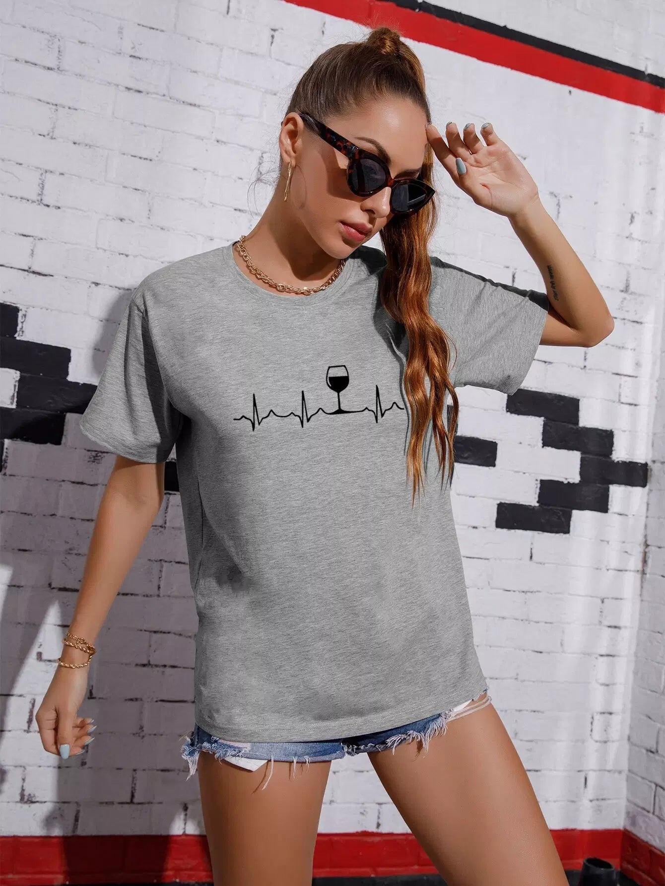 للنساء - تي شيرت مطبوع عليه كأس نبيذ