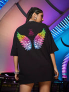 تي شيرت منسدل الكتف بجناح وشعار جرافيك