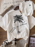 Women Casual Palm Tree Pattern Round Neck Short Sleeve Summer Beach T-Shirt