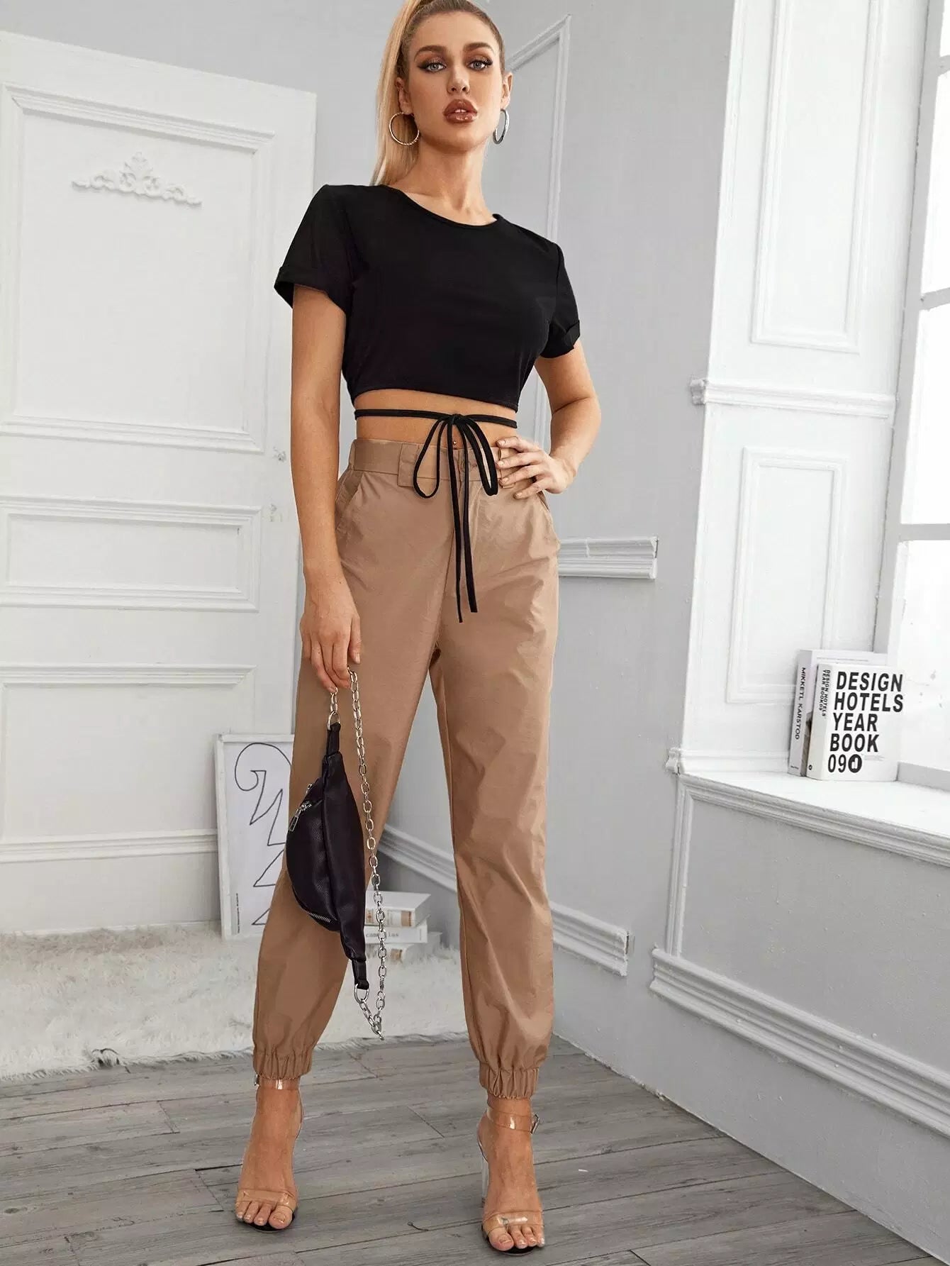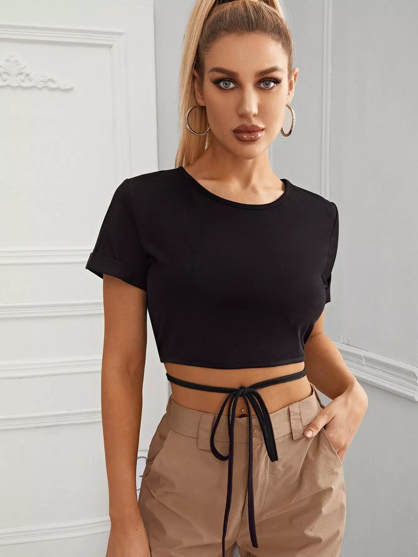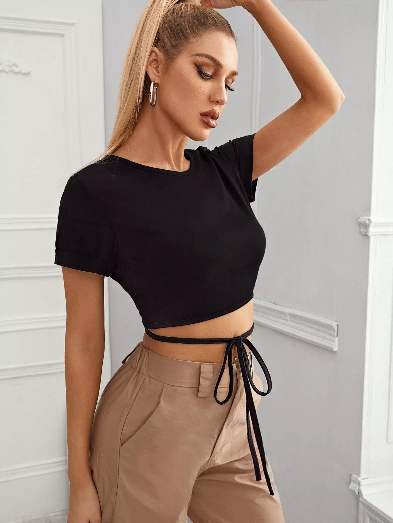 بلوزة قصيرة ملفوفة ذات ربطة عنق ملفوفة