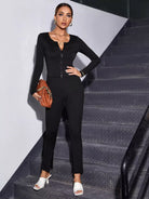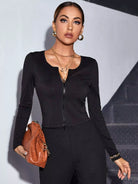 تي شيرت محبوك بسحاب أمامي مضلع محبوك بسحاب