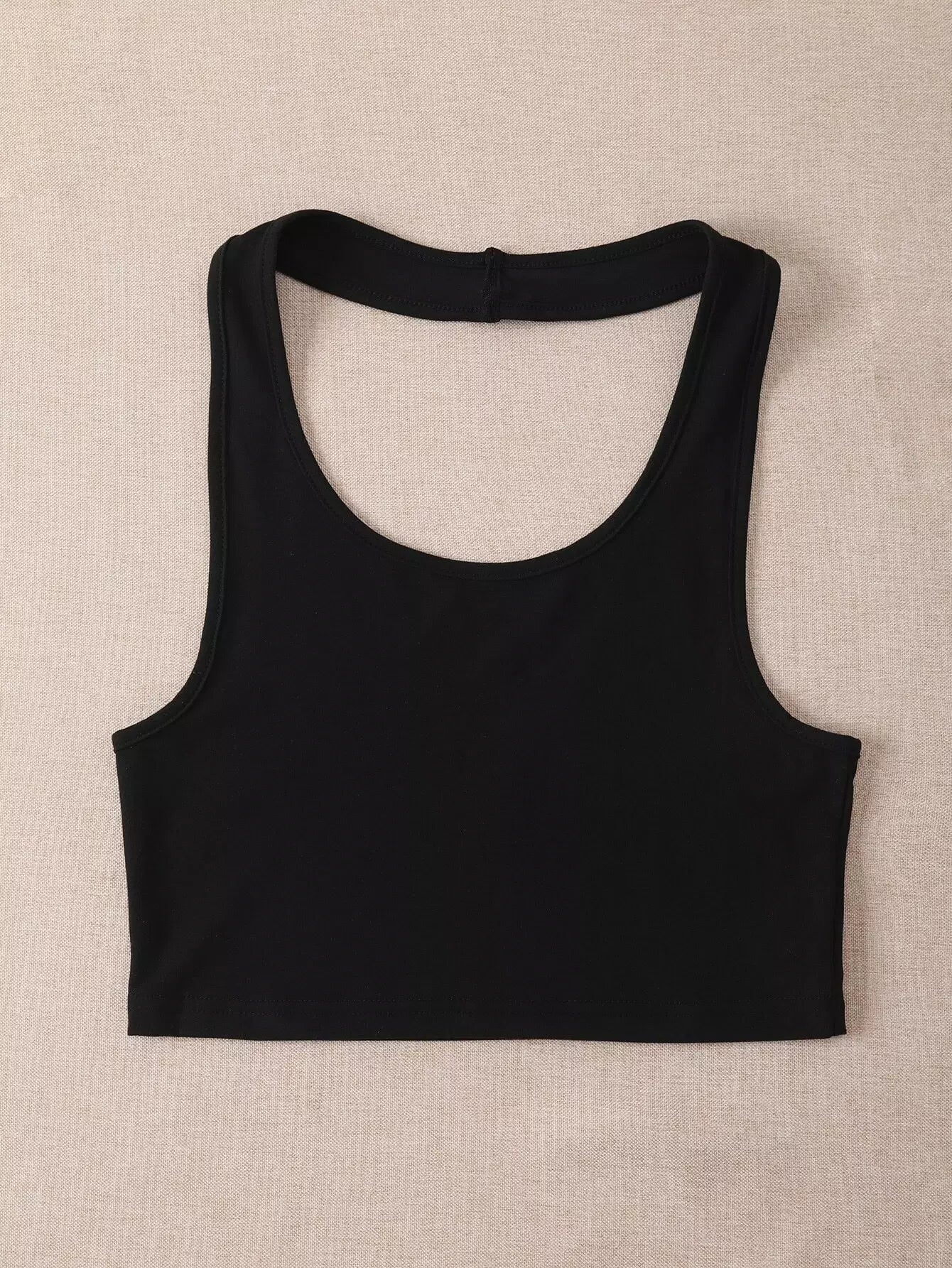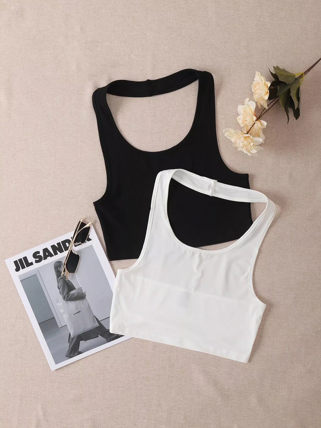 قطعتان من بلوزة قصيرة سادة بدون أكمام