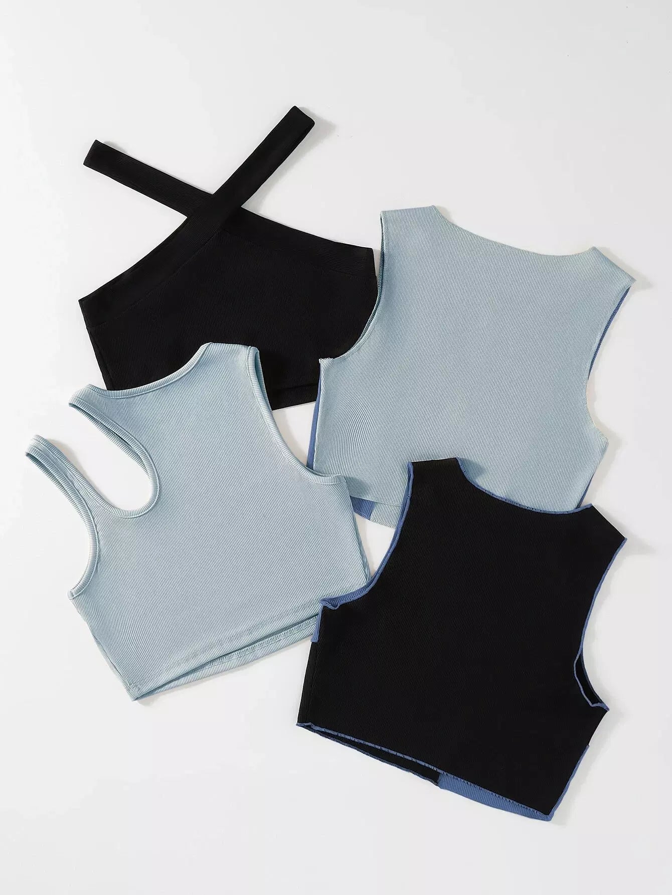 3 قطع تانك علوي مضلع محبوك ومضلع مضلع و1 قطعة علوي برباط