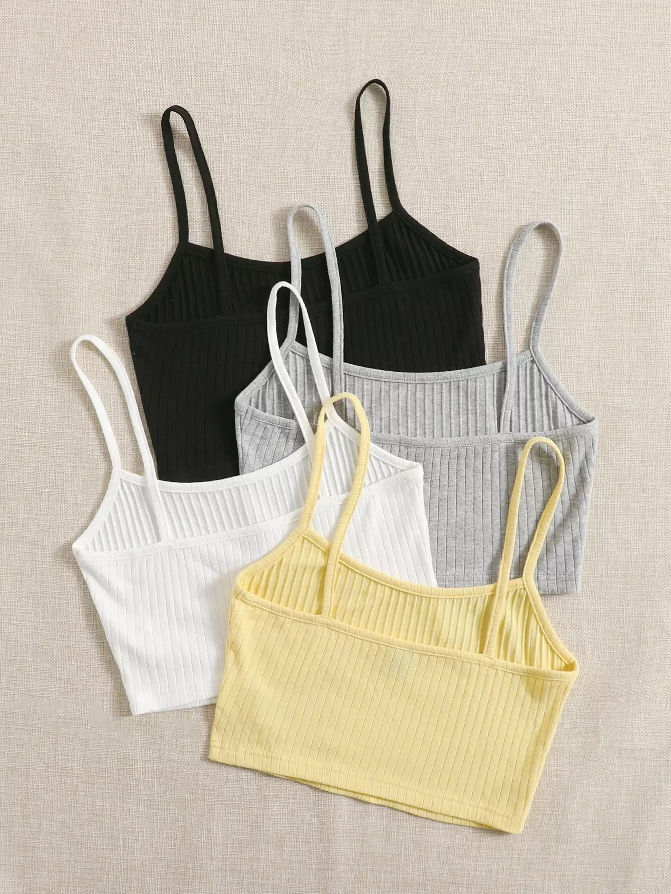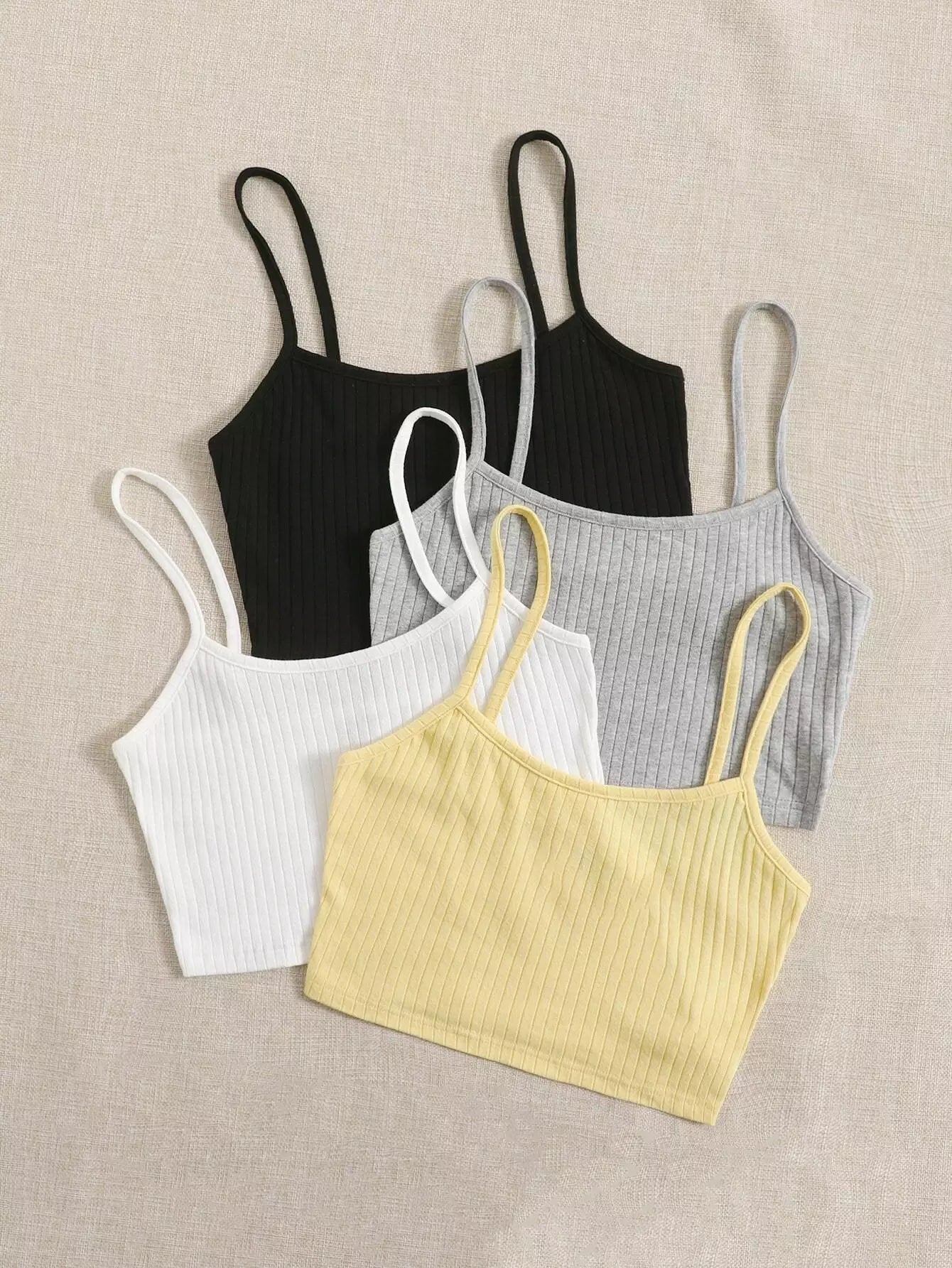 4 عبوات من قميص قصير محبوك على شكل ضلع محبوك بالخس
