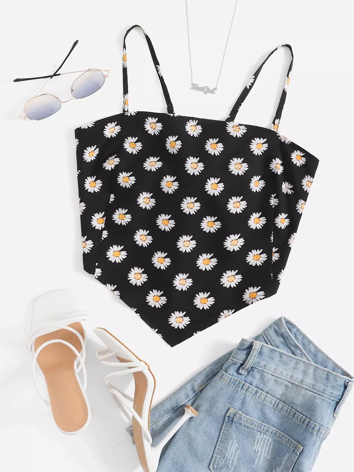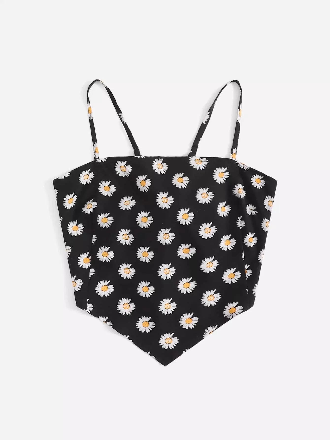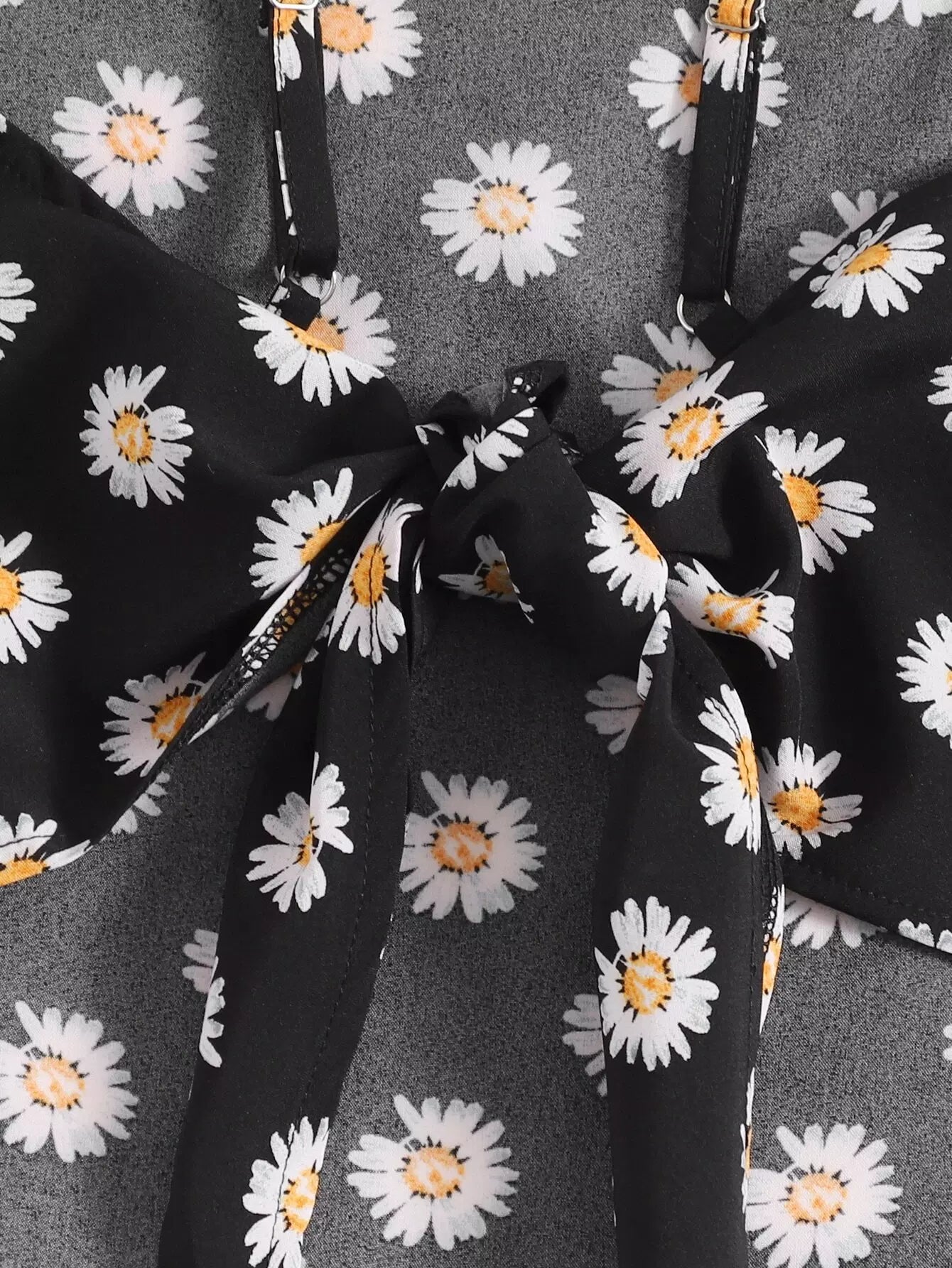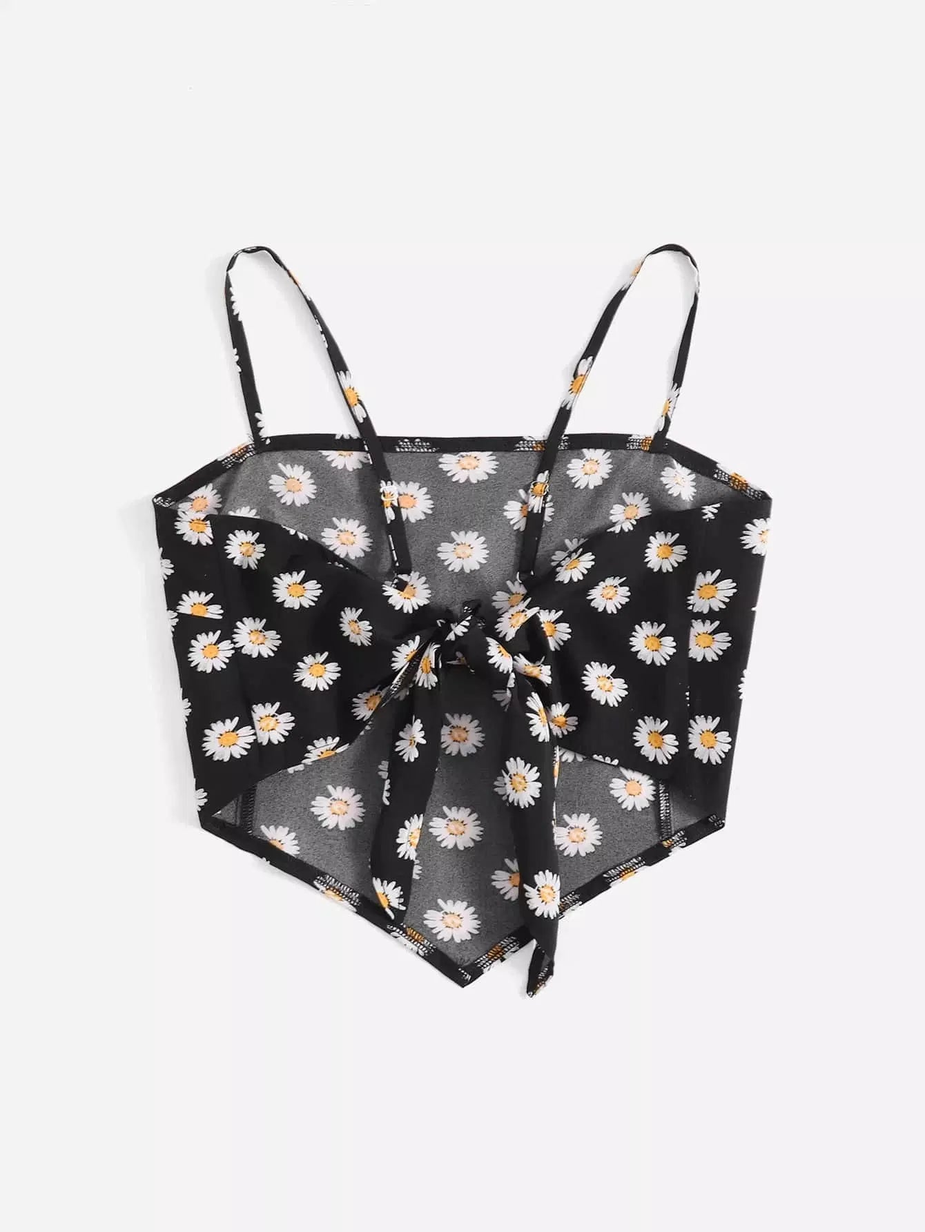 بلوزة كامي بطبعة زهور الأقحوان بالكامل مع رباط خلفي