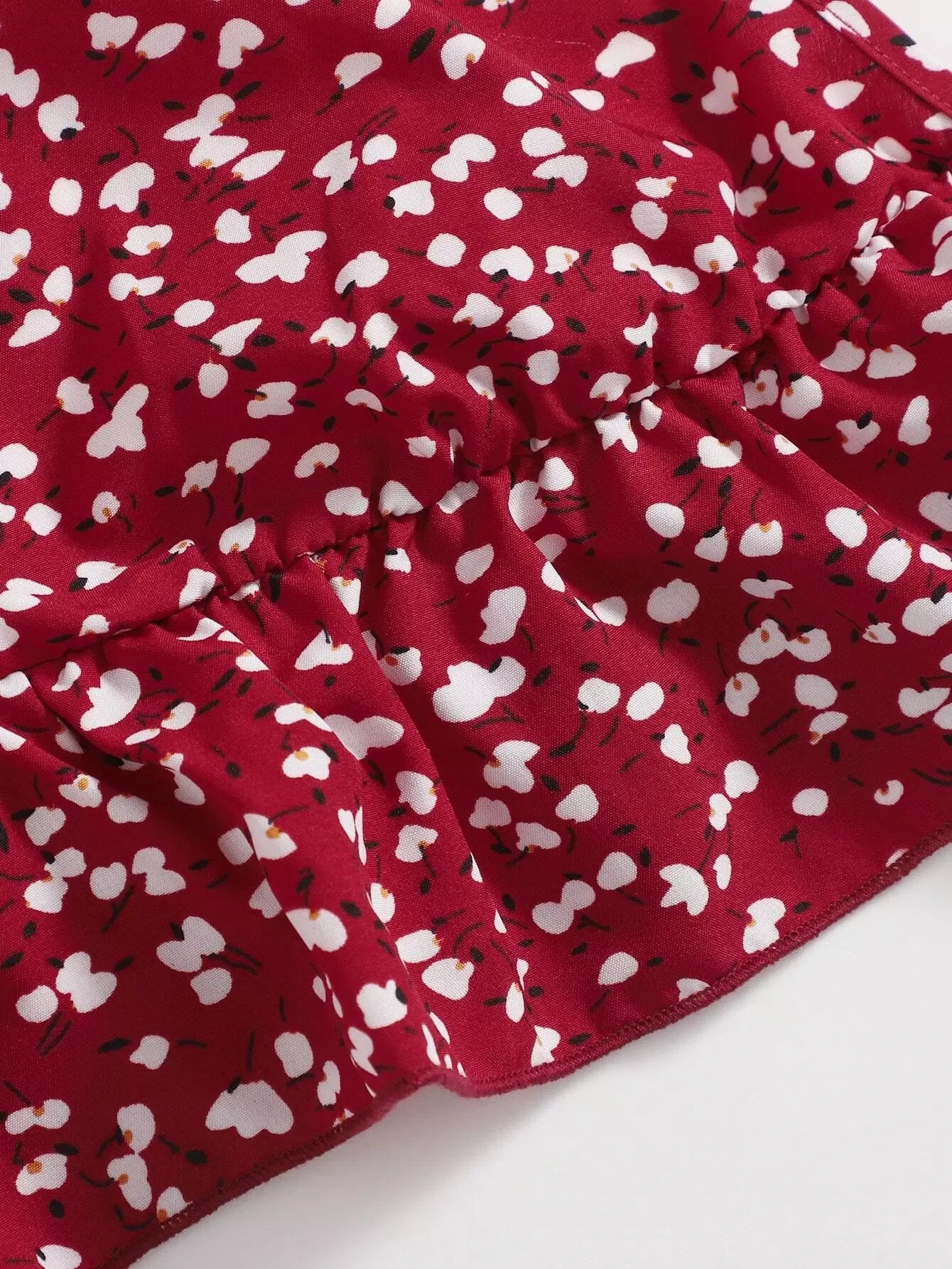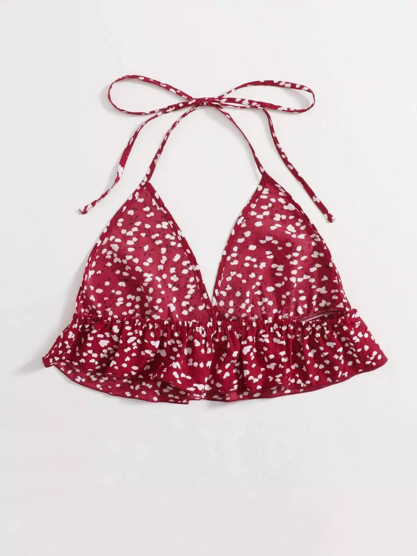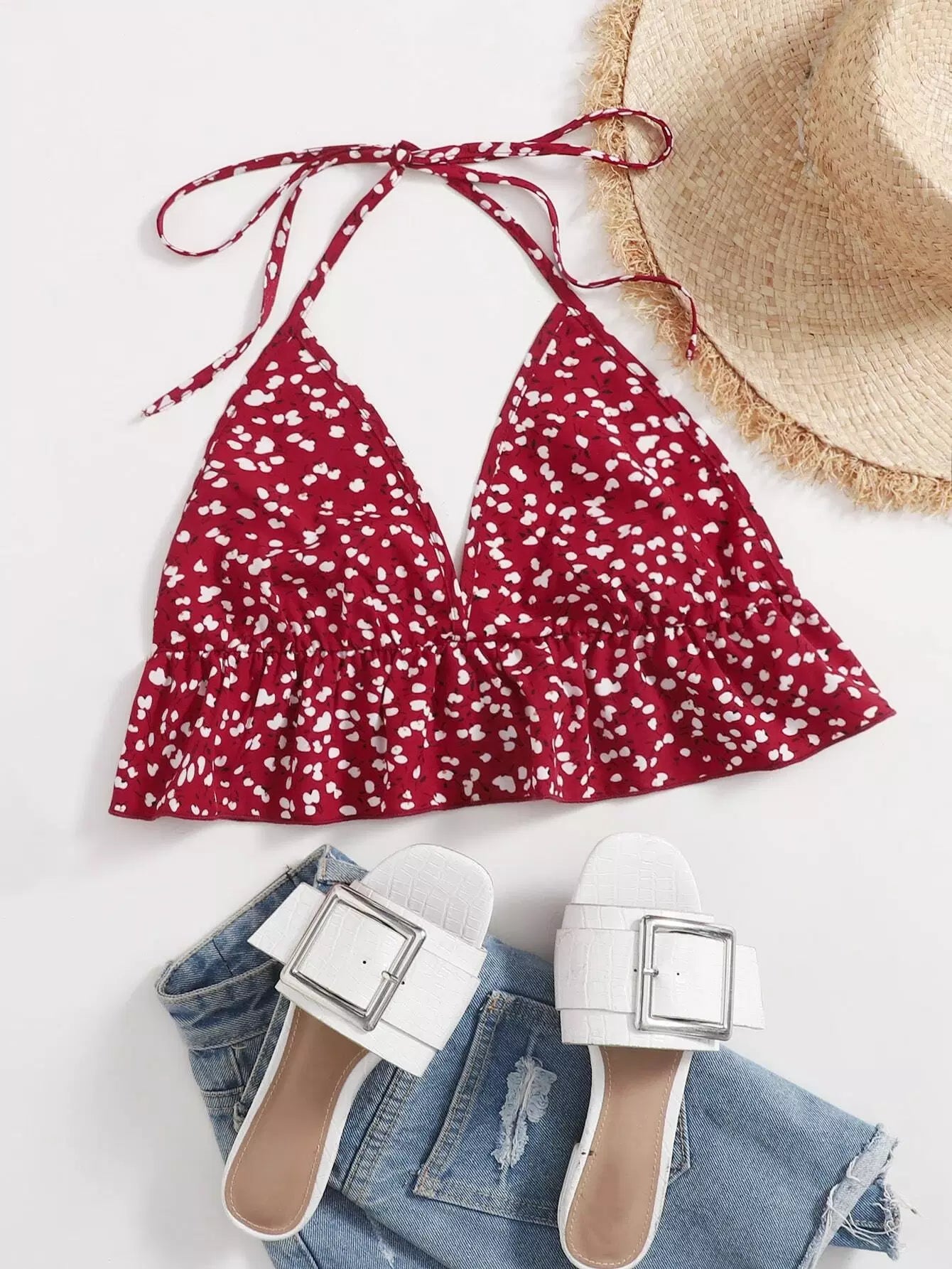 بلوزة بحاشية كشكش مطبوع عليها كشكش بحواف مكشكشة بالكامل