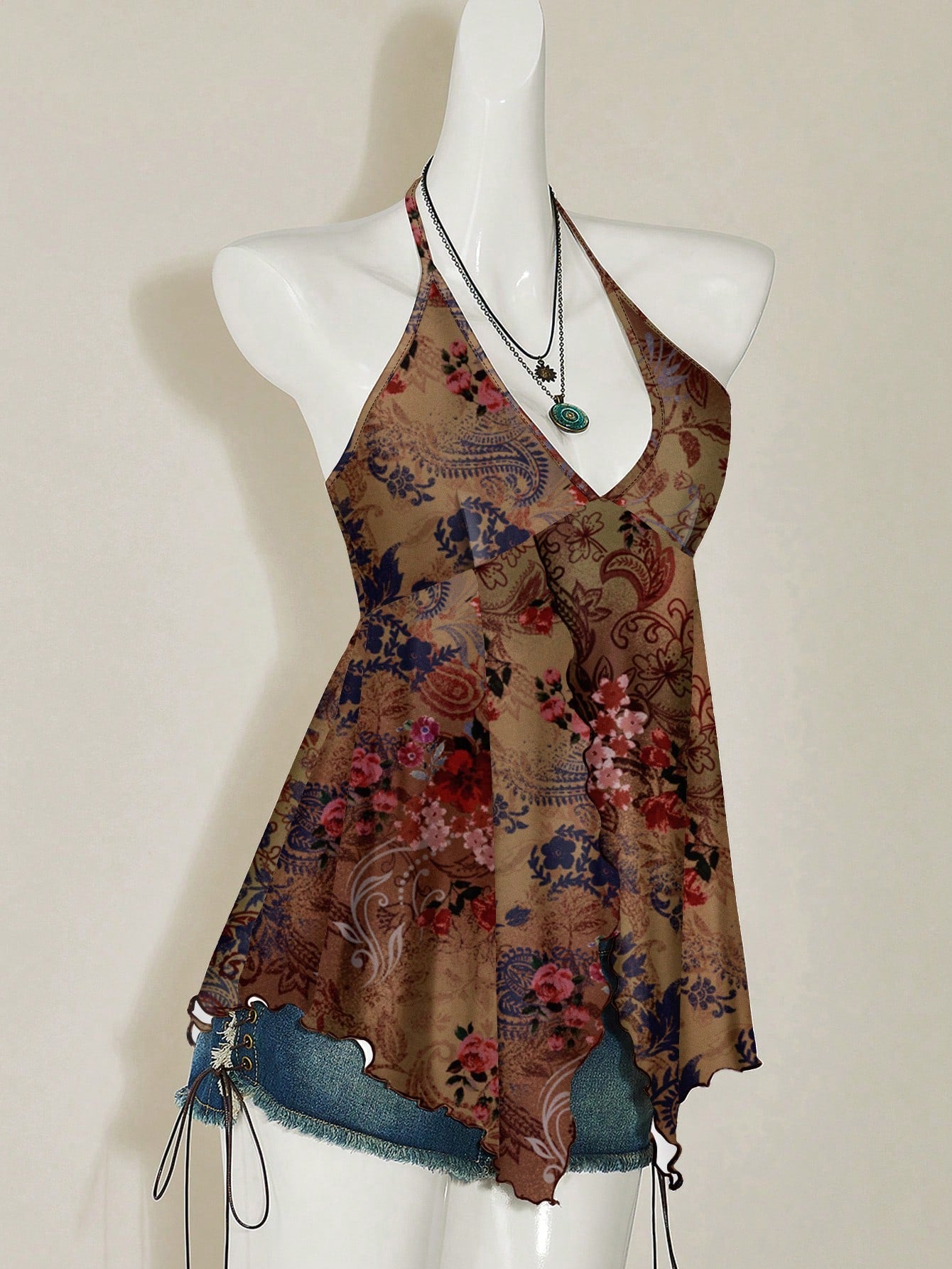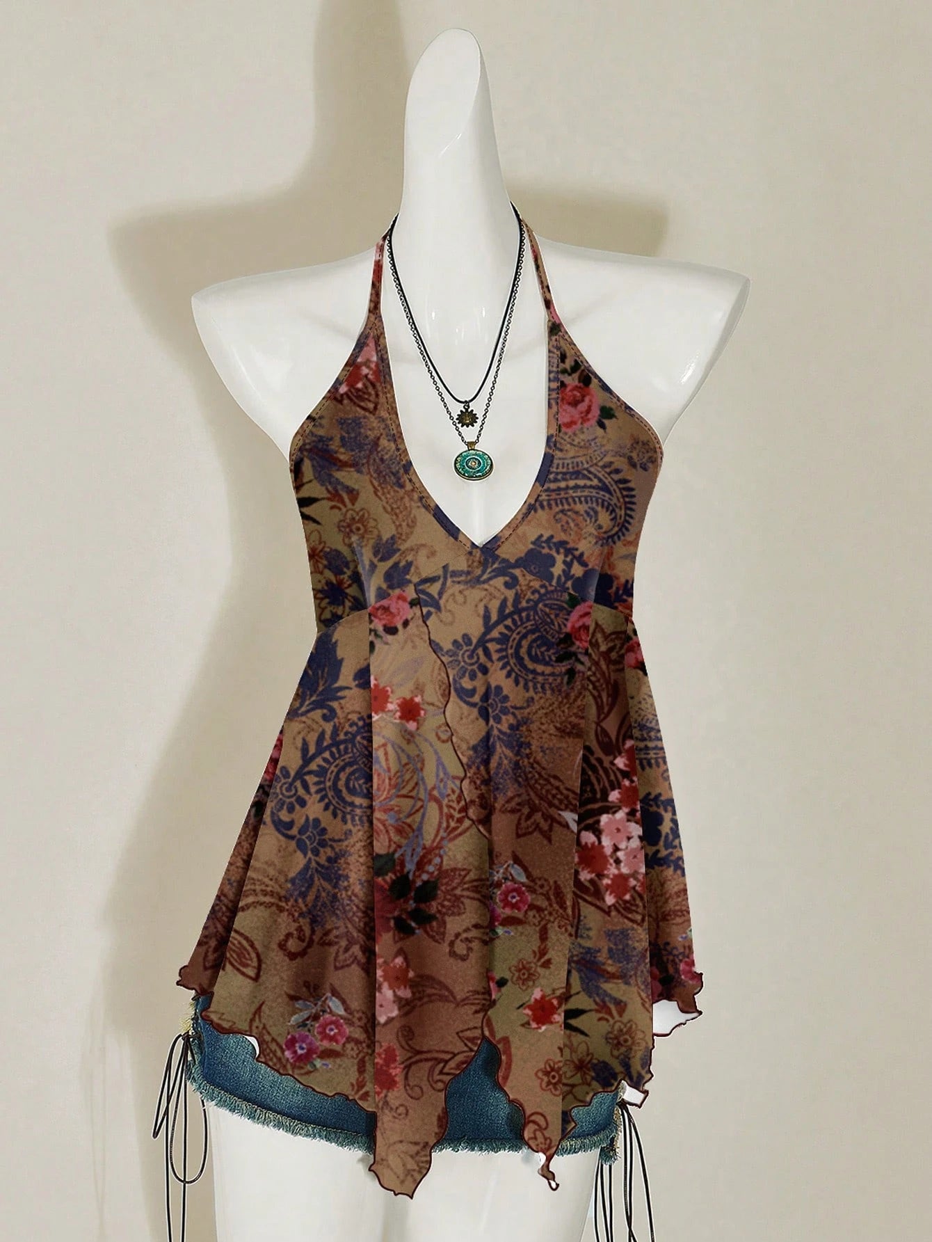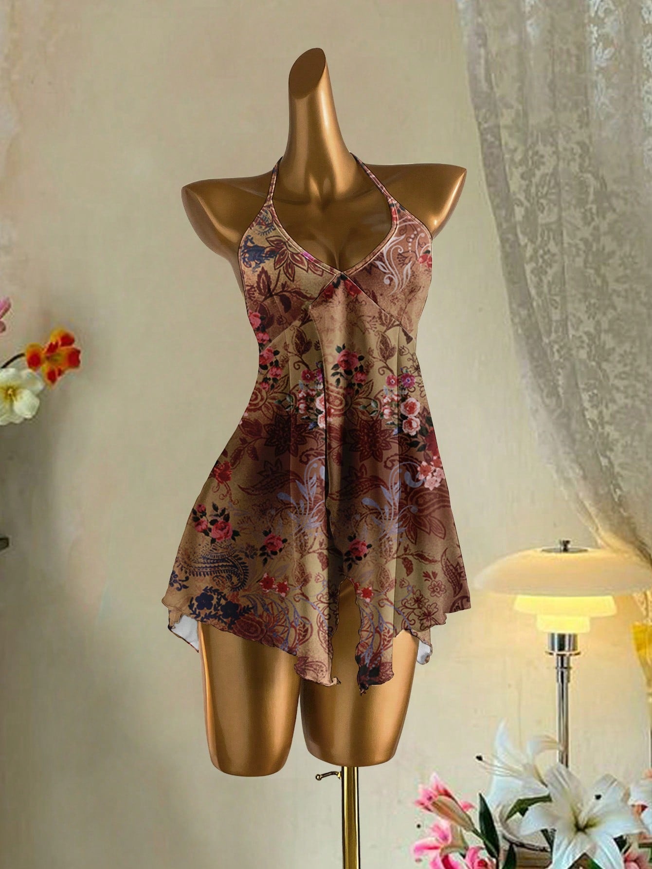تيشيرت نسائي بدون أكمام مطبوع عليه زهور بوهيمية من أتيتون، مناسب لحفلات الرقص