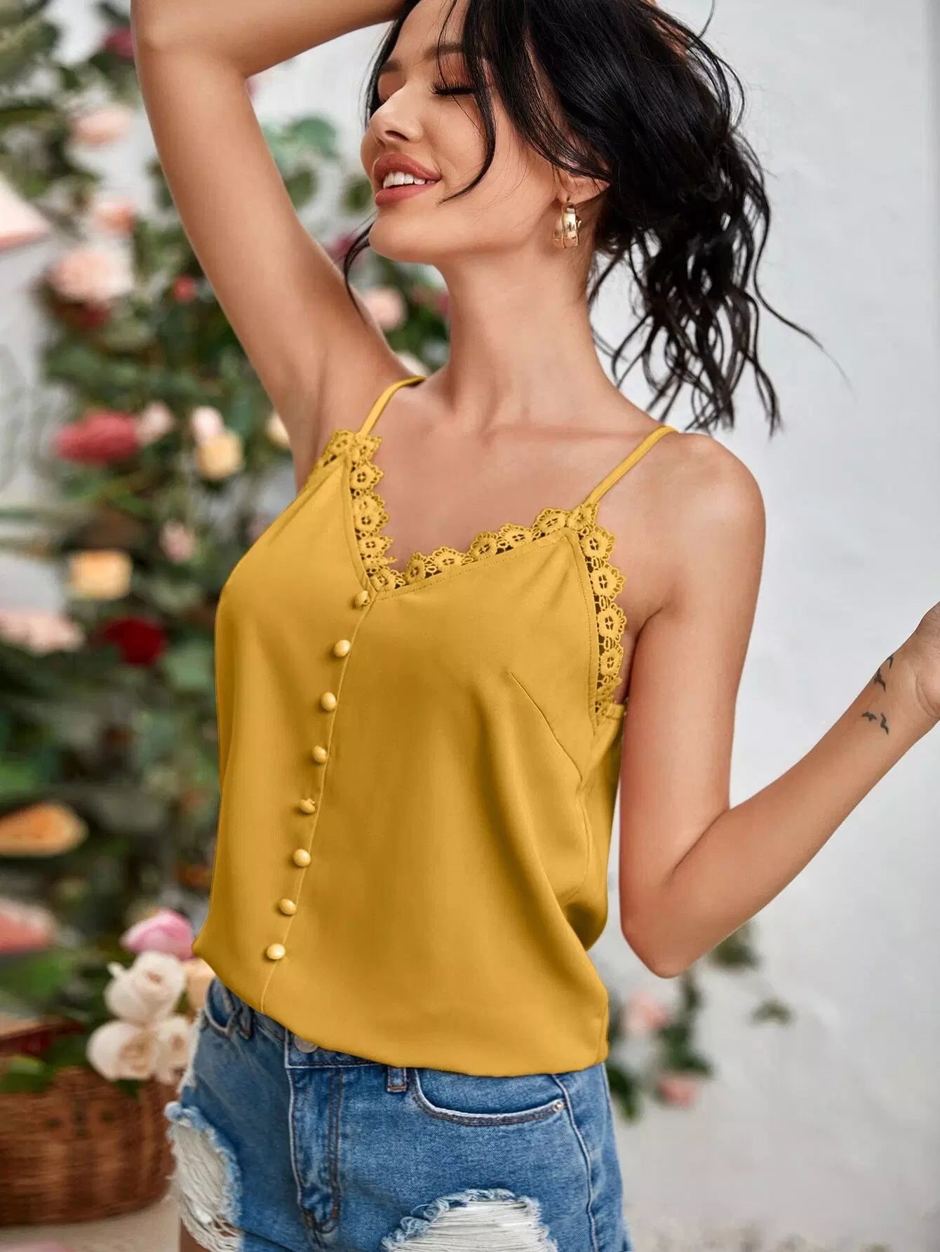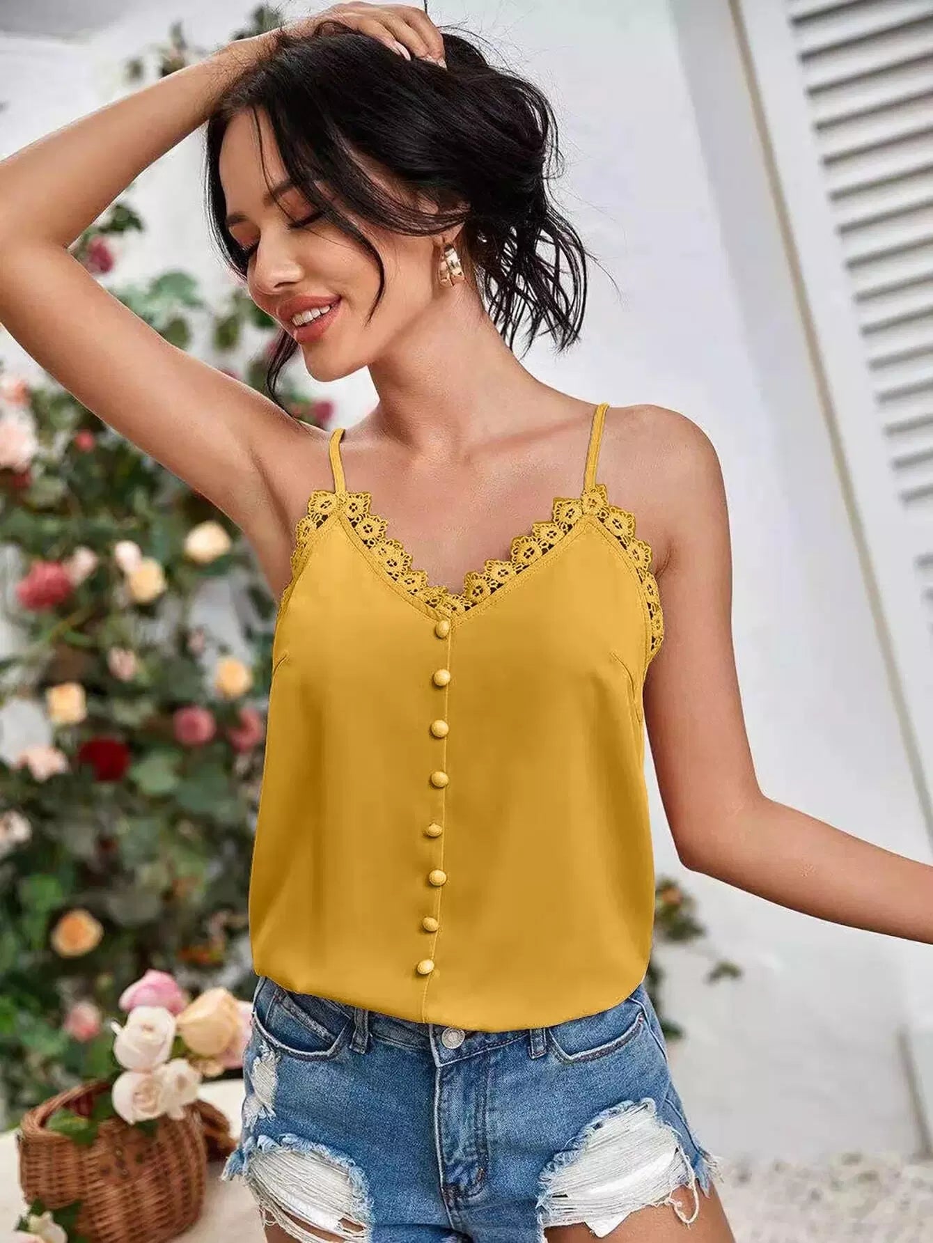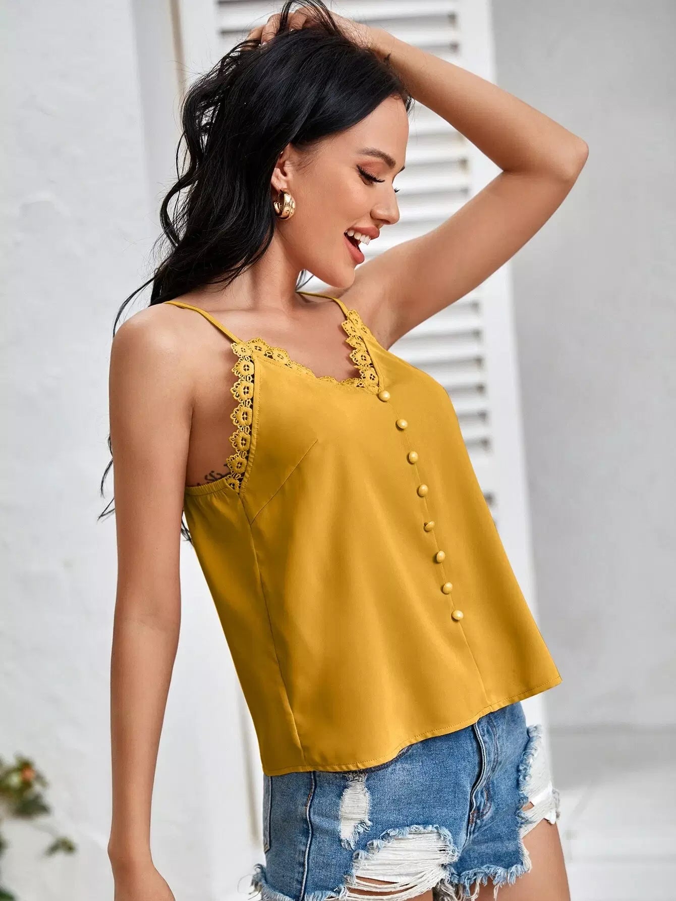 بلوزة كامي بحواف من الدانتيل وأزرار أمامية