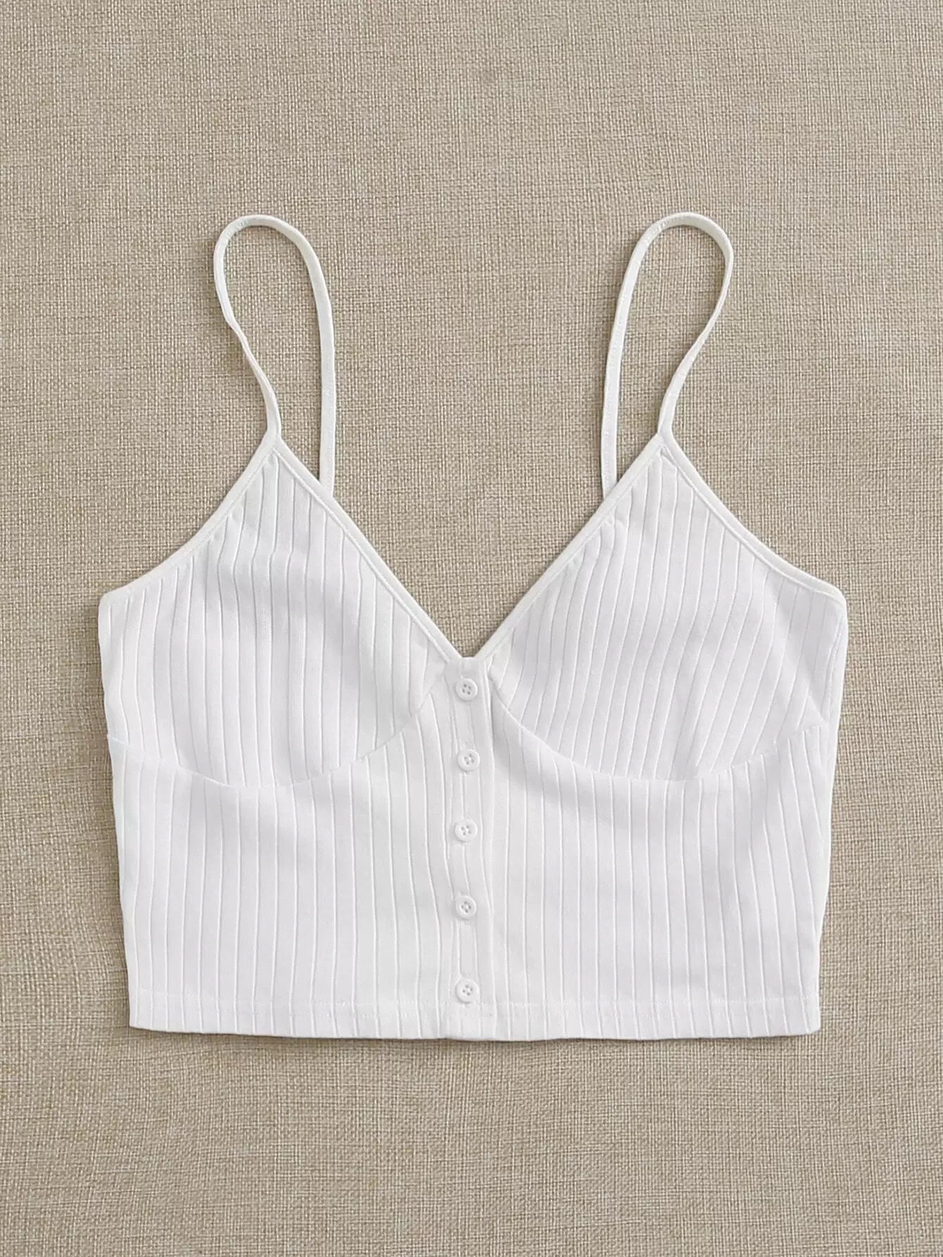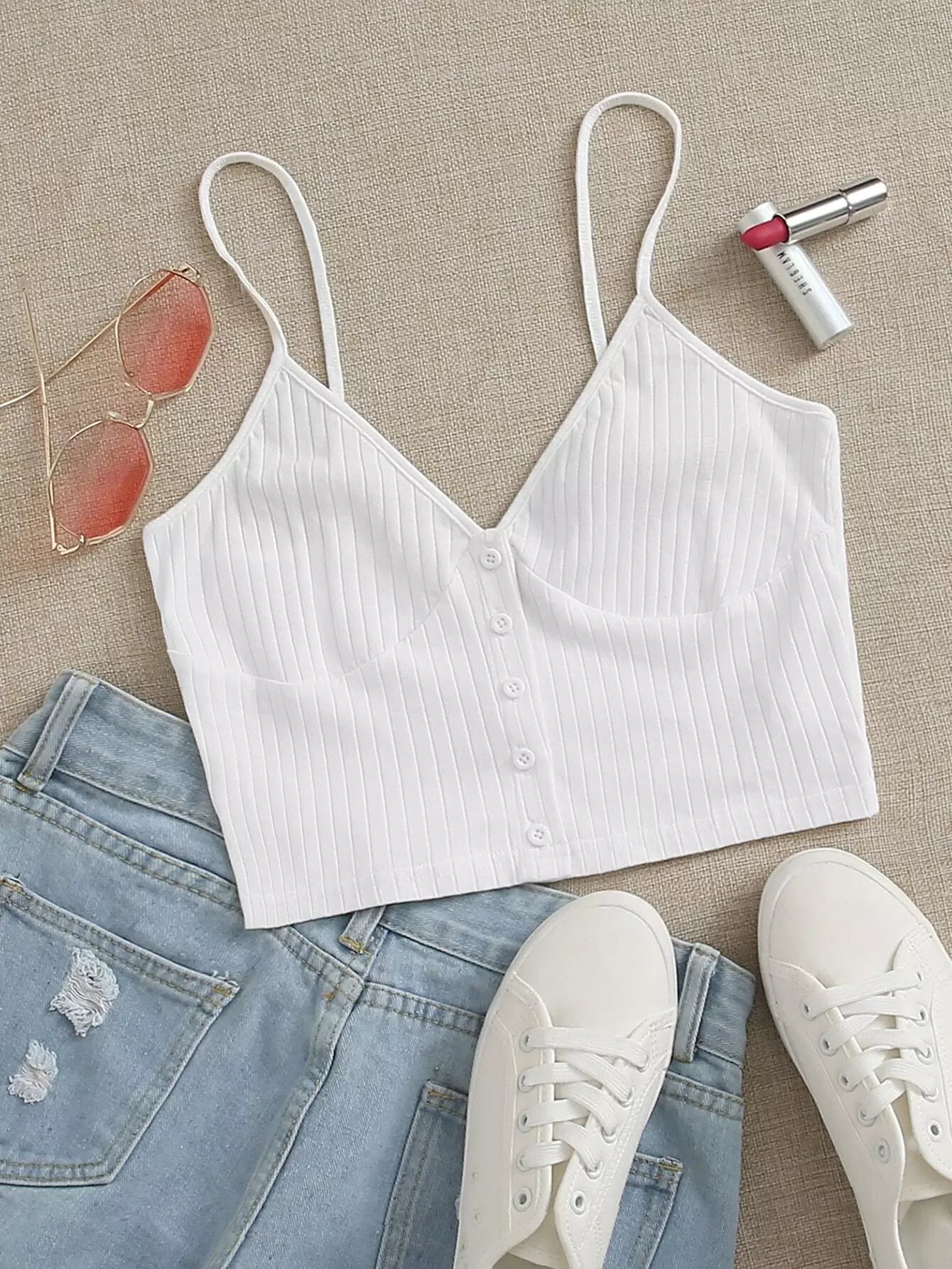 بلوزة كامي محبوكة بأزرار أمامية مضلعة من الأمام