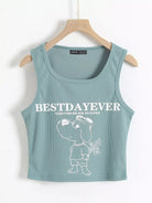 للنساء - تيشيرت بدون أكمام برسوم كارتونية وأحرف