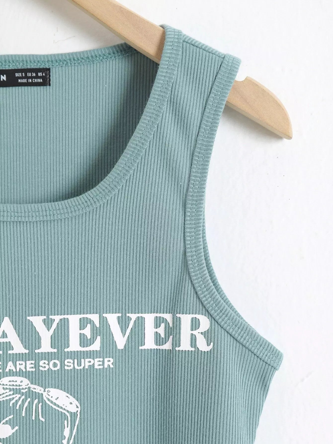 تانك بدون أكمام محبوك برسومات كرتونية ورسومات حروف