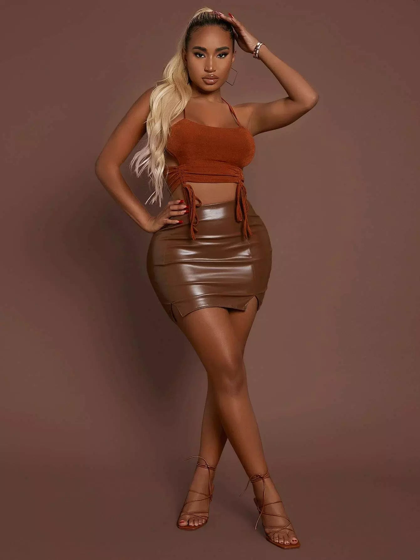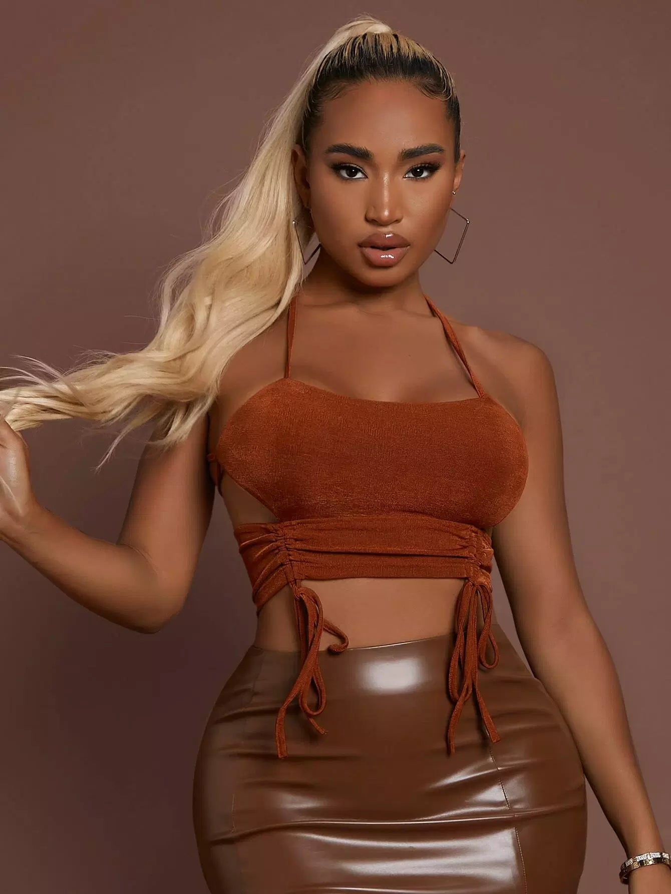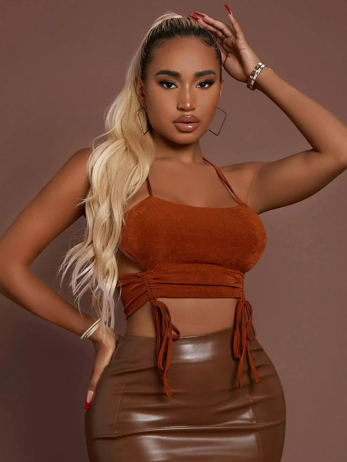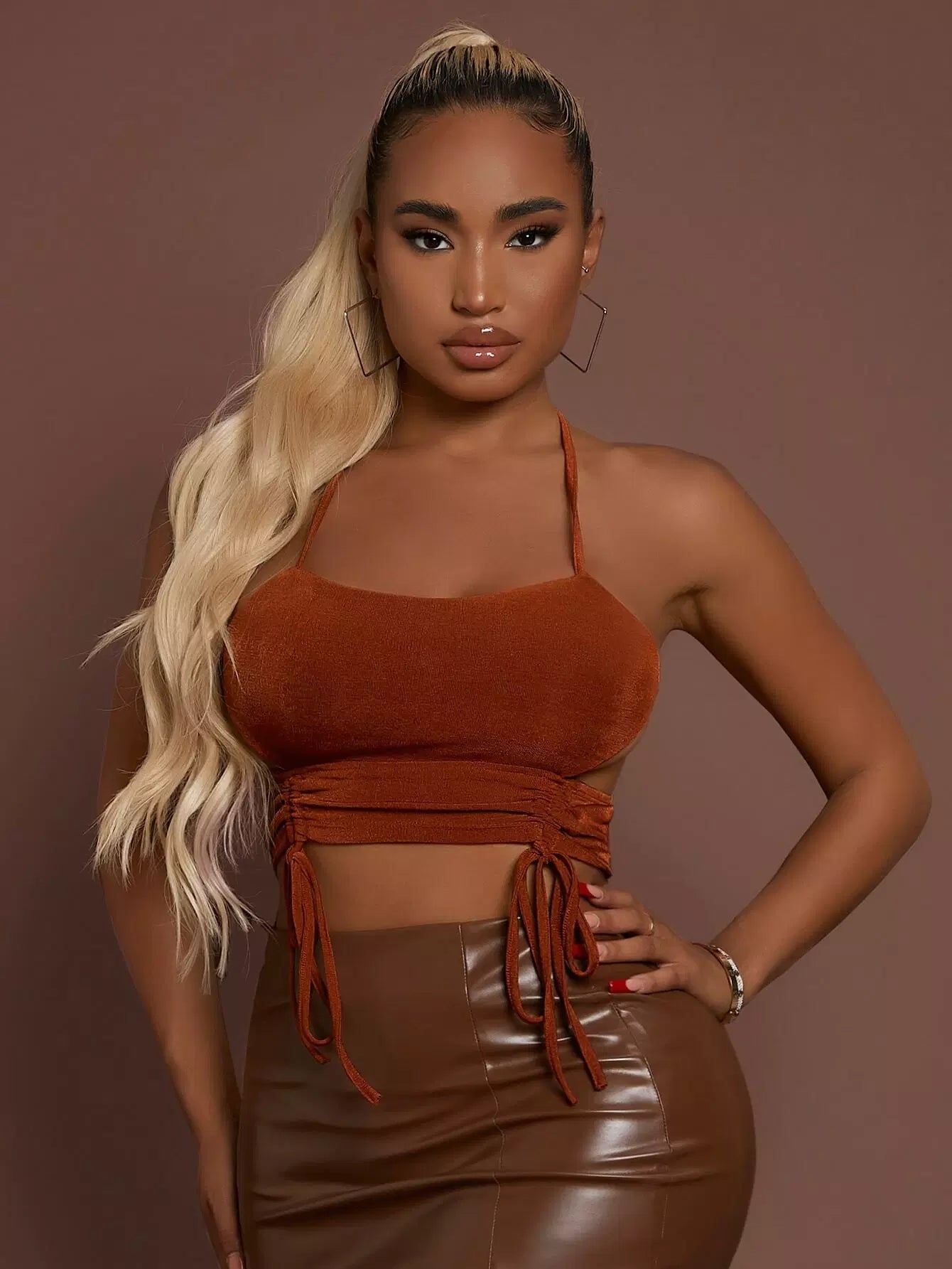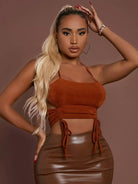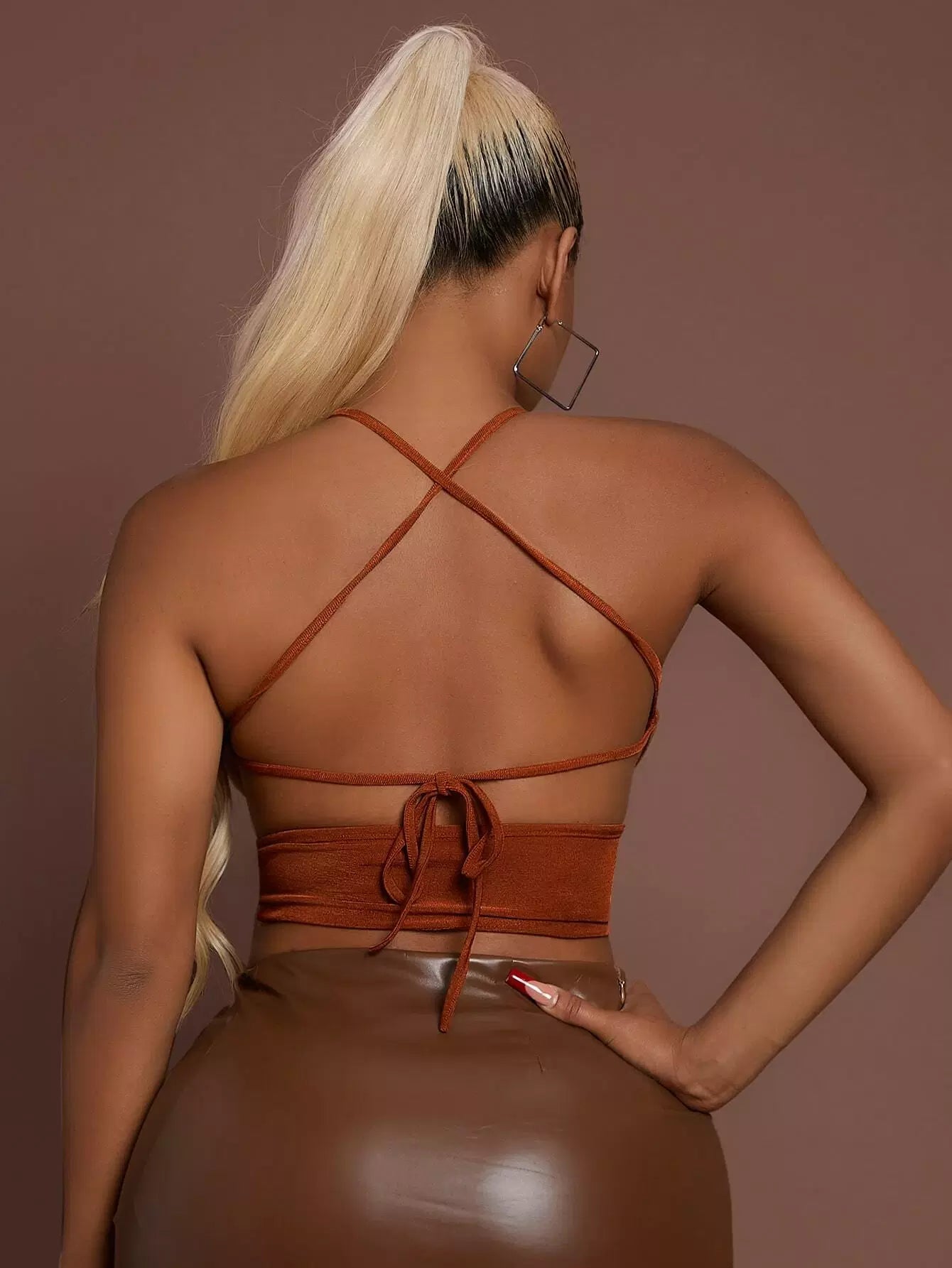 بلوزة قصيرة جانبية برباط على شكل صليب برباط على شكل صليب متقاطع بدون أربطة على الظهر
